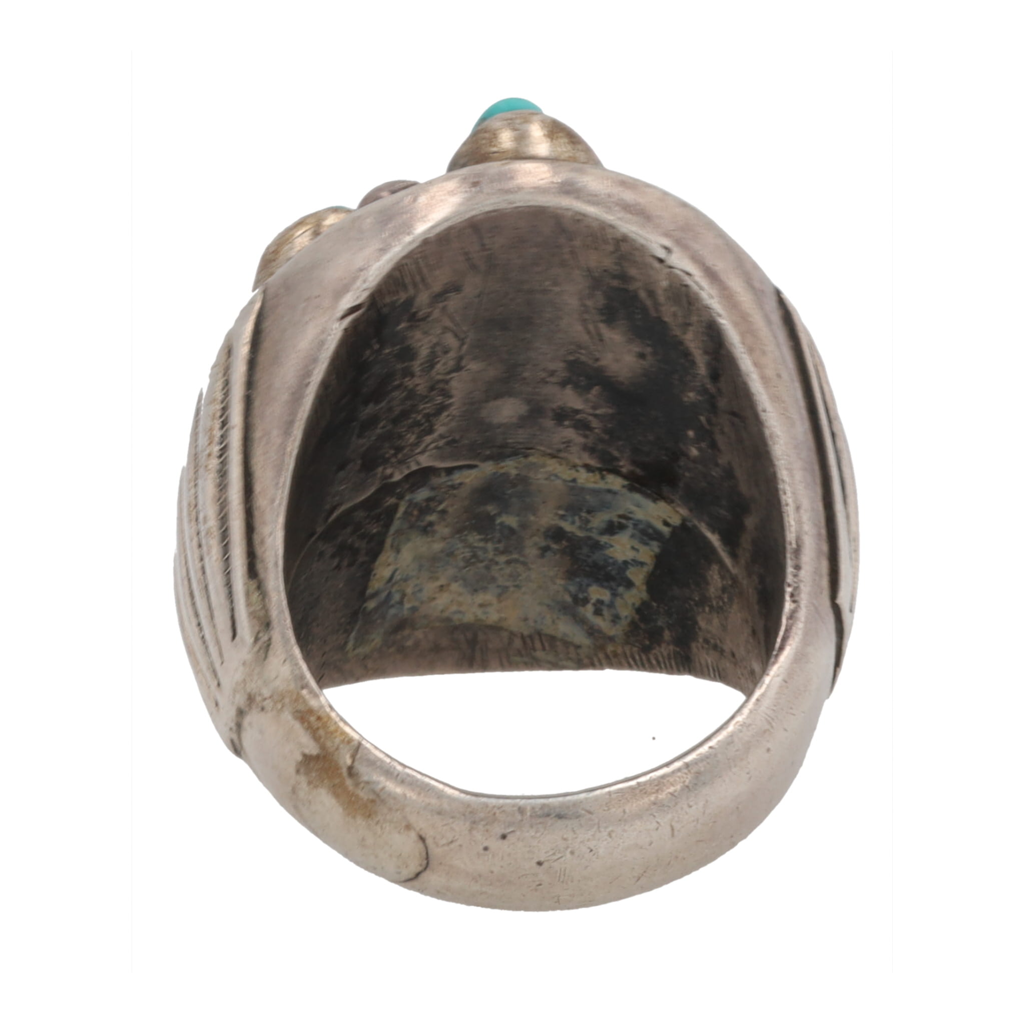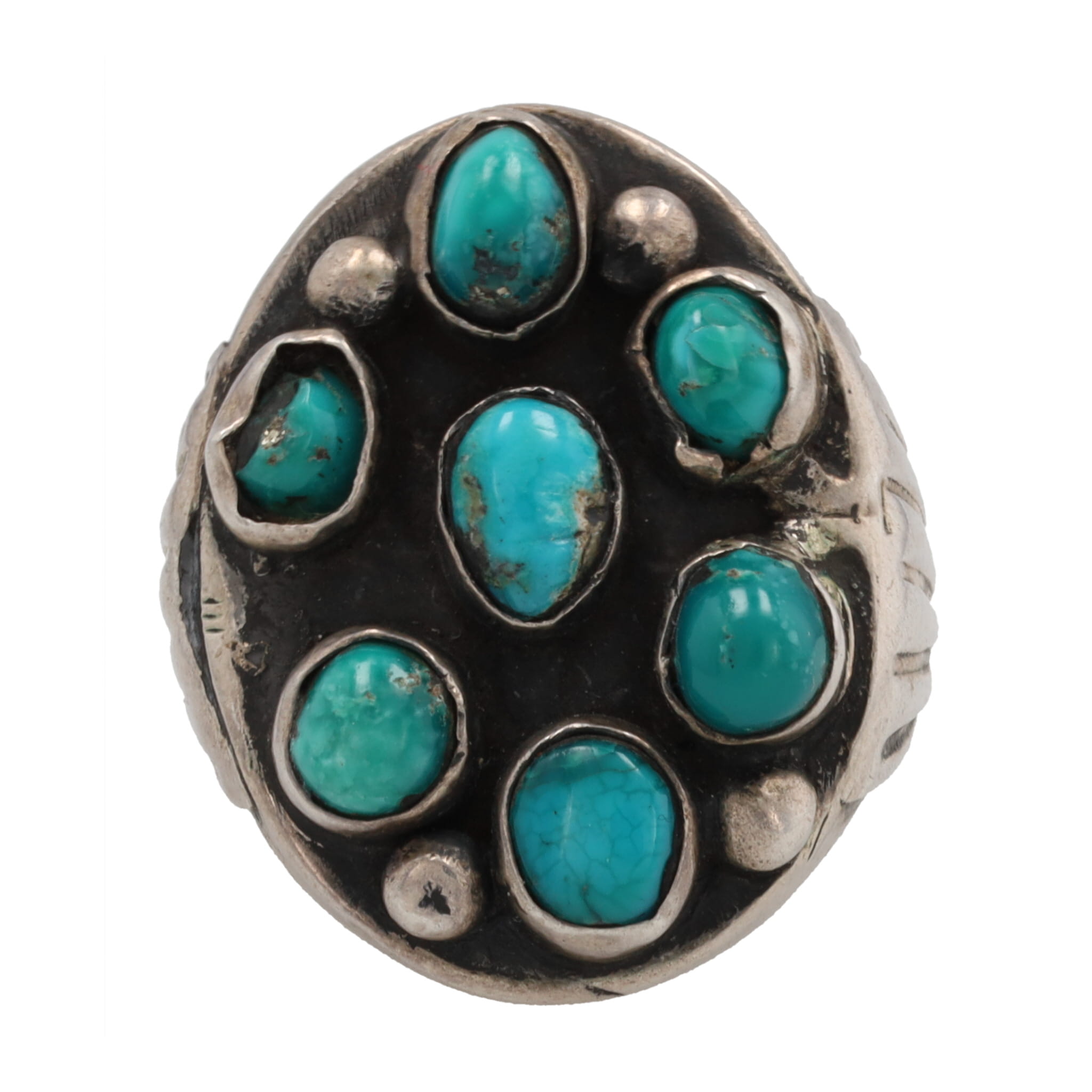 Heavy Navajo Turquoise Cluster Sterling Ring Sz. 11.75, 51g