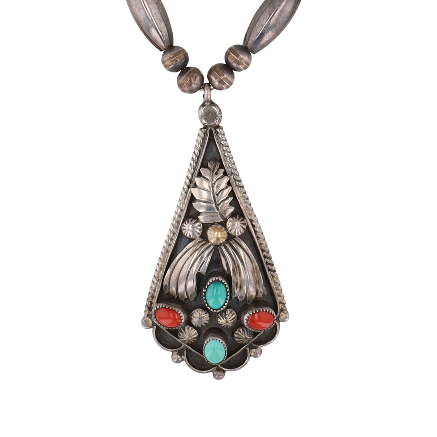 Irene Tsosie Navajo Coral Turquoise Sterling Bead Necklace