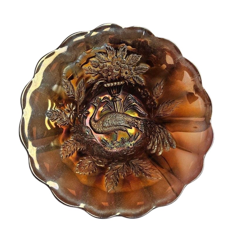 Millersburg ‘Peacock & Urn’ Amethyst Radium Carnival Glass Bowl, 9.75″