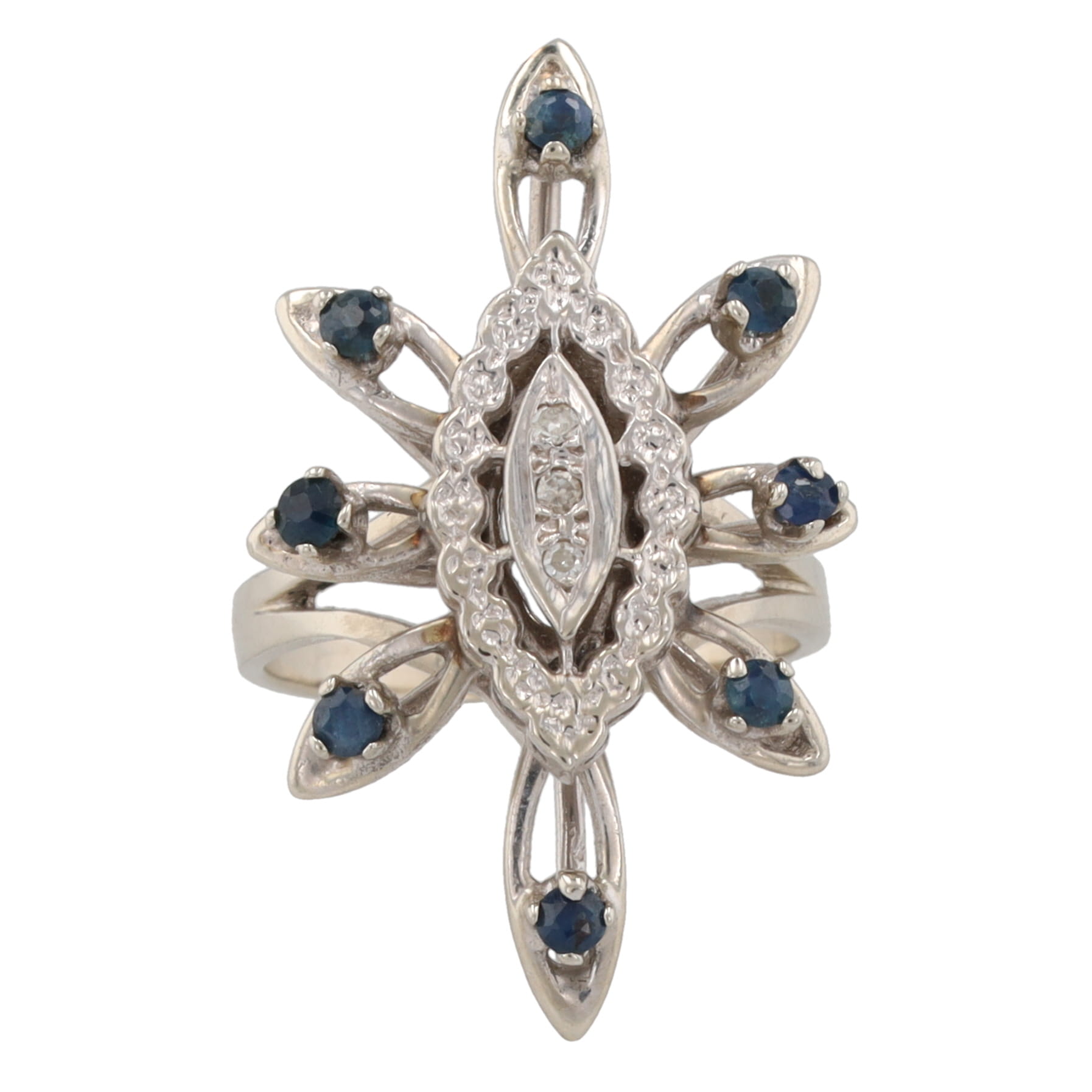 Sapphire and Diamonds 18K White Gold Cocktail Ring Sz. 6.5, 6.9g