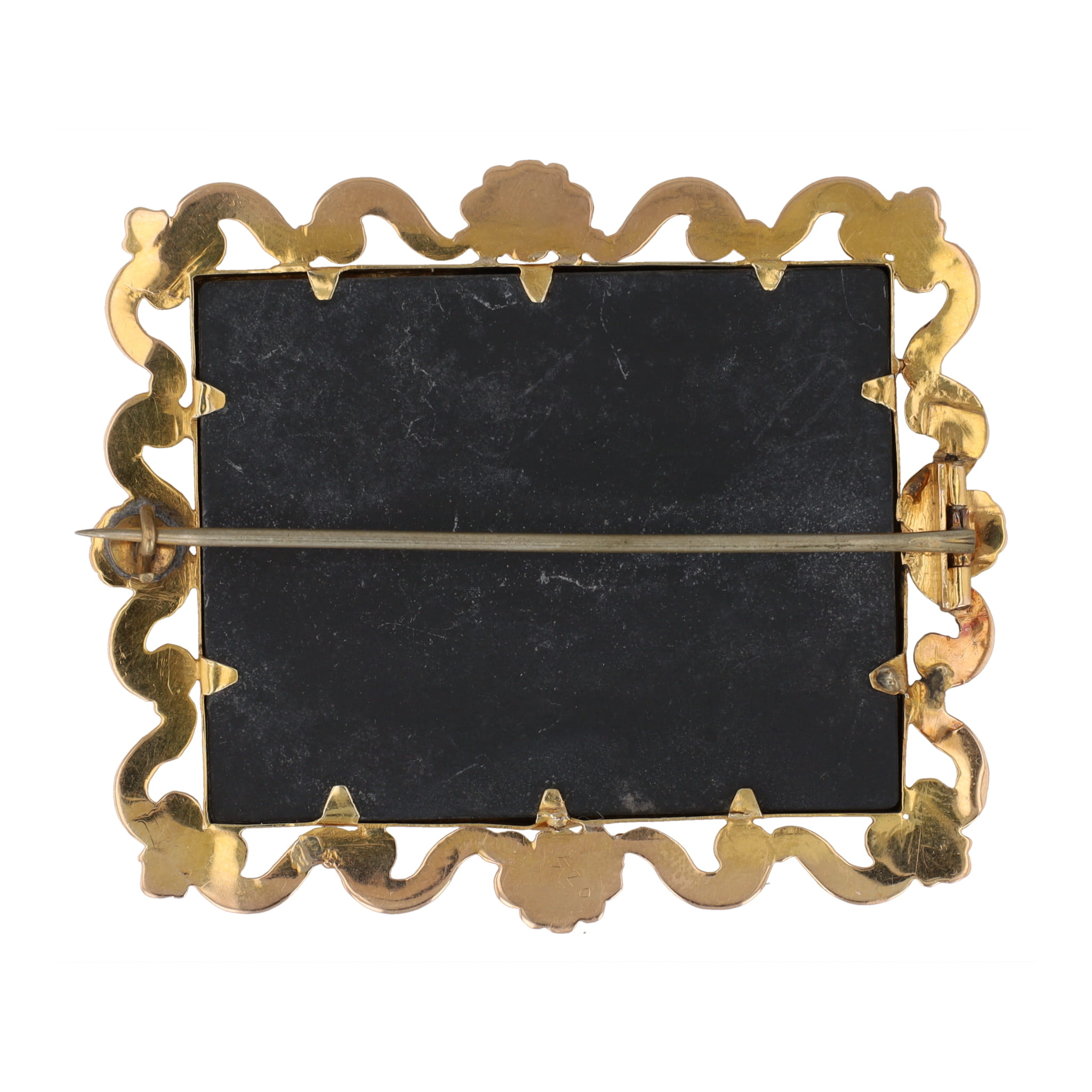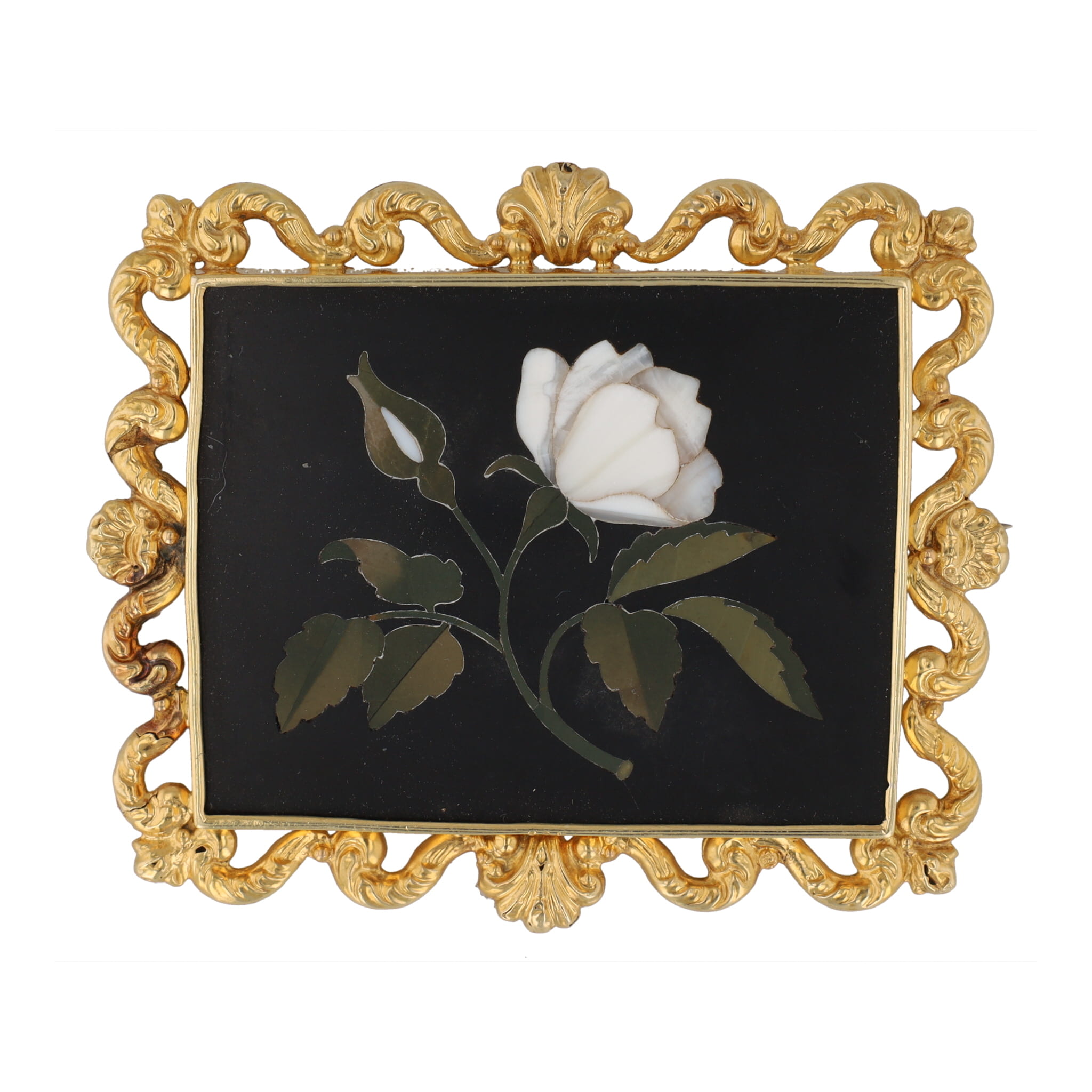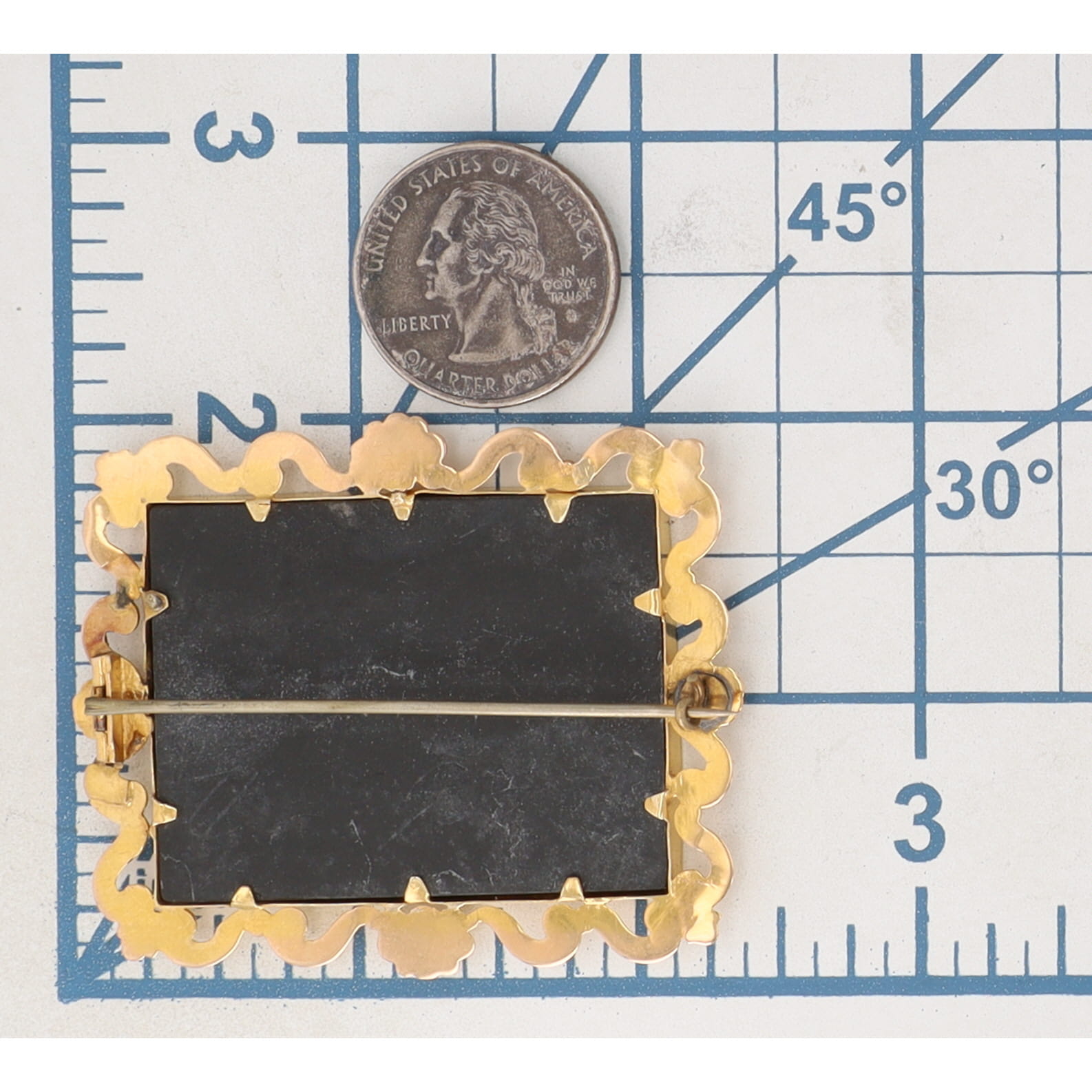 14K Gold Framed Floral Agate Inlay Brooch 20g
