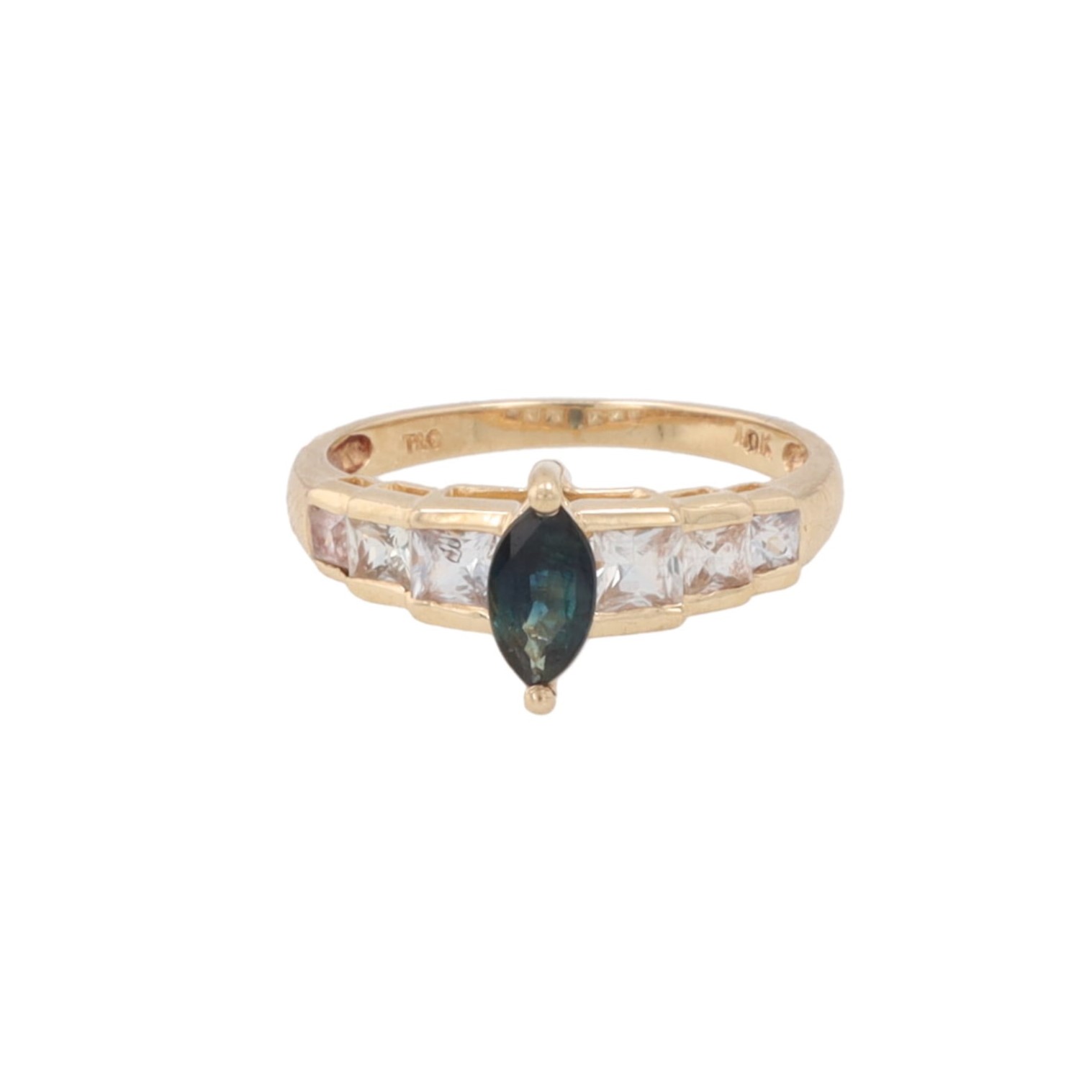 T & C White Blue Sapphire 10K Gold Cocktail Ring Sz. 5.75, 2.1g Approx 1.16 TCW