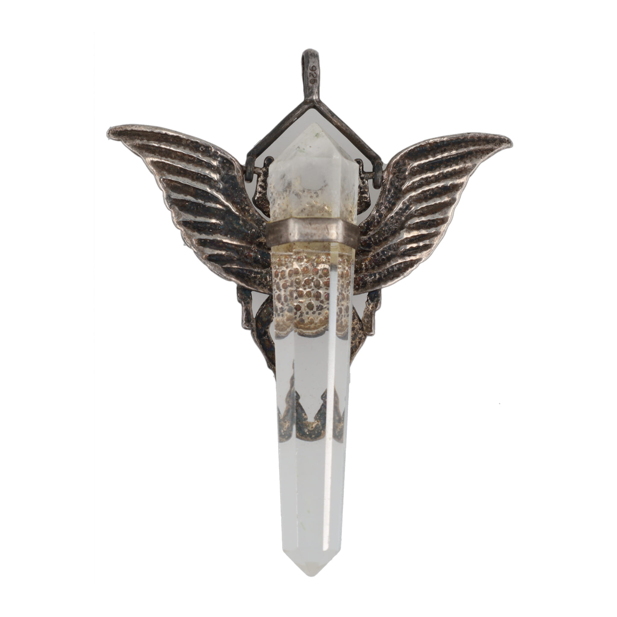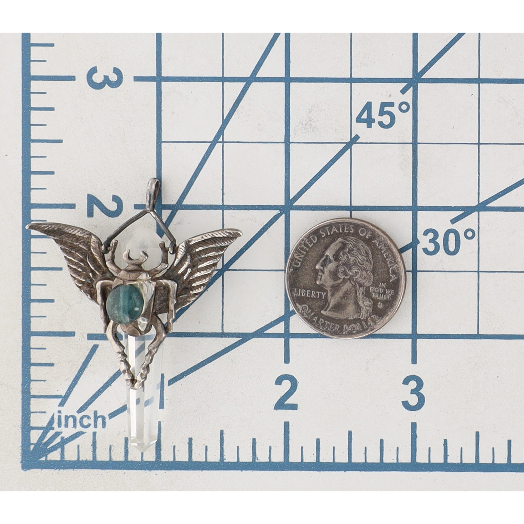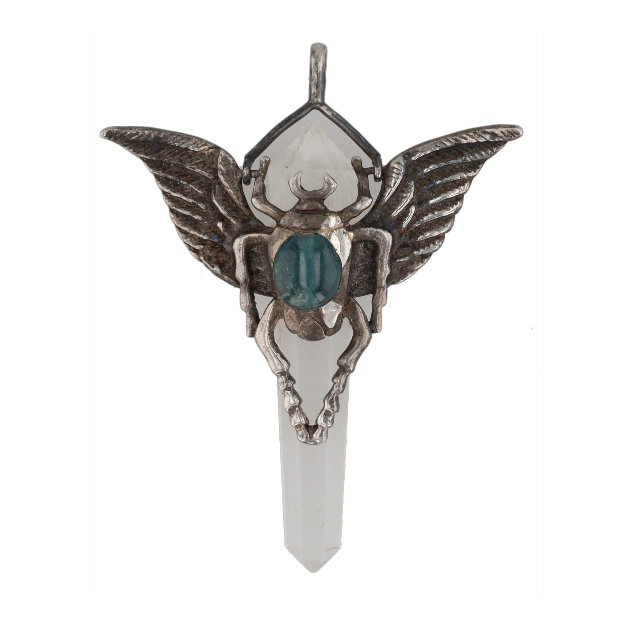 Sterling Winged Scarab Tourmaline Stone Crystal Obelisk Pendant 9.4g