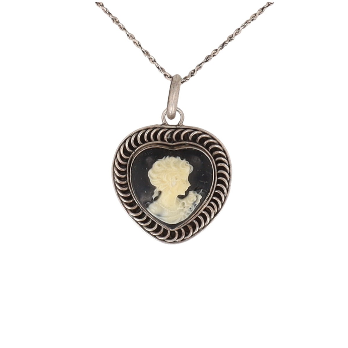 Lovely Victorian Cameo Heart Pendant Sterling Necklace 8.5g