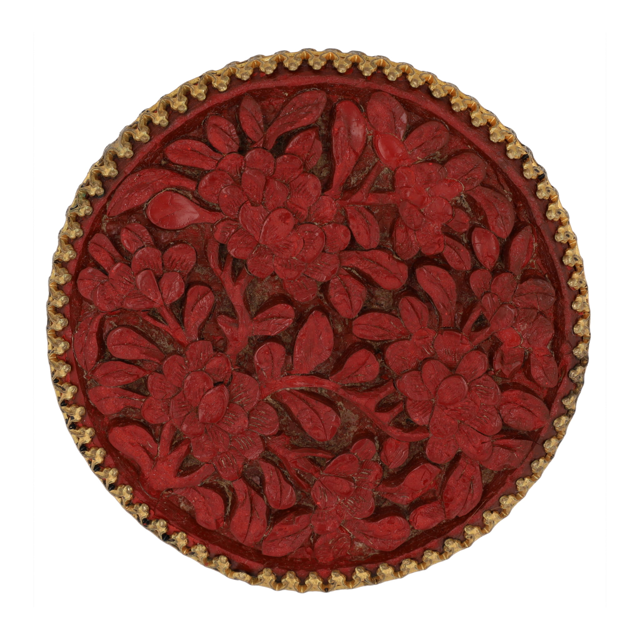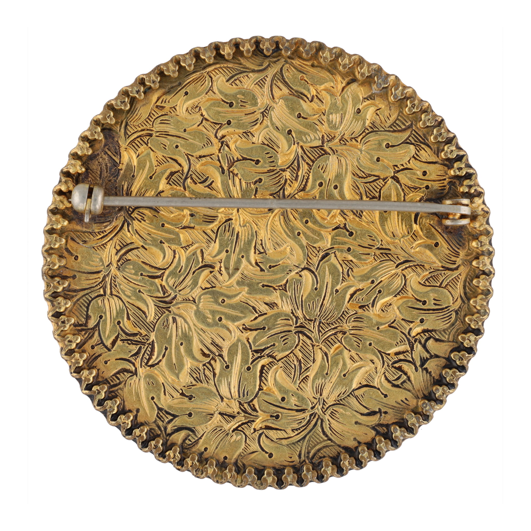 Stunning Gold Tone Filigree Cinnabar Chrysanthemum Tulip Motifs Brooch
