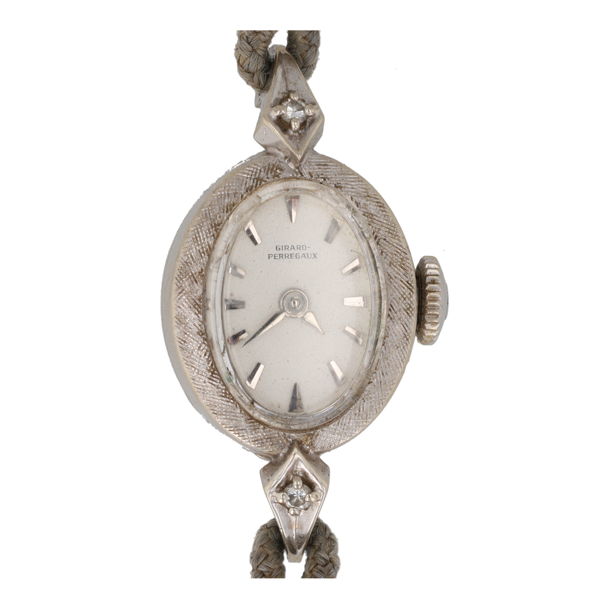 14k White Gold Gold Filled Band 2 Diamonds Girard-Perregaux Luxury Swiss Ladies Watch 8.8g