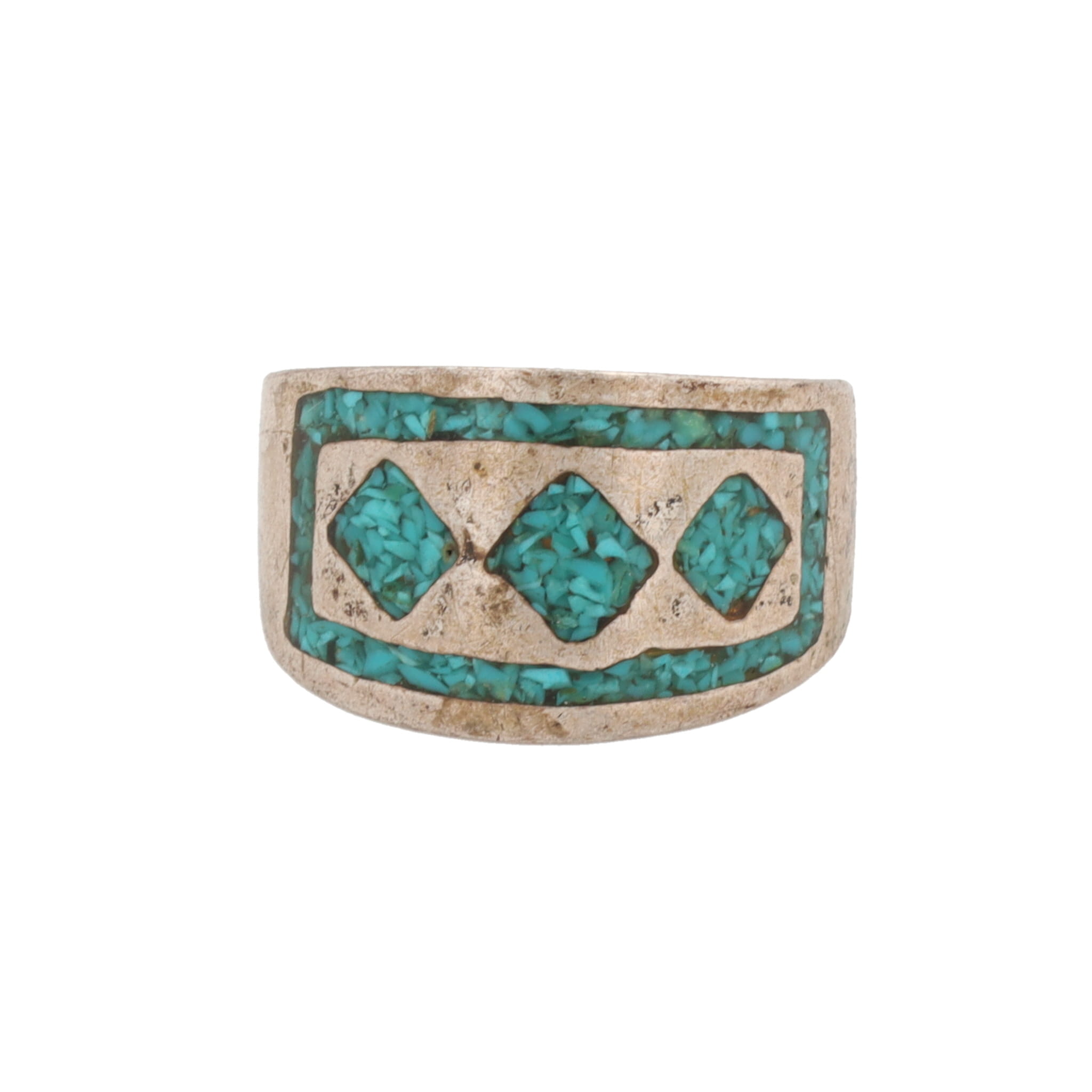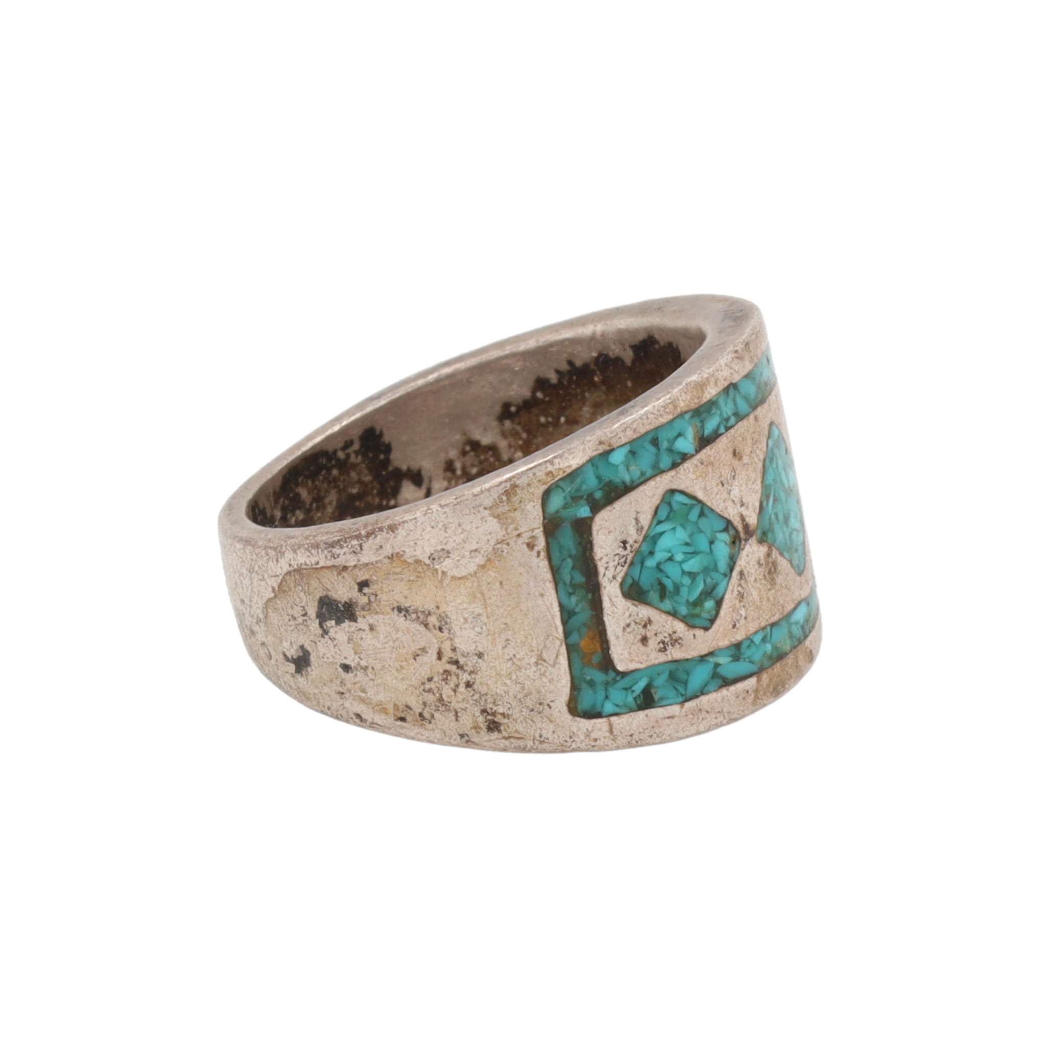 Navajo Crushed Turquoise Sterling Ring Sz. 9 12g