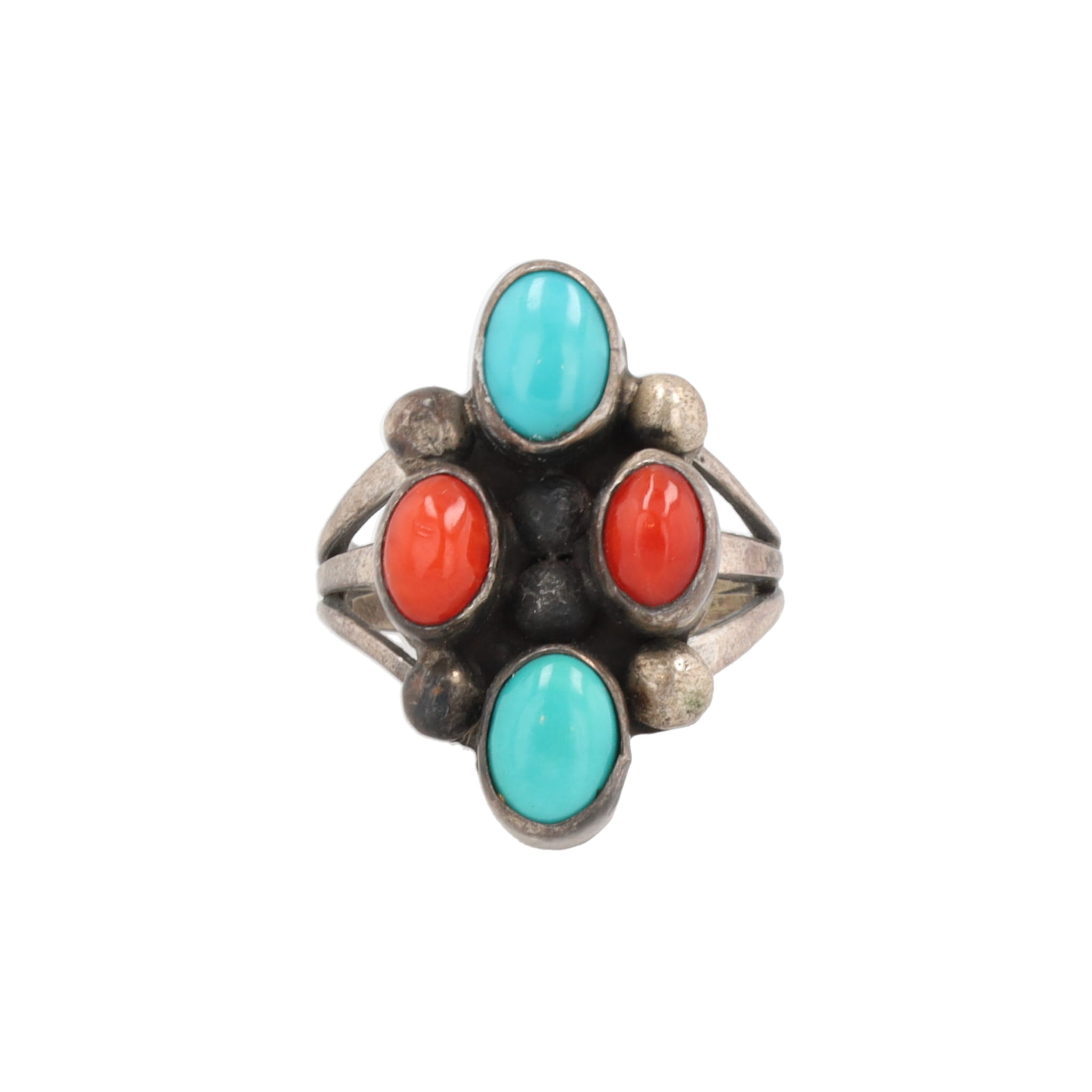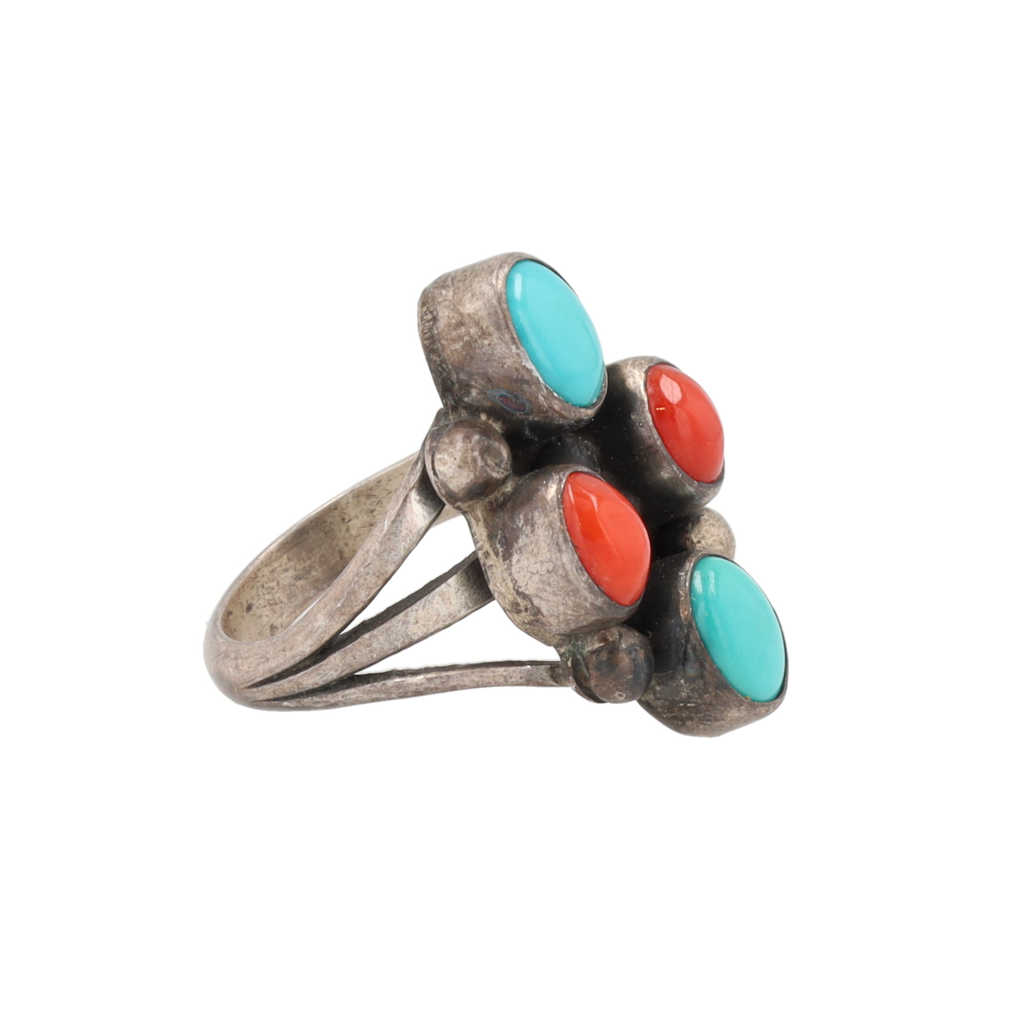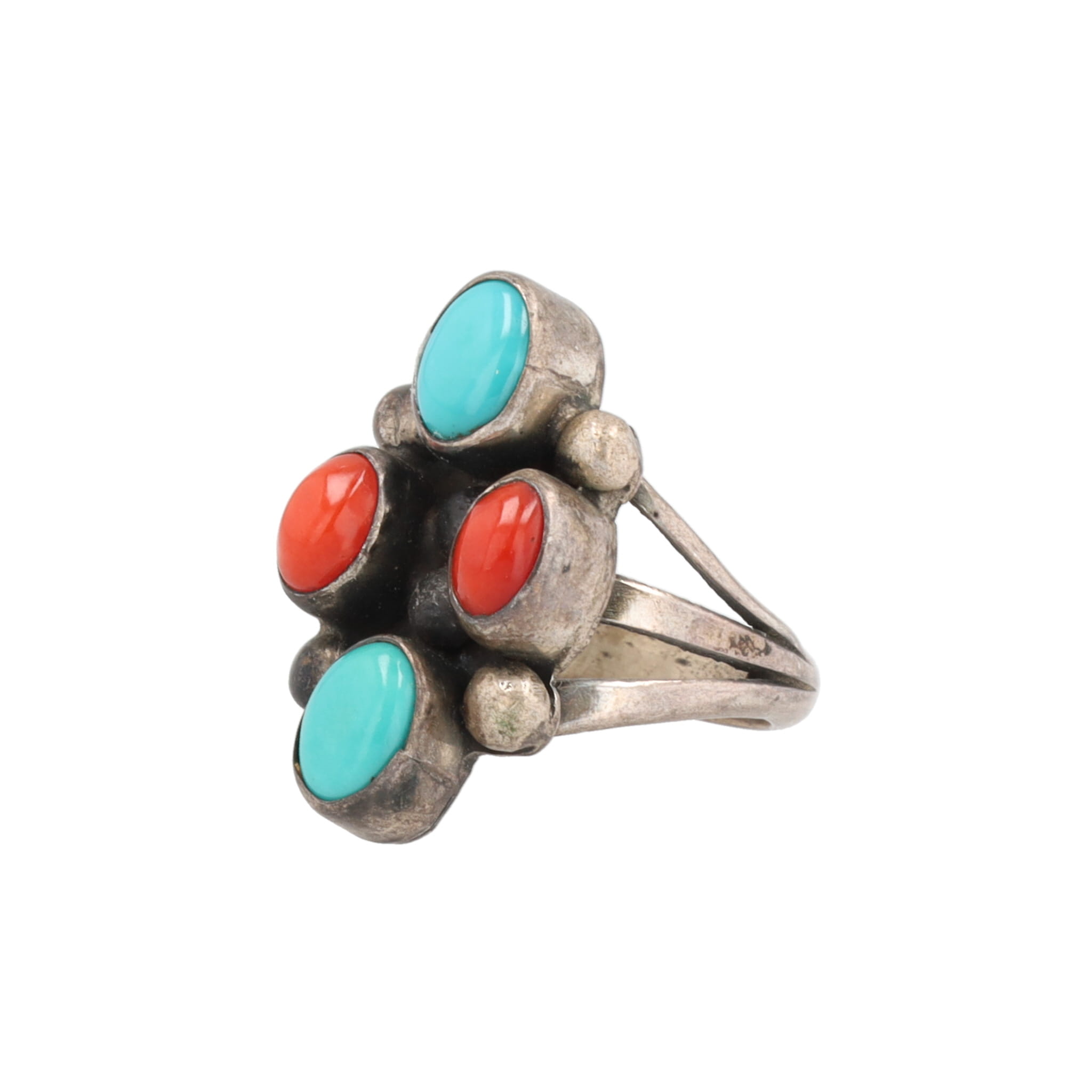Navajo Turquoise Coral Sterling Ring Sz. 5