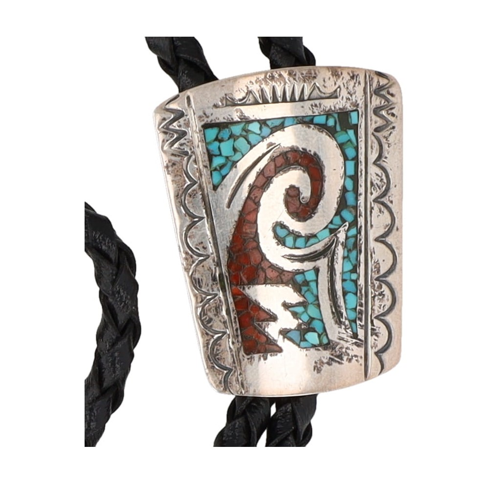 Signed Navajo Crushed Coral Turquoise Sterling Bolo Tie 31g