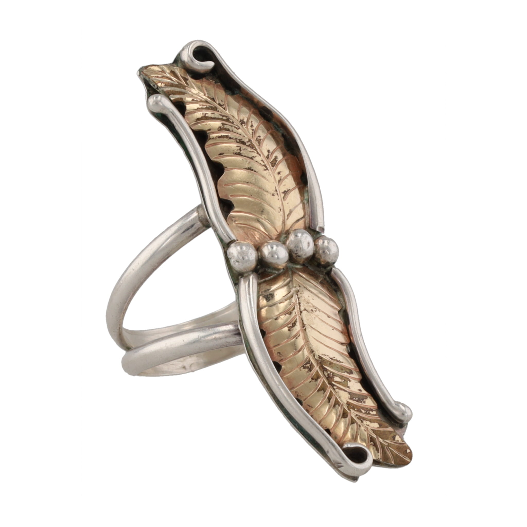 Navajo Two Tone Sterling Leaf Ring Sz. 5.5, 5g