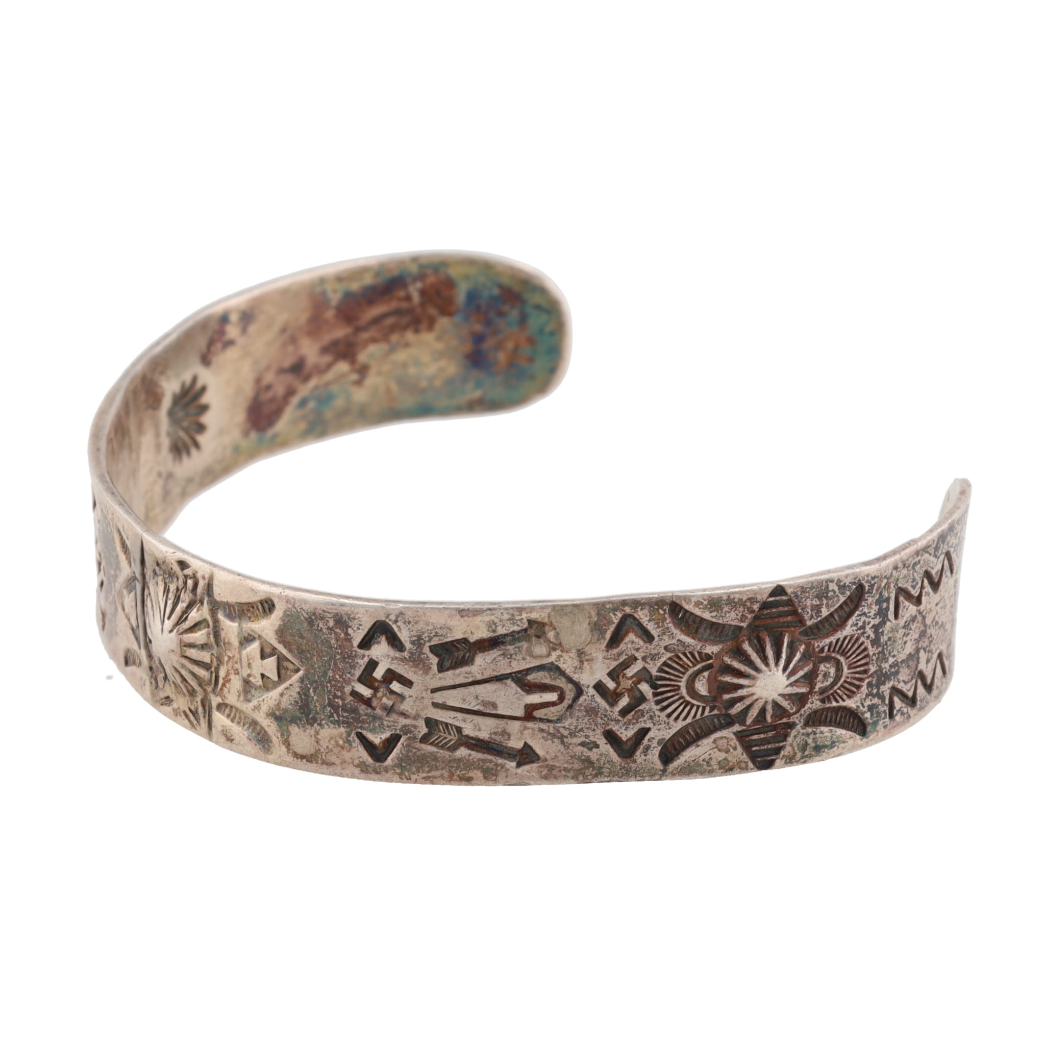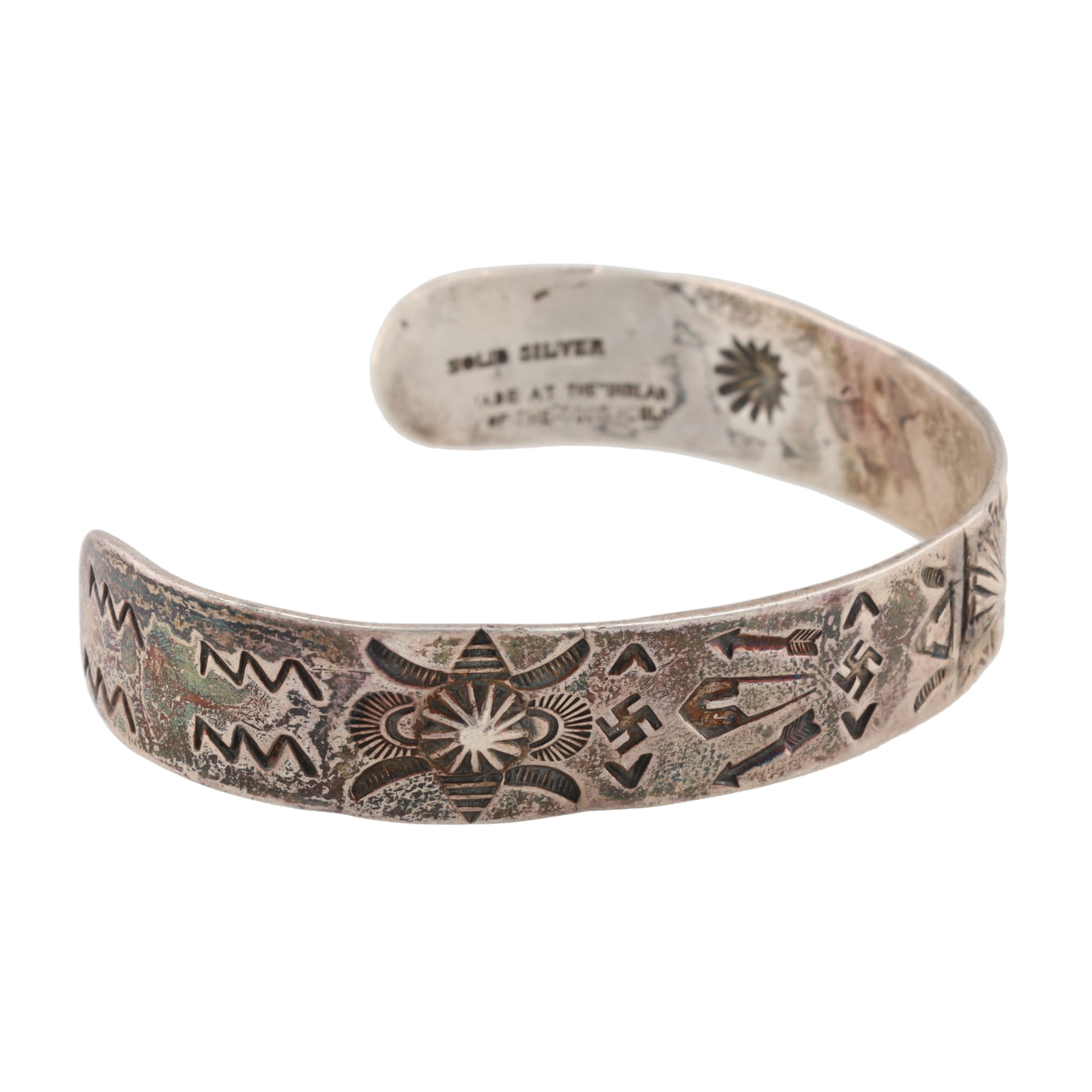 The Indian Shop Pre-1940 Whirling Logs Sterling Stamped Cuff Bracelet 18g