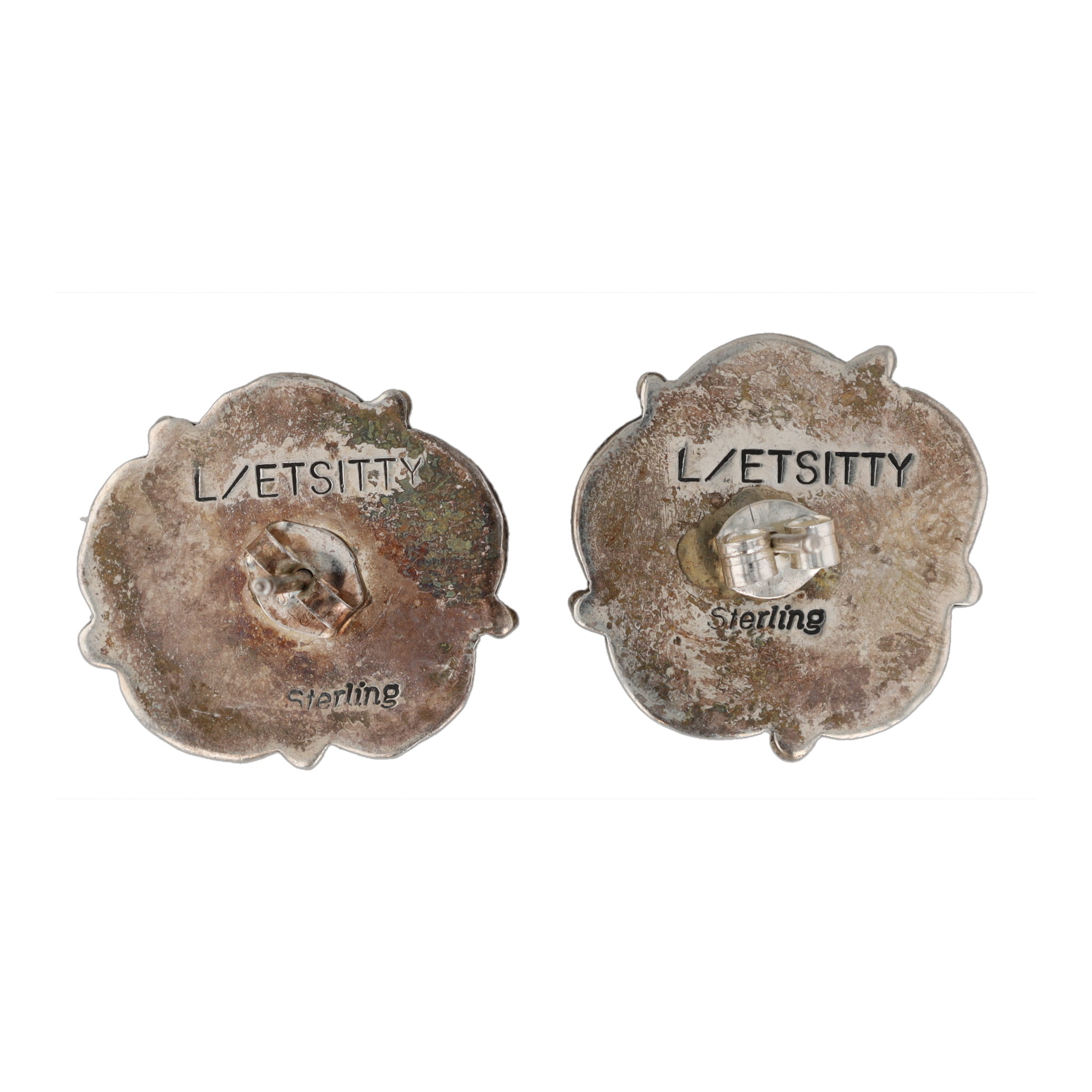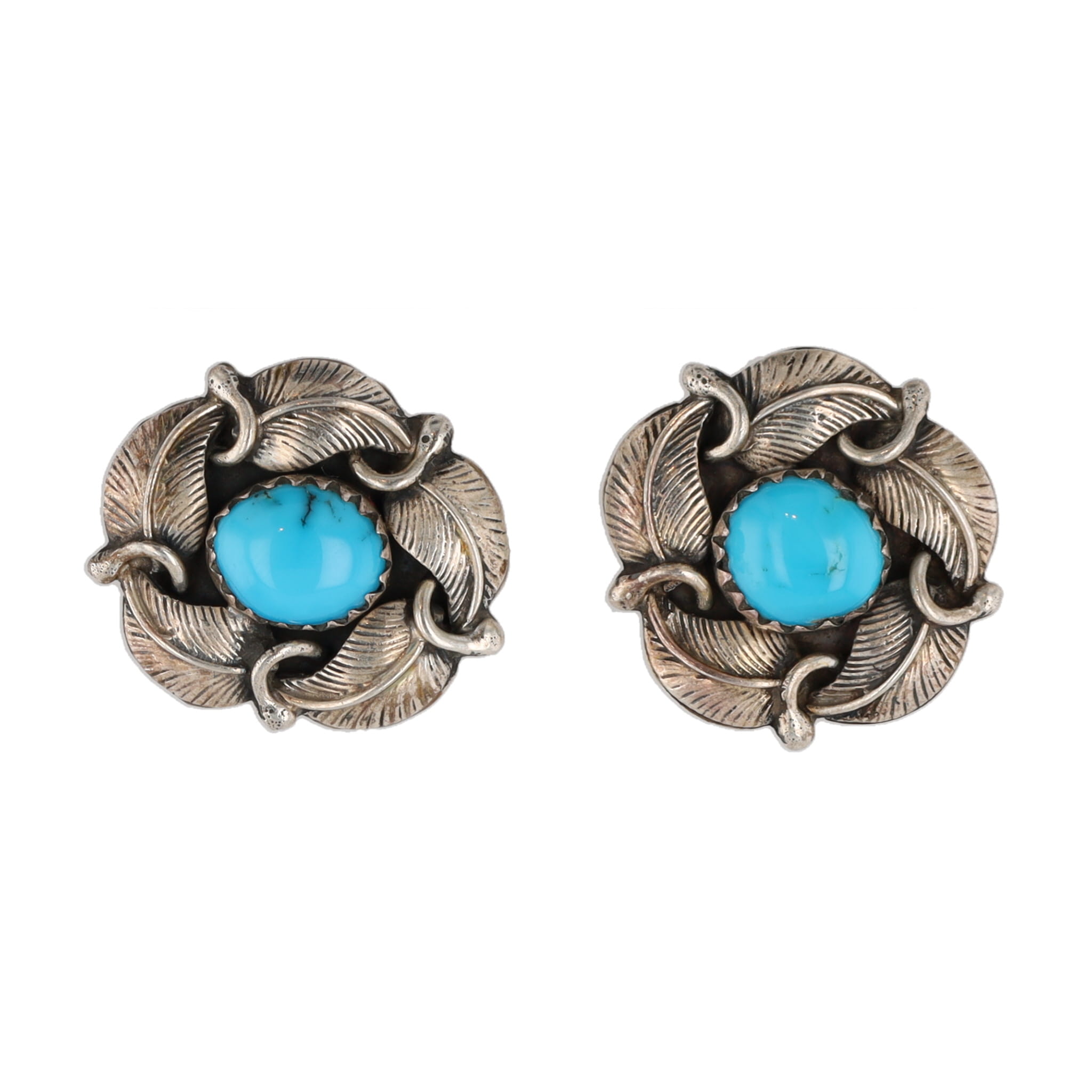 L. Etsitty Navajo Turquoise Sterling Leaf Design Earrings 6g