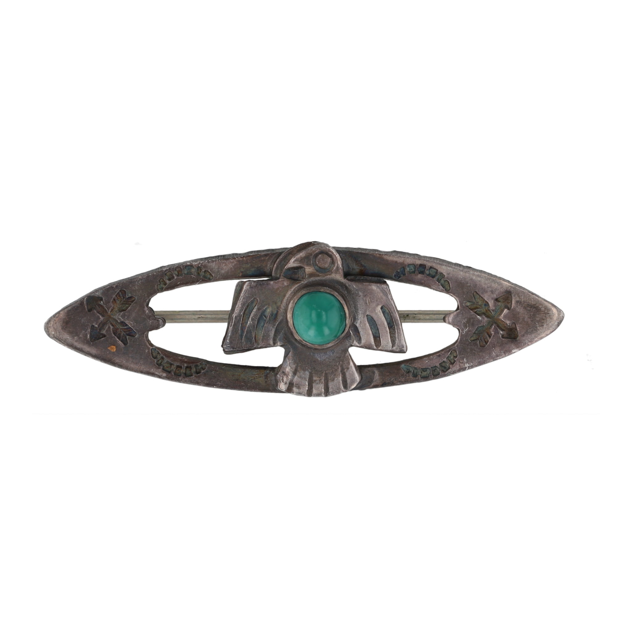 Navajo Turquoise Sterling Thunderbird Brooch 3g