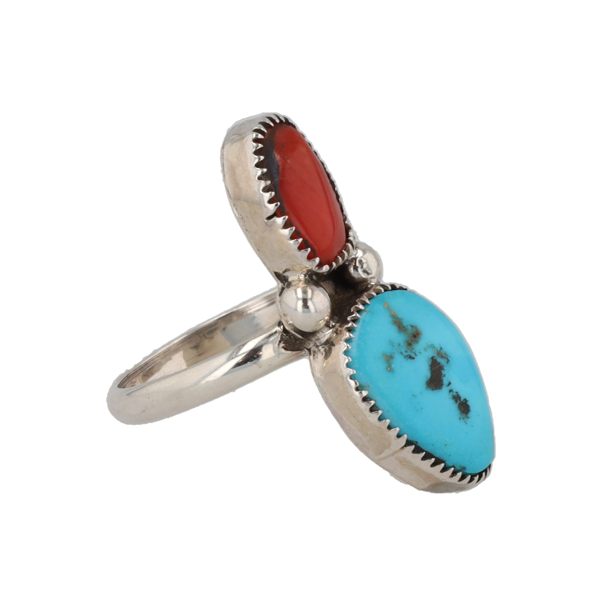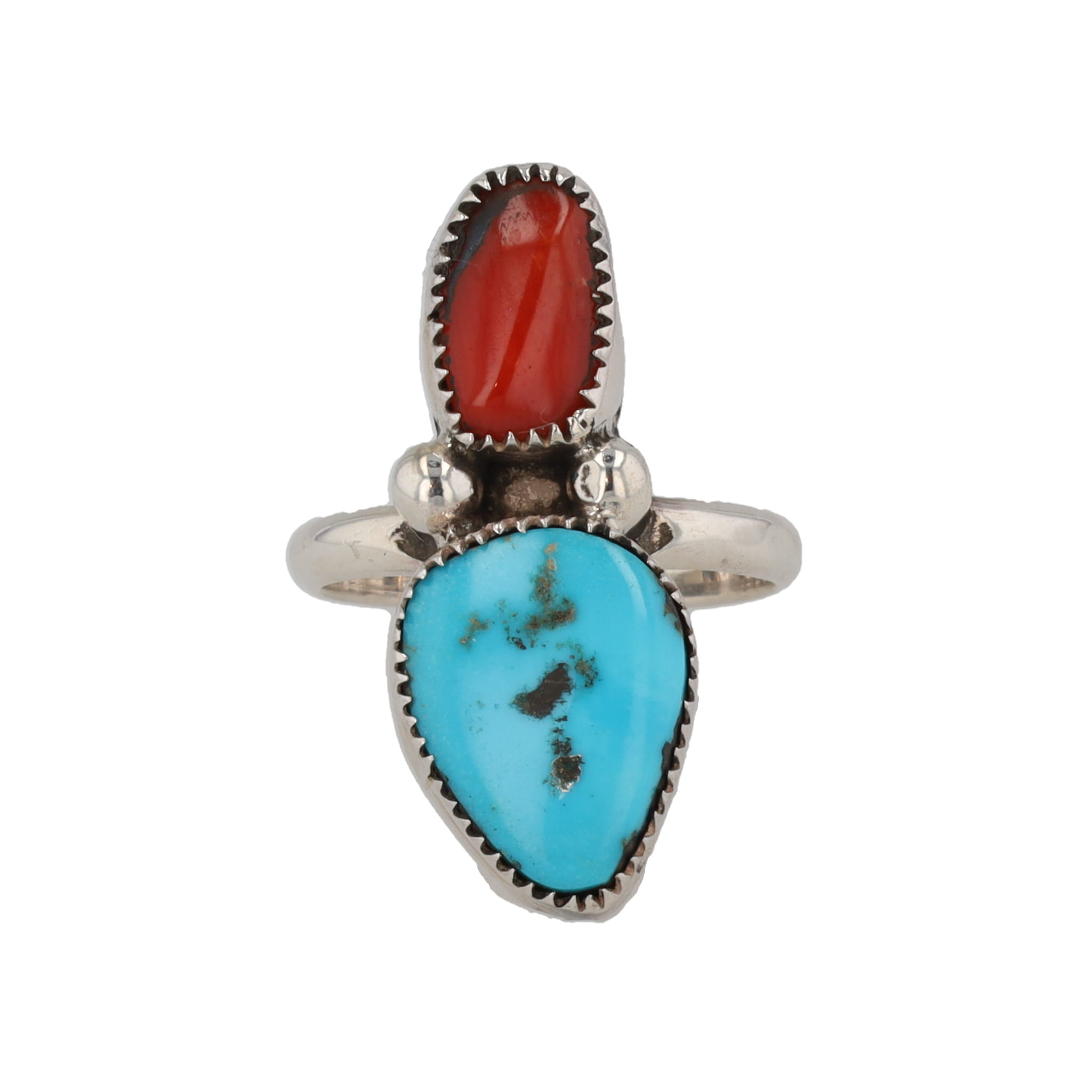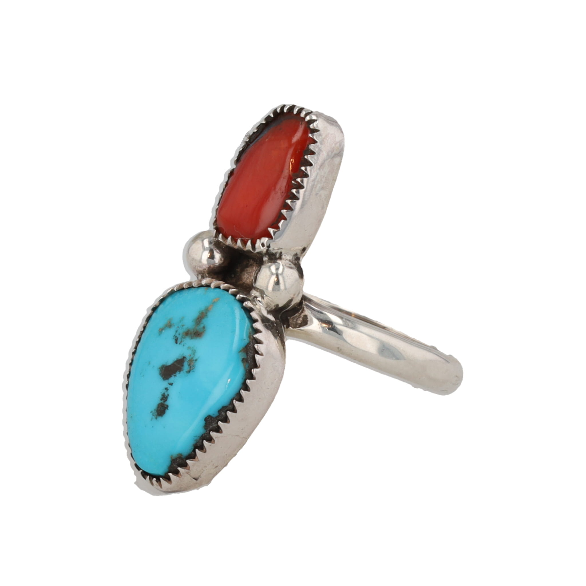 Navajo Turquoise Coral Sterling Ring Sz. 5.5, 4g