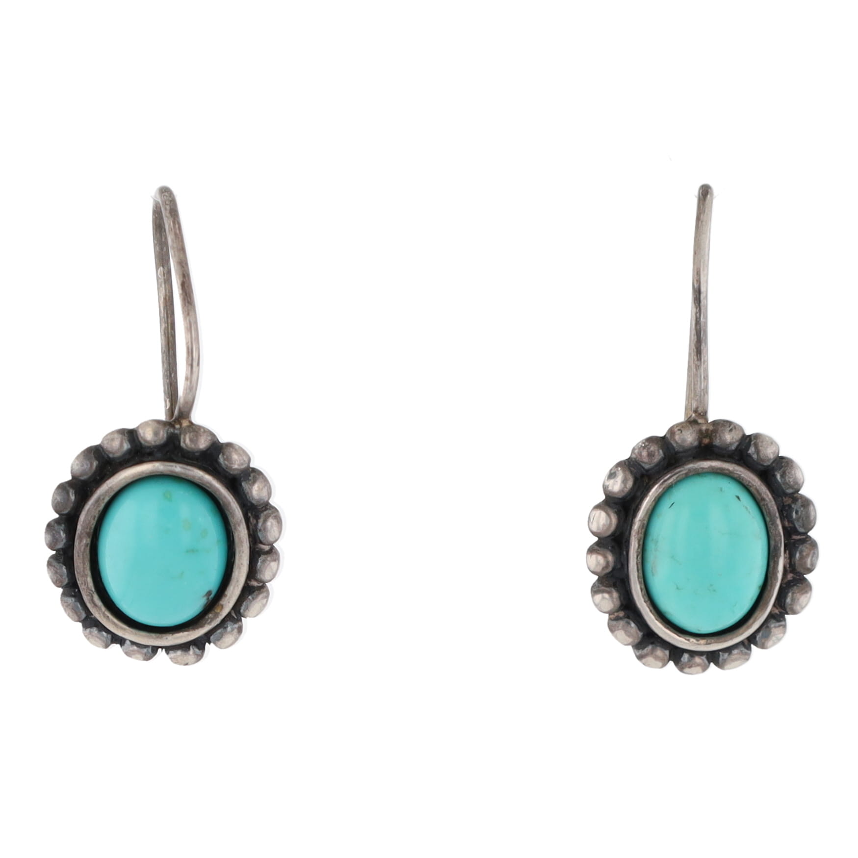 Signed MI Southwestern Style Turquoise Sterling Dangle Earrings 3g