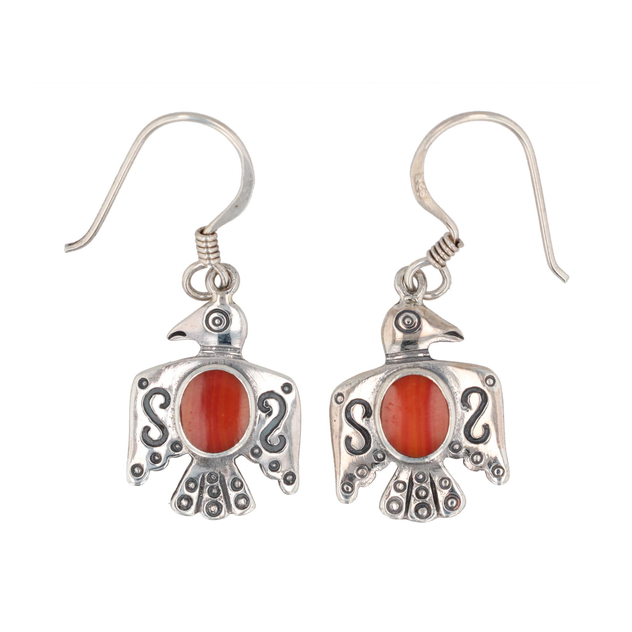 Signed BOMA Navajo Style Spiny Oyster Sterling Thunderbird Earrings 4g
