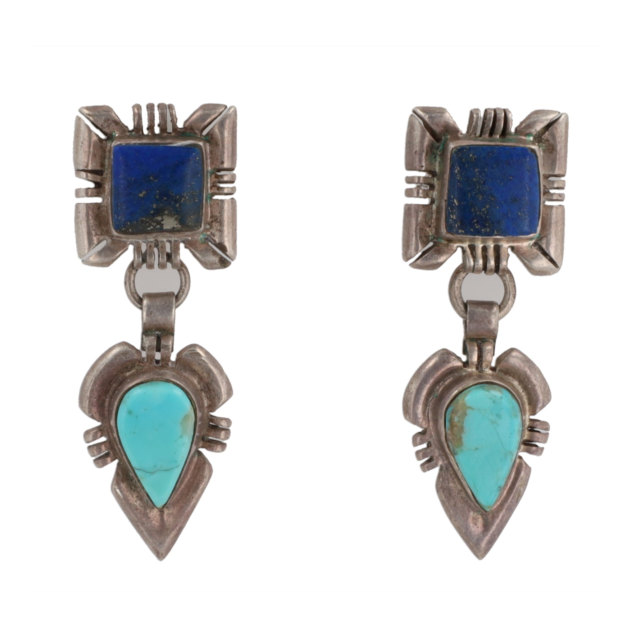 Quoc Trading Turquoise Lapis Sterling Dangle Earrings 10g