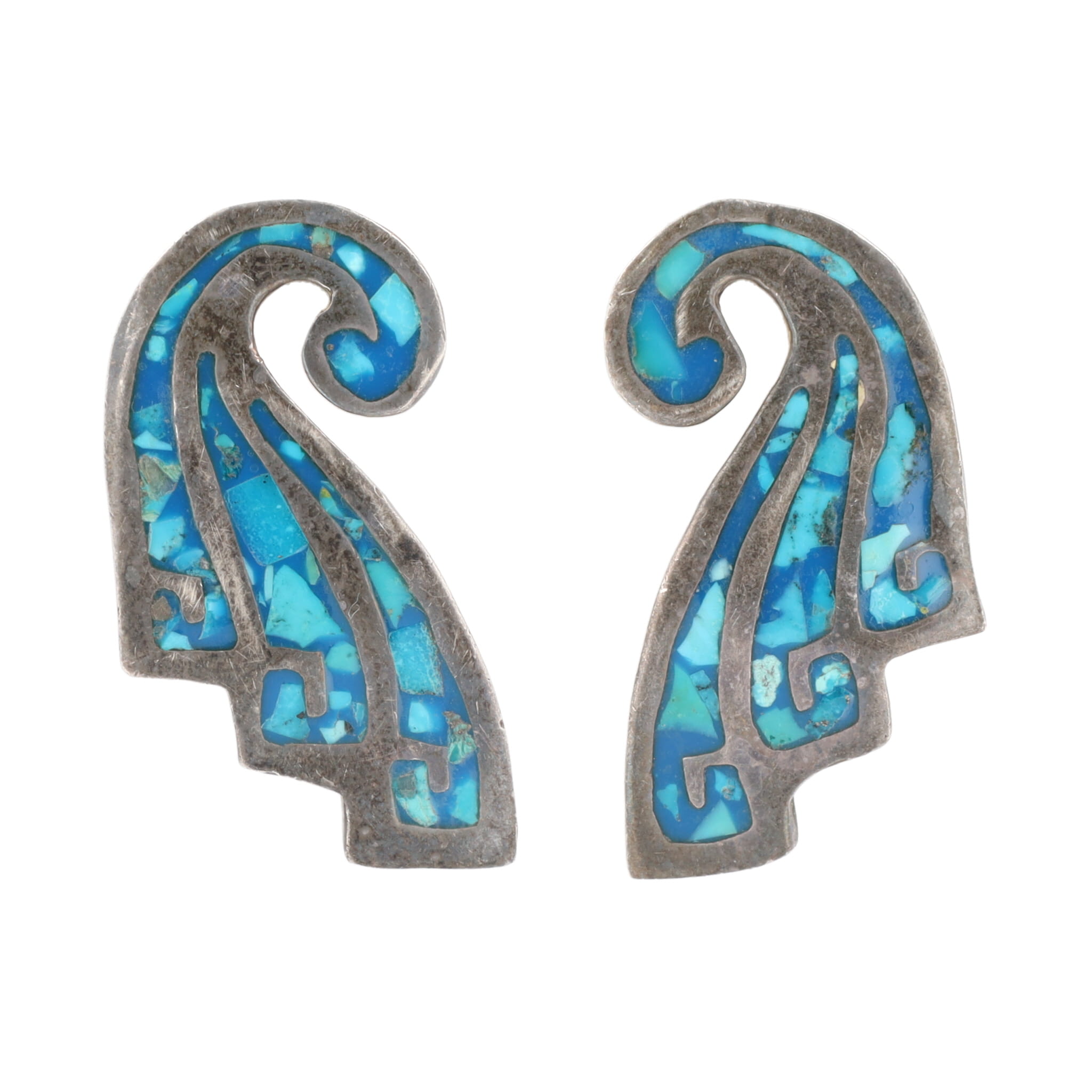 Signed TB-81 Taxco Mexico Crushed TUrquoise Sterling Wave Earrings 13.4g