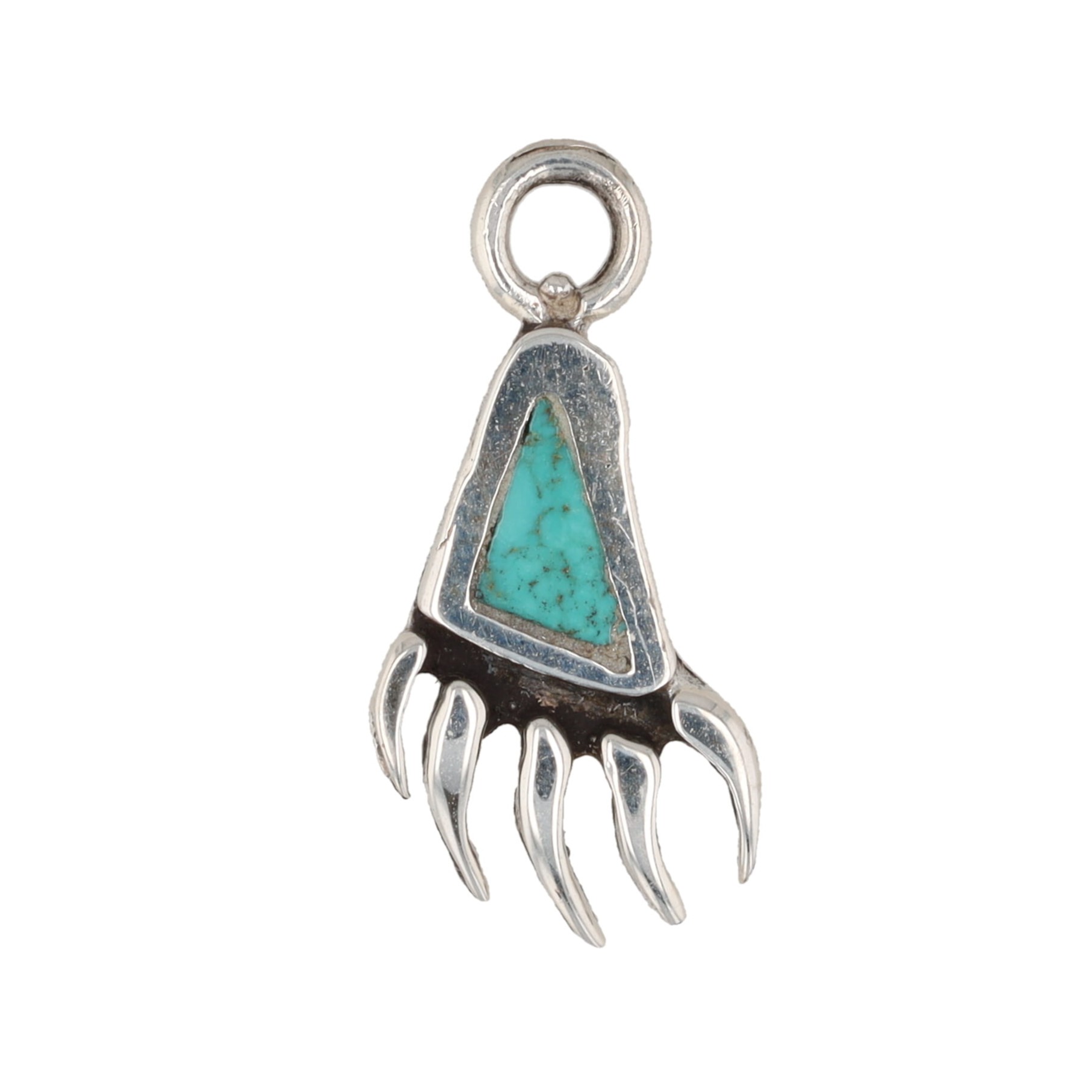 Navajo Crushed Turquoise Sterling Bear Paw Pendant 1g