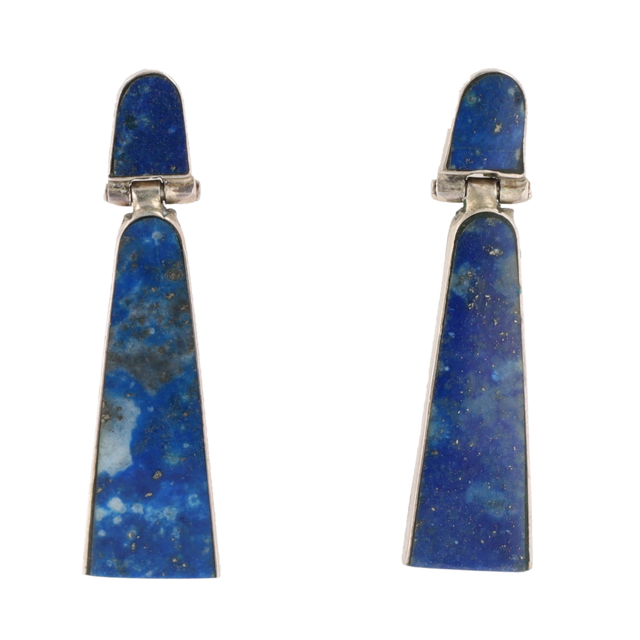 Mexico 950 Silver Lapis Hinge Dangle Earrings 6.5g