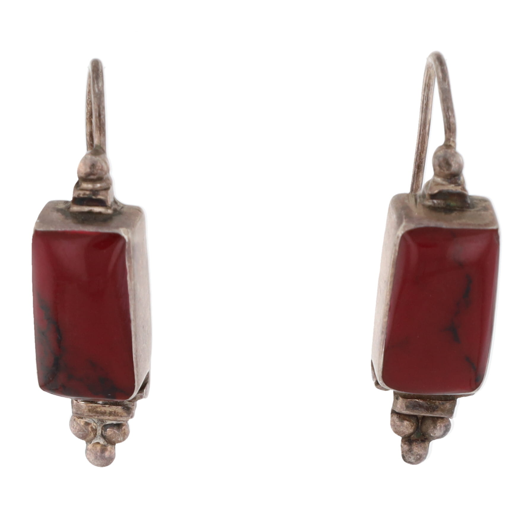 Mexico ATT Jasper Sterling Dangle Earrings 7g