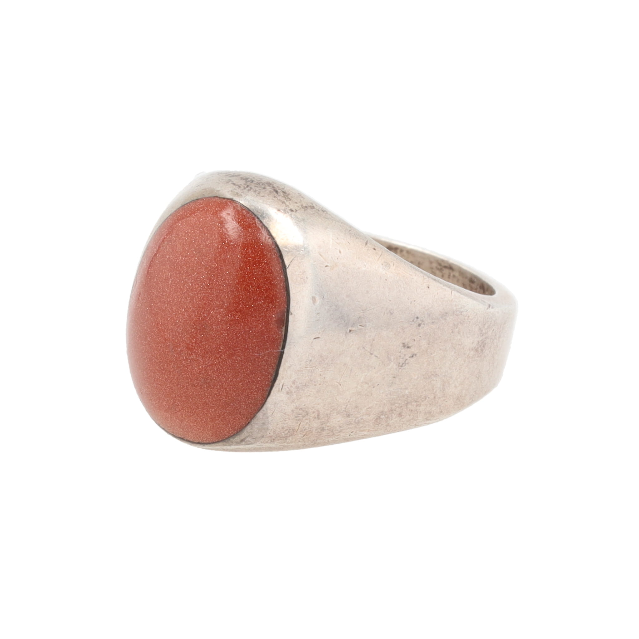 Mexico Goldstone Sterling Ring Sz. 8.25, 15g