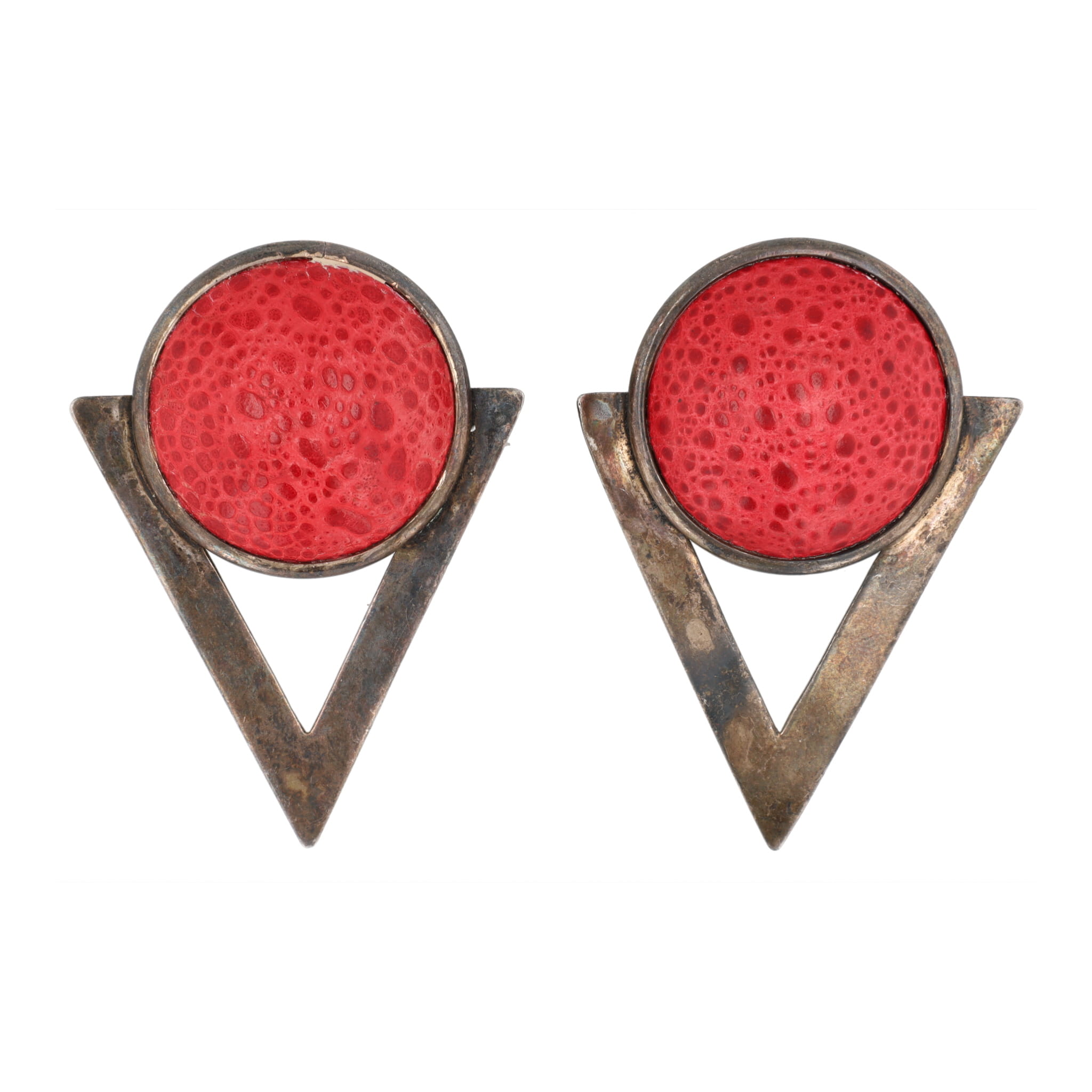 Contemporary Mid Century Red Leather Sterling Earrings 30g