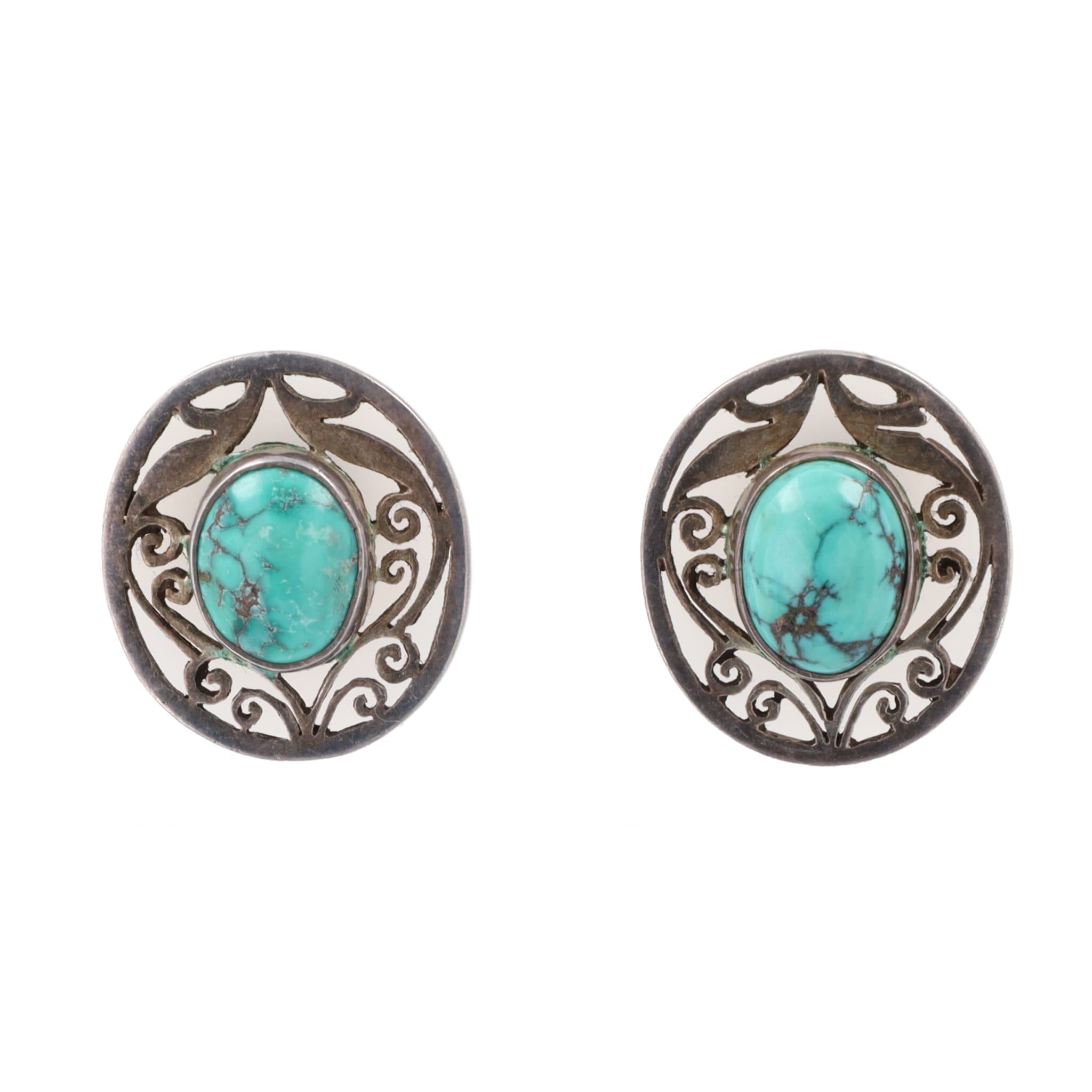 Southwestern Turquoise Sterling Filigree Earrings 6g