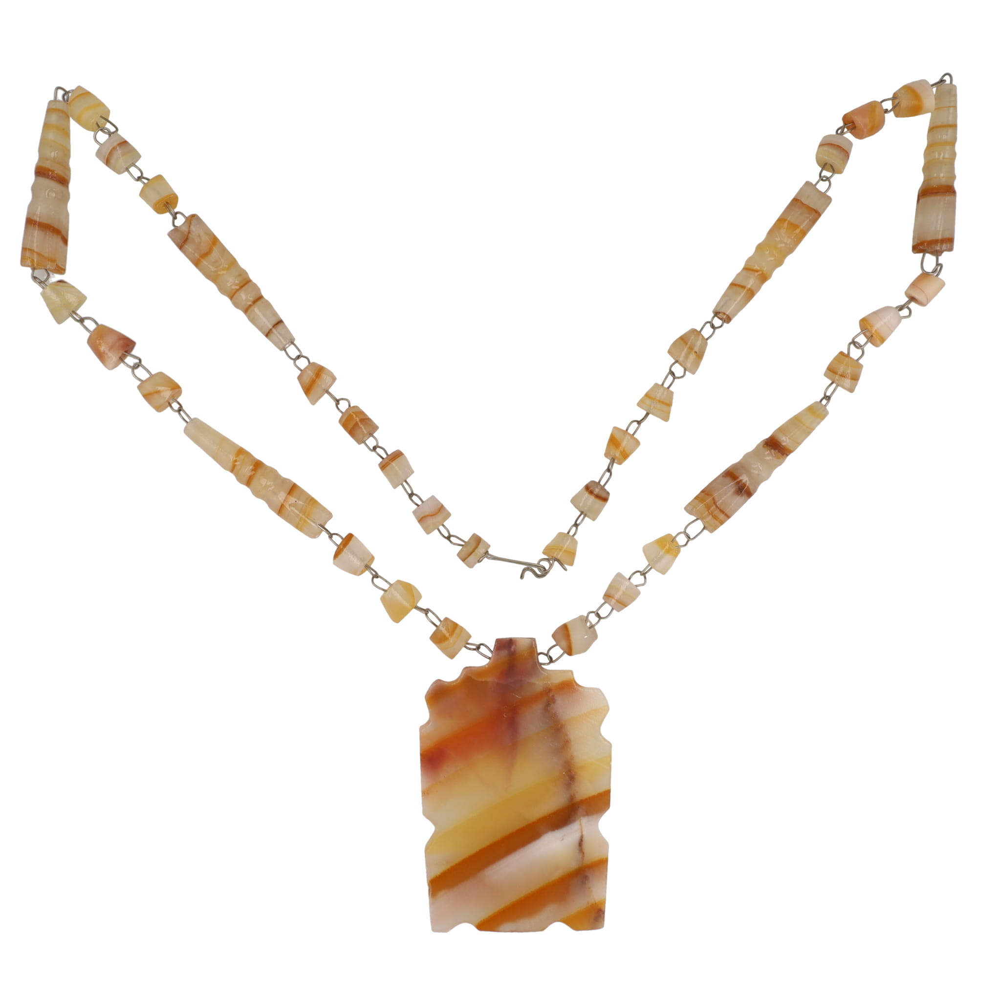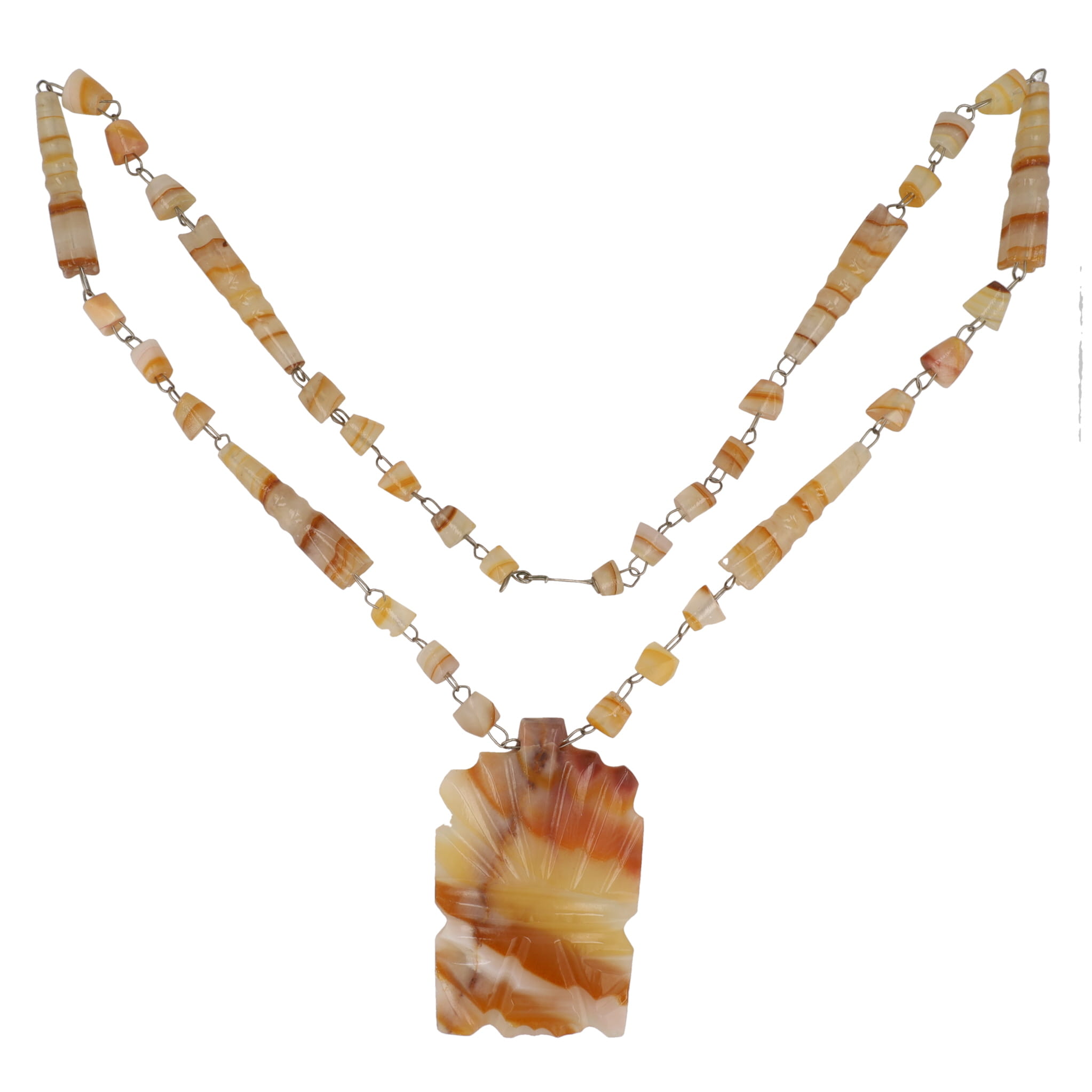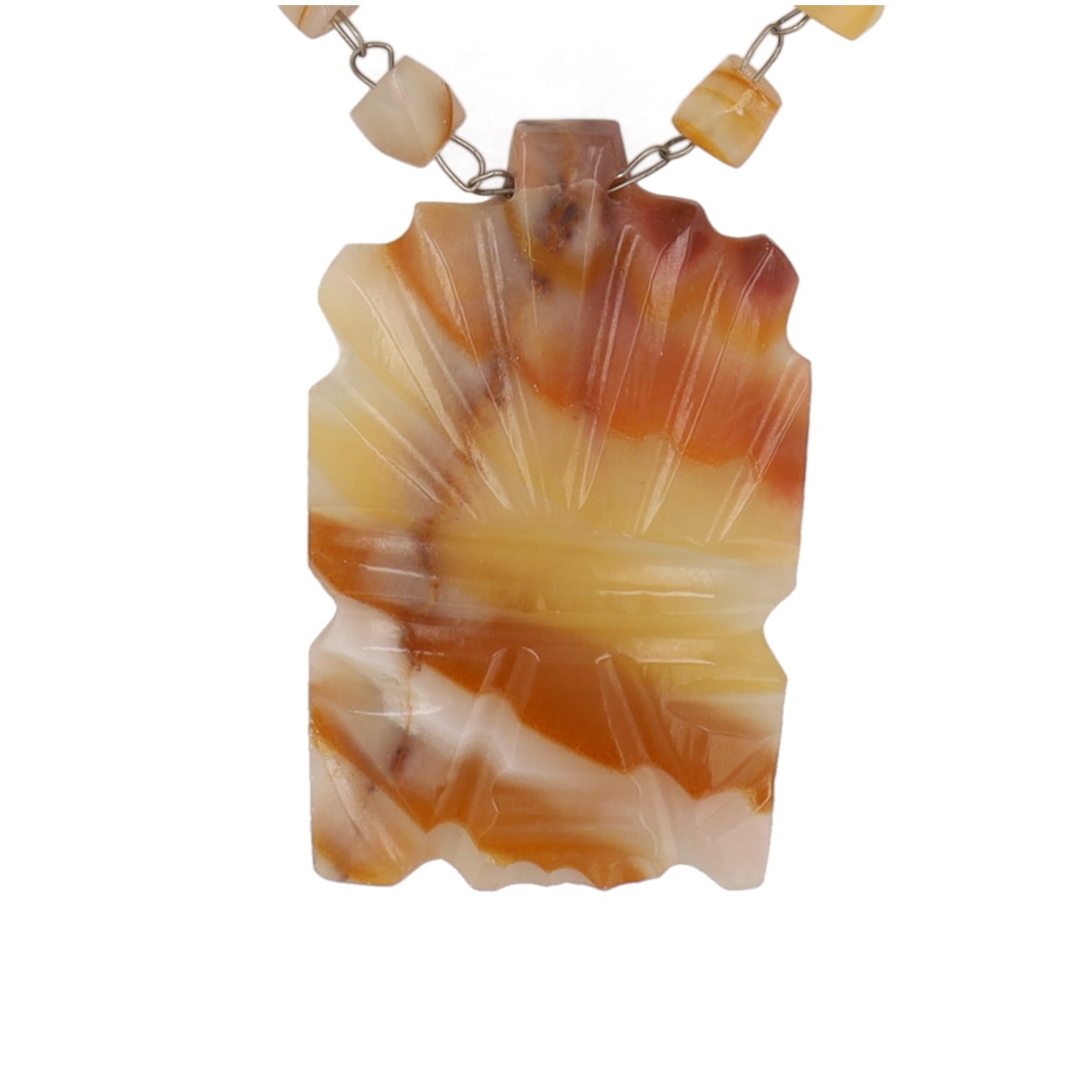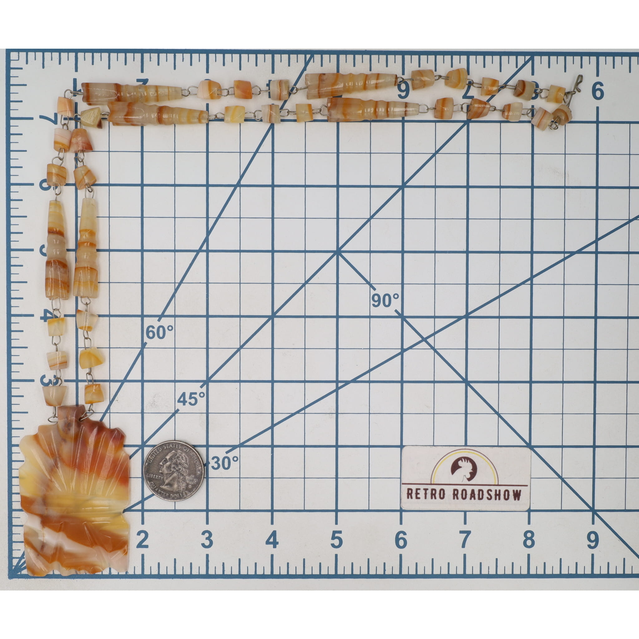 Mexico Carved Lace Agate Aztec Or Mayan Face Necklace 65.5g