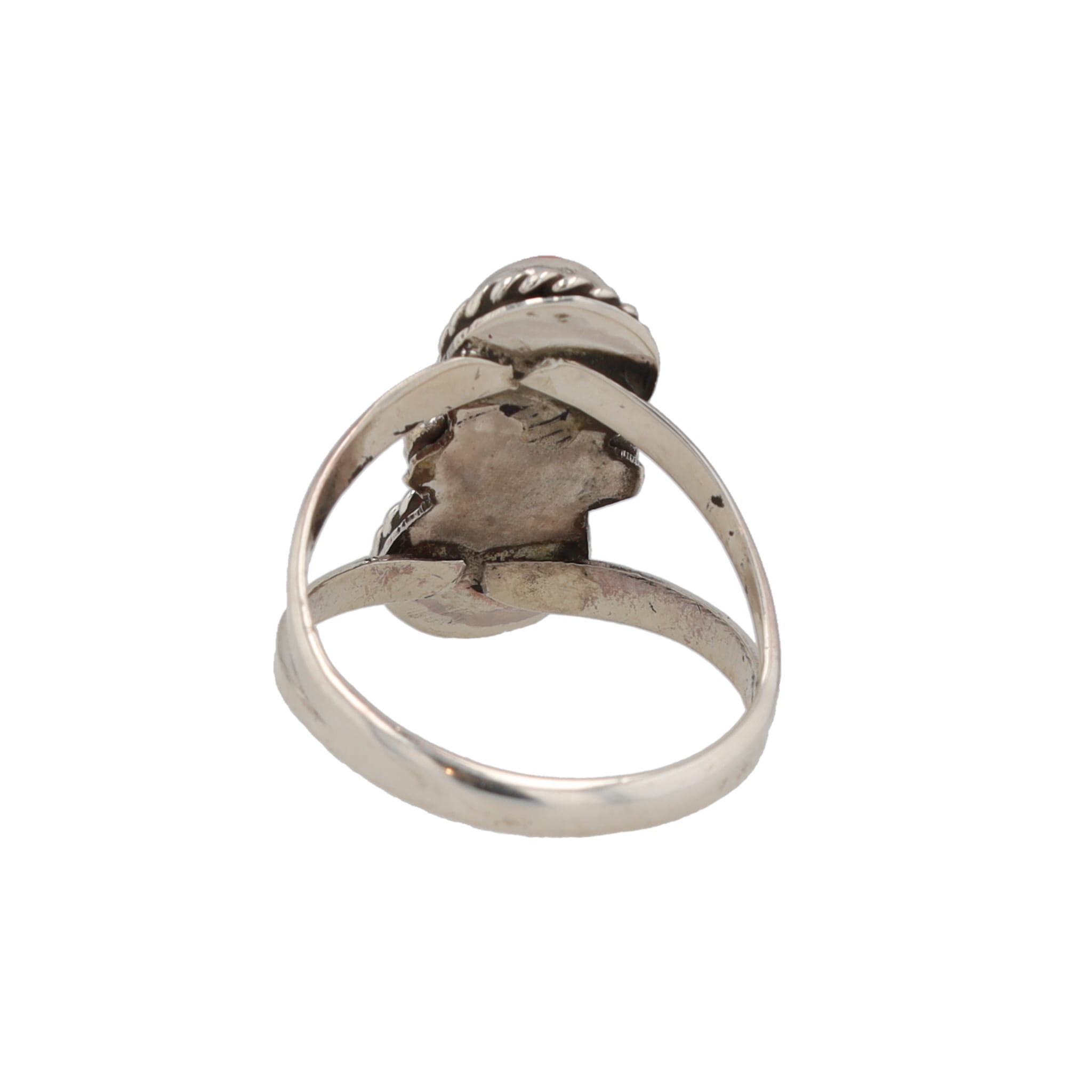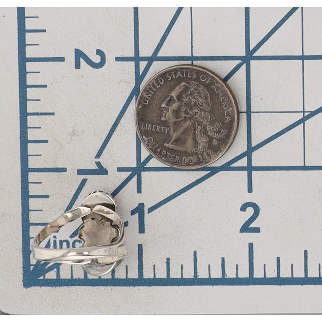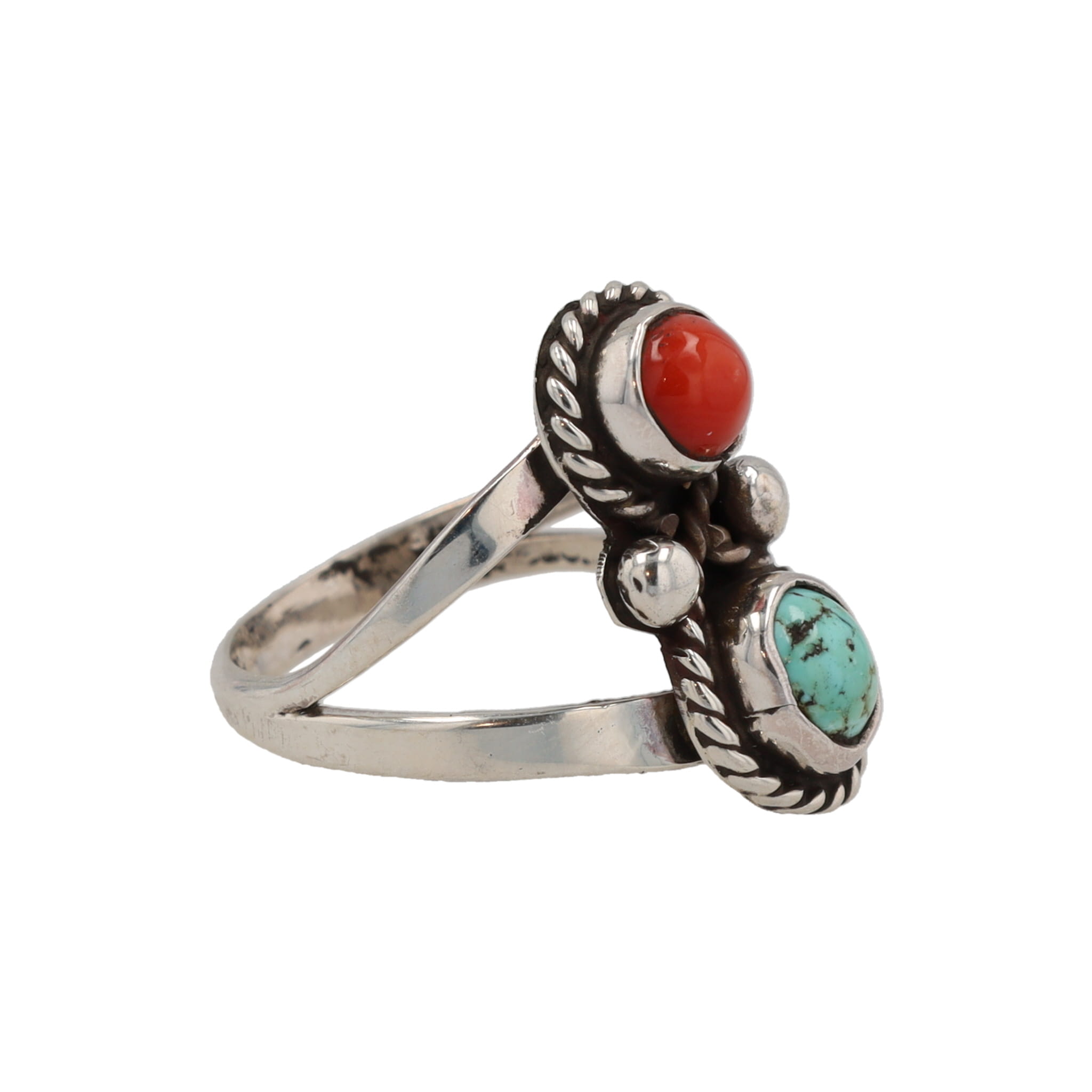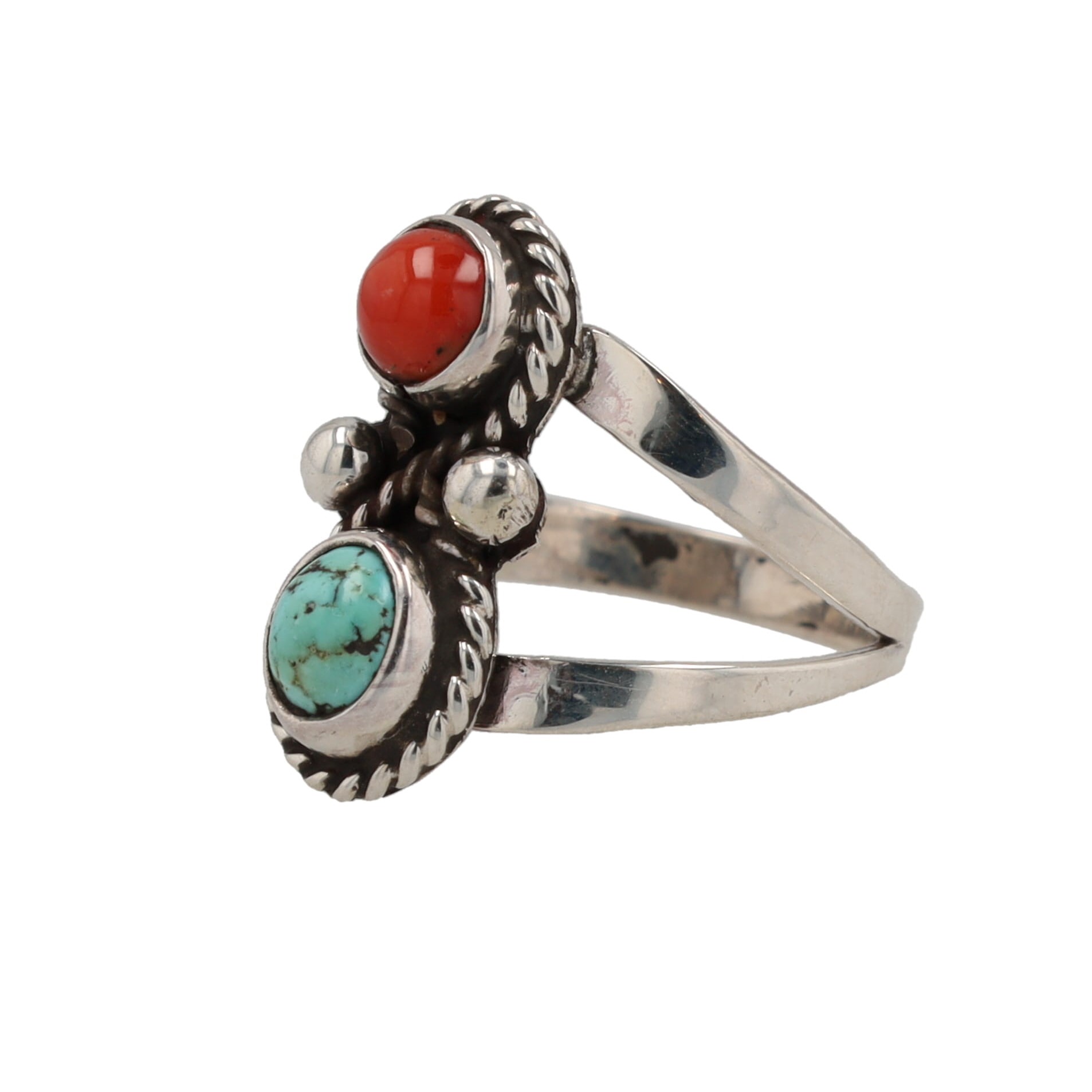 Navajo Turquoise Coral Sterling Figure 8 Overlay Ring Sz. 6.75, 3.5g
