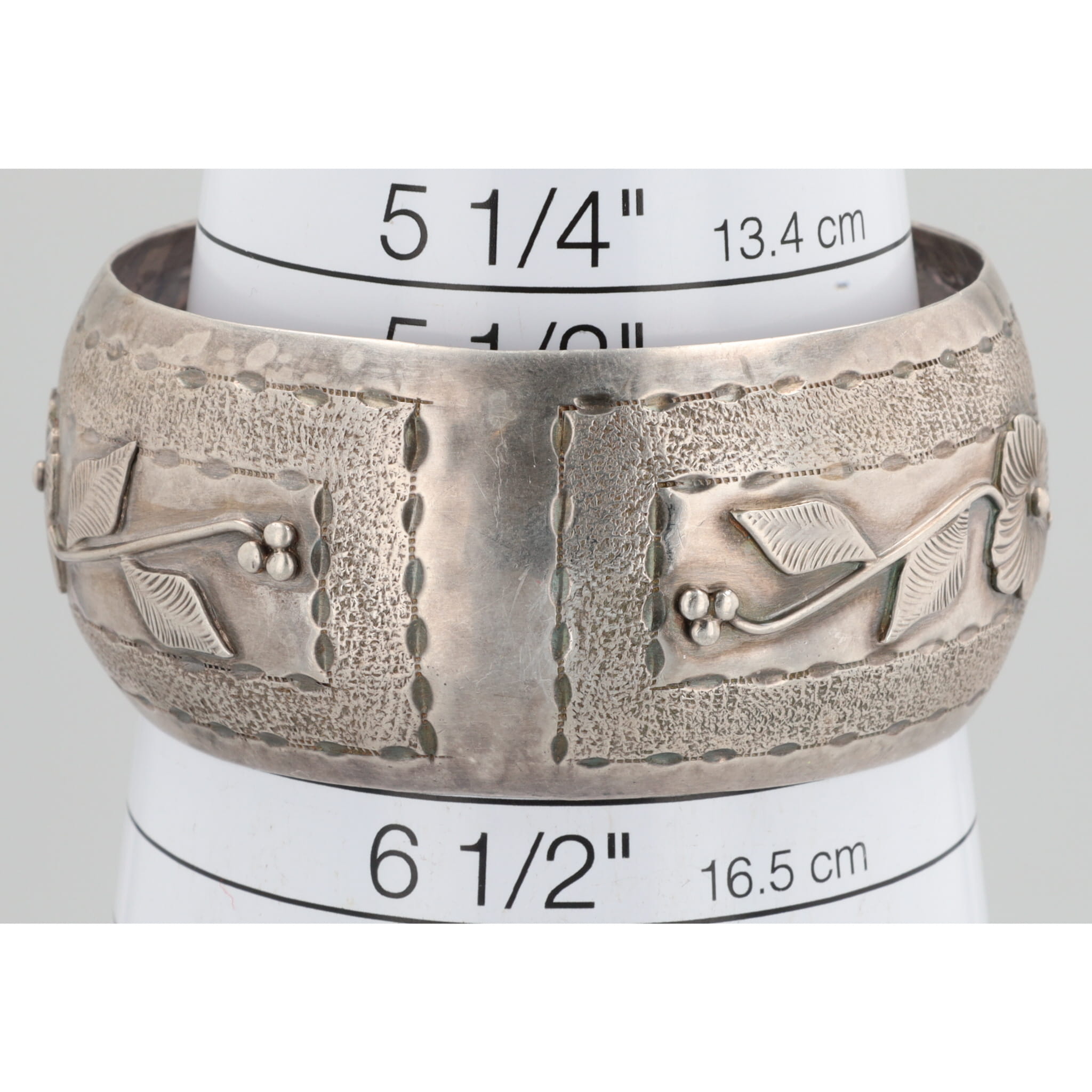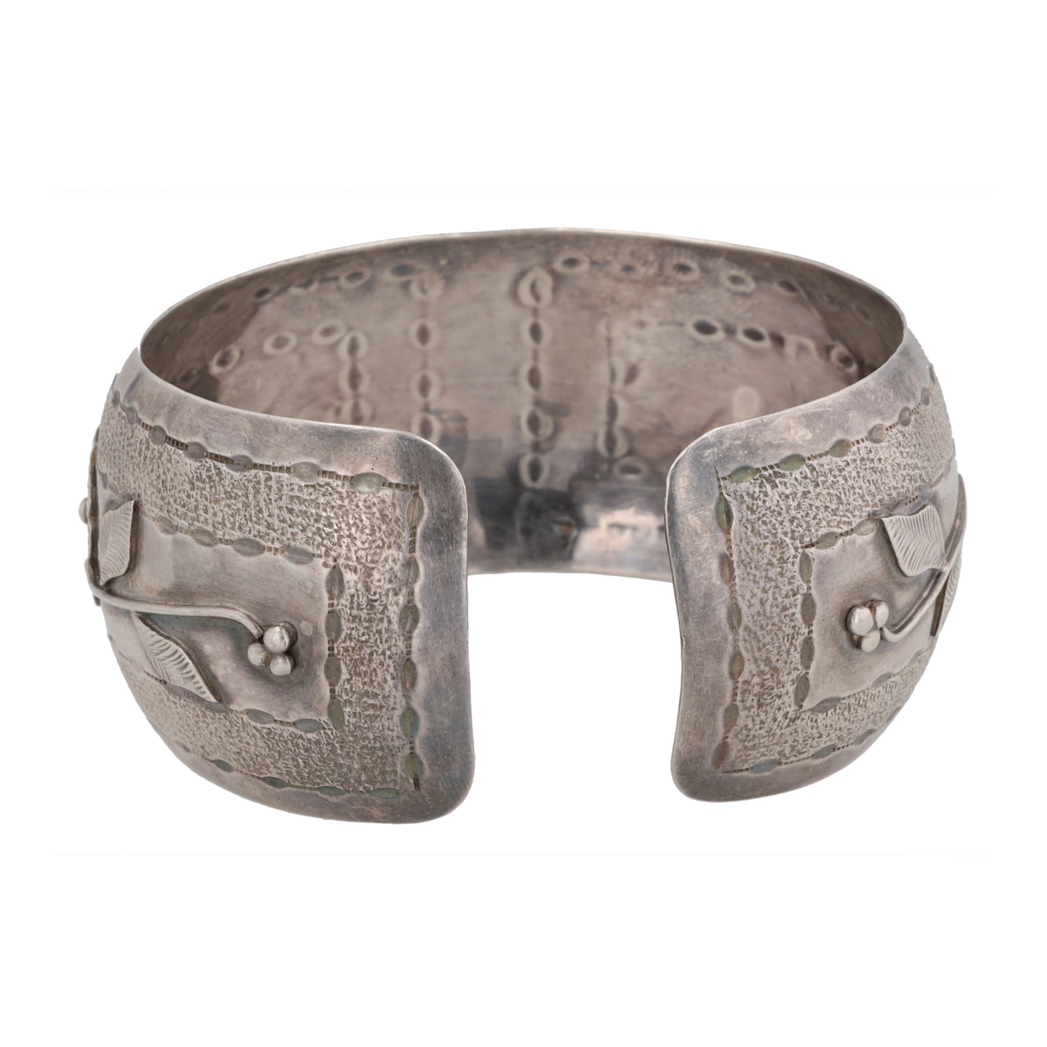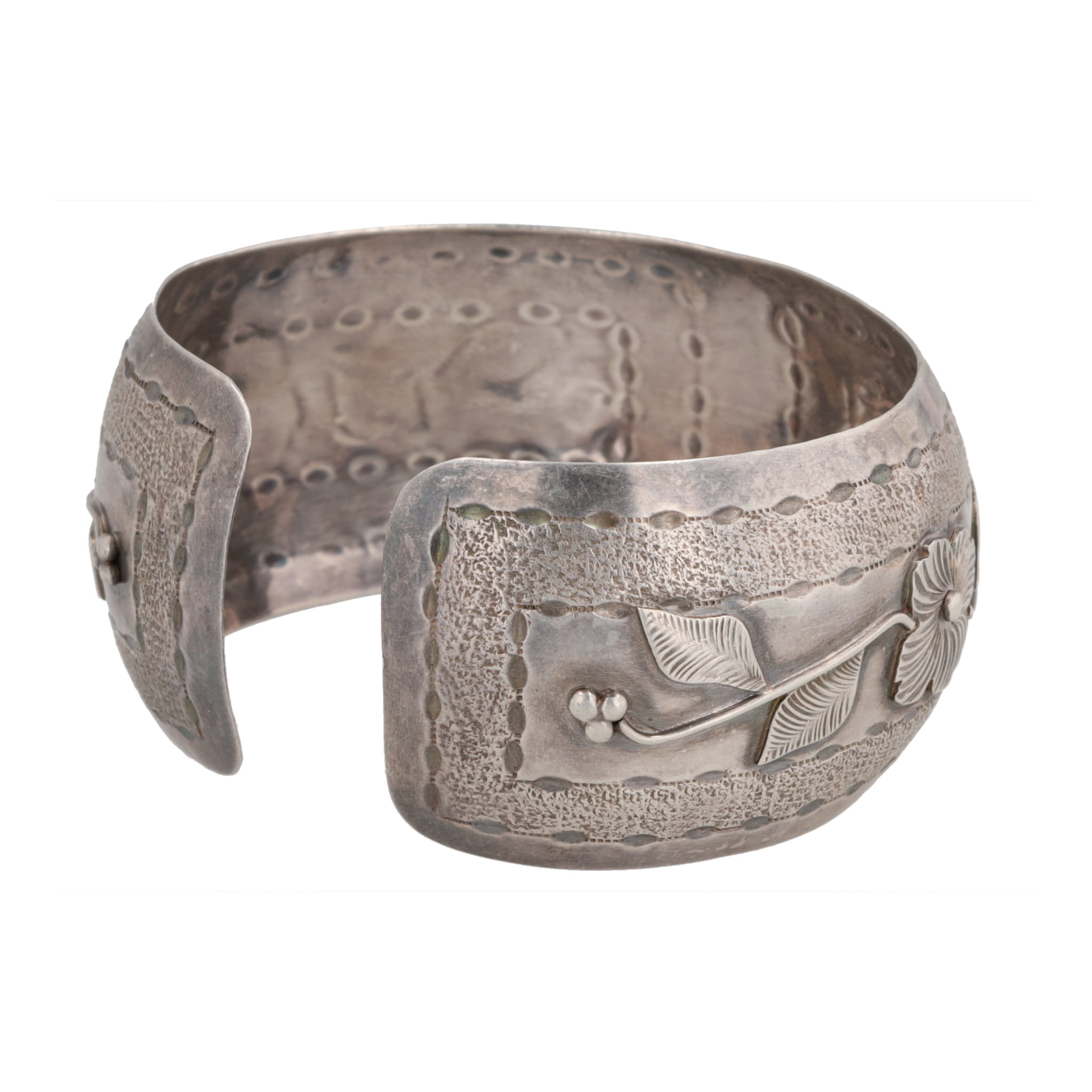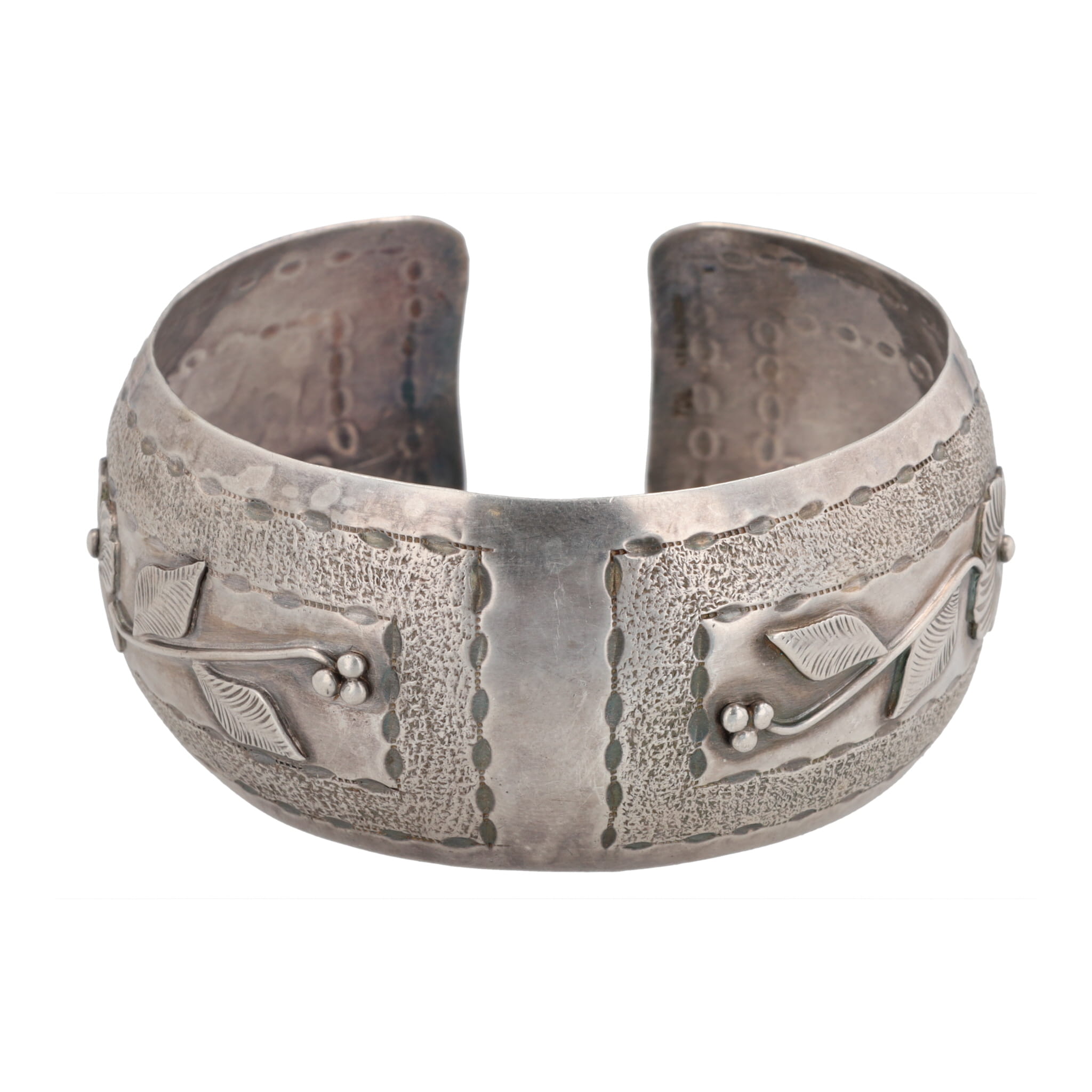 Signed YDL Trinidad Sterling Floral Stamp Work Cuff Bracelet 28g