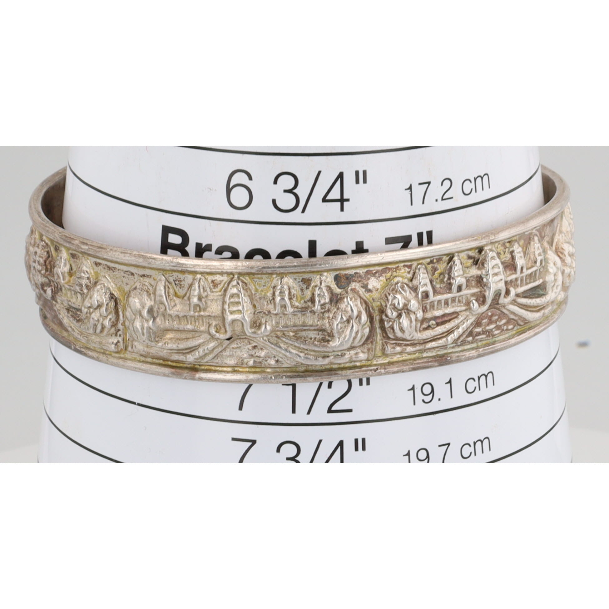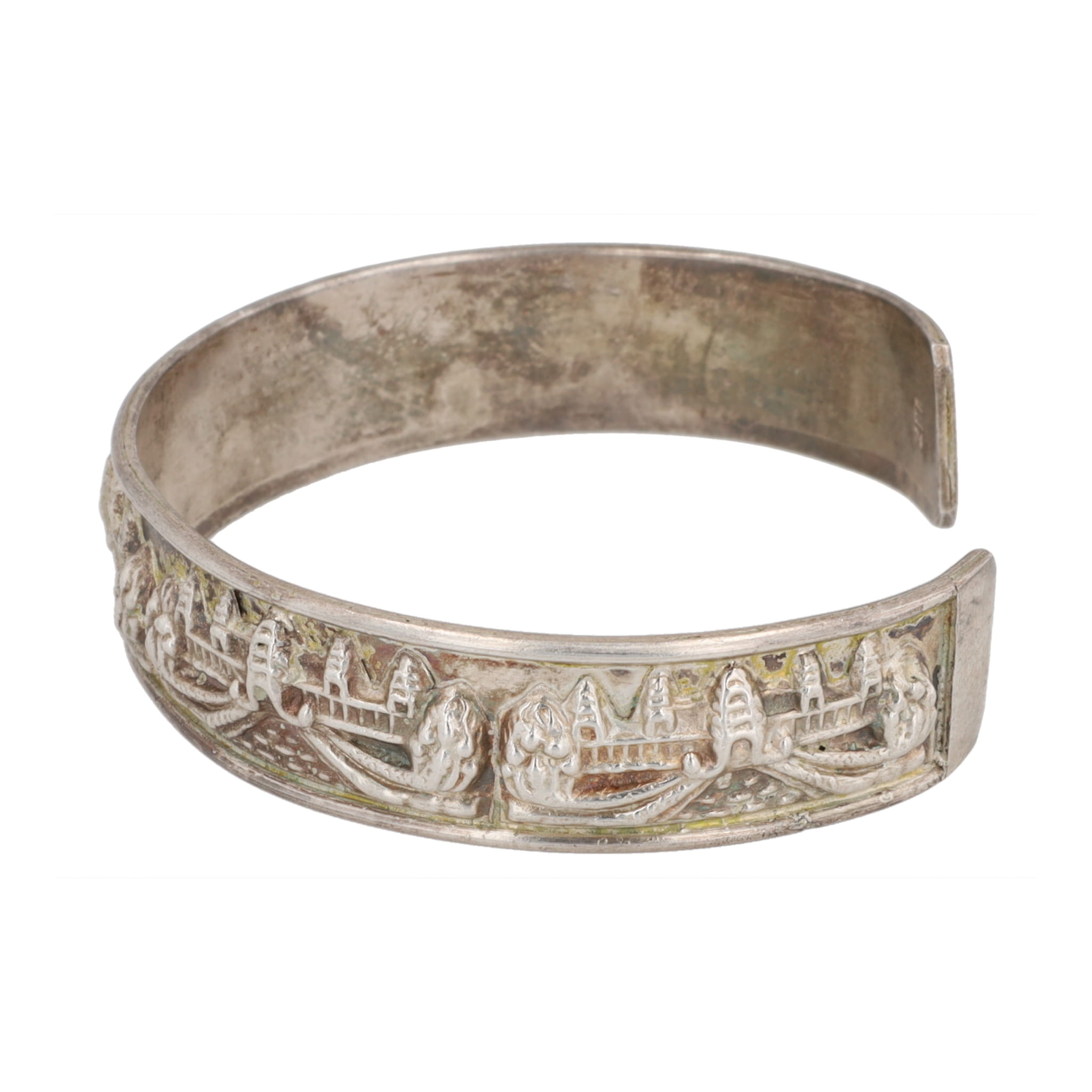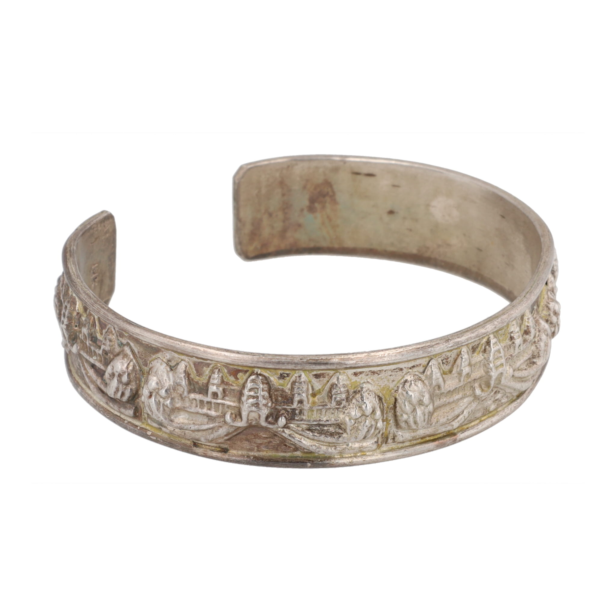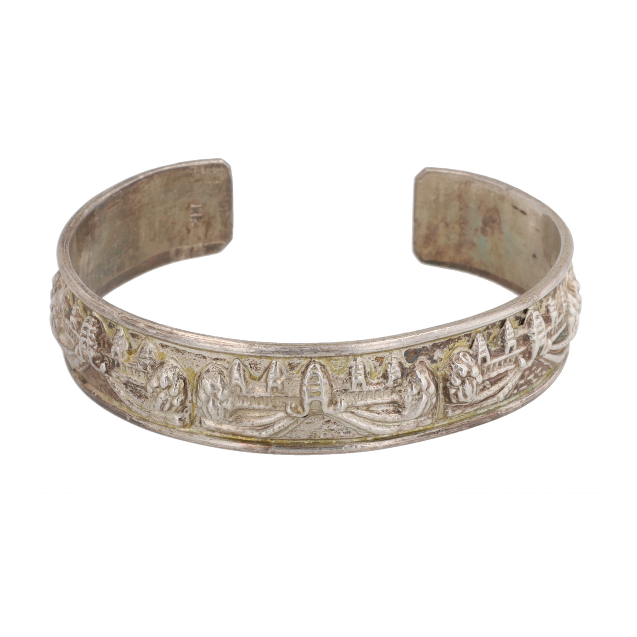 18k Gold Stamped Indonesia Temple Cuff Bracelet 31g, Tests as Sterling