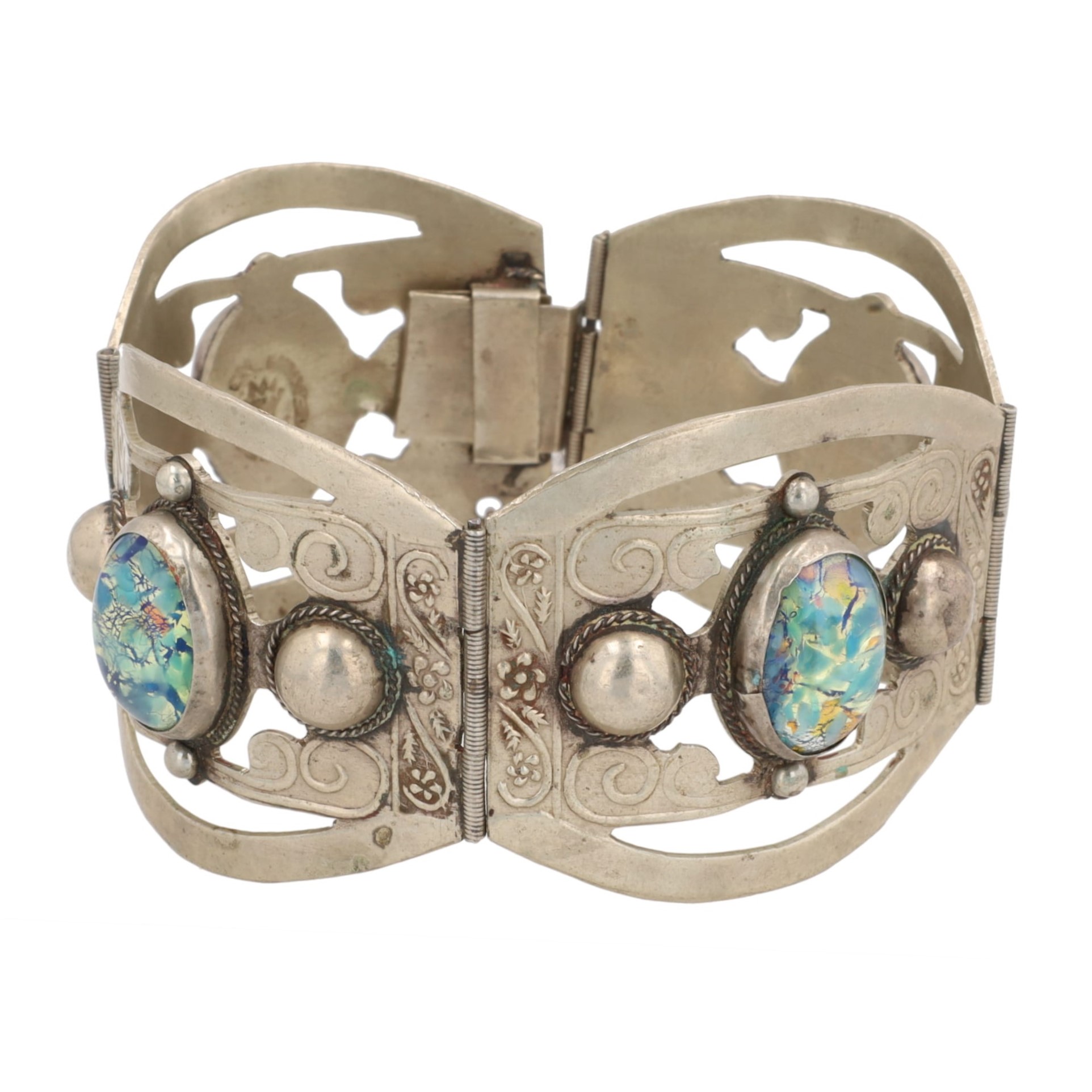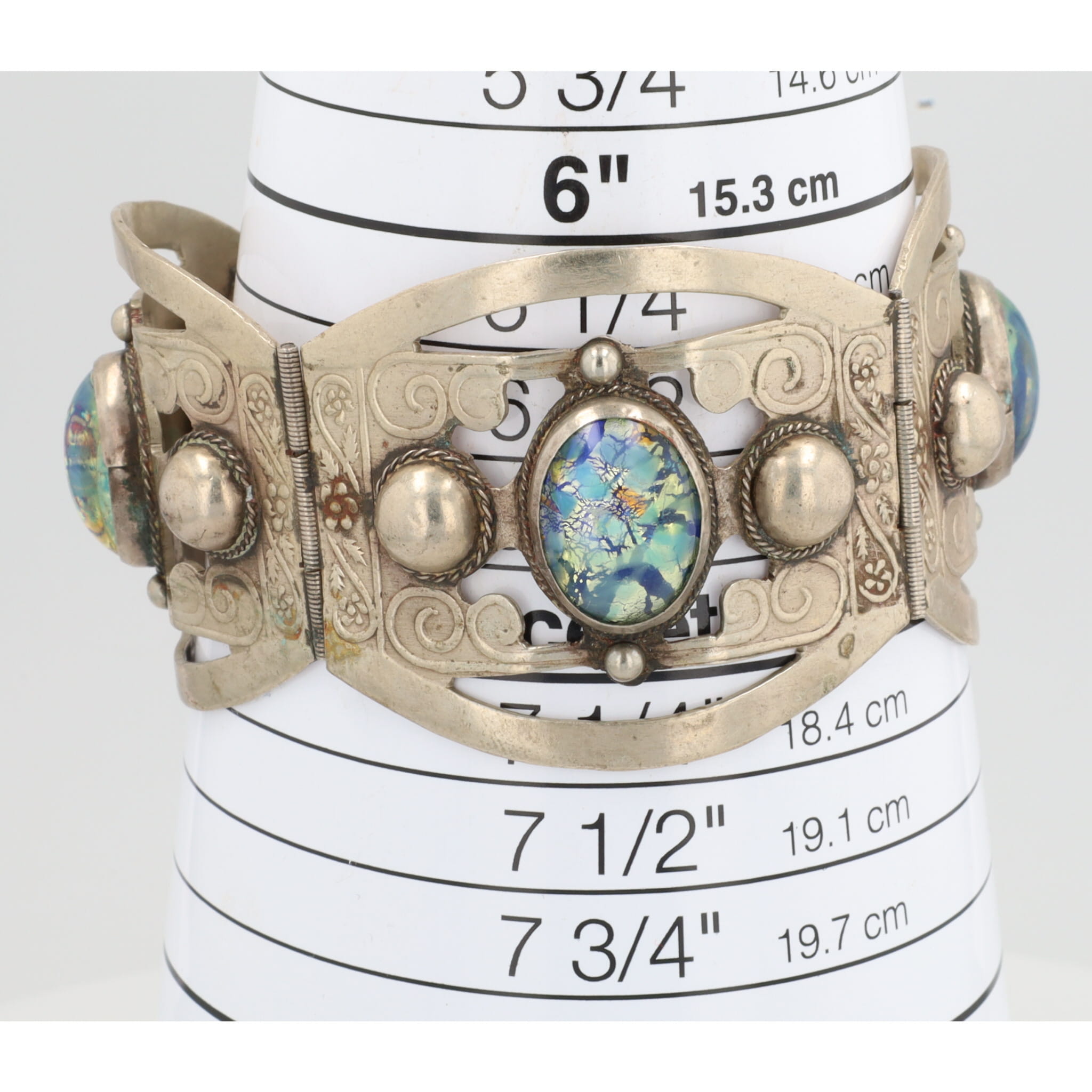 Mexico Alpaca Foiled Glass Stamp Work Panel bracelet 57g