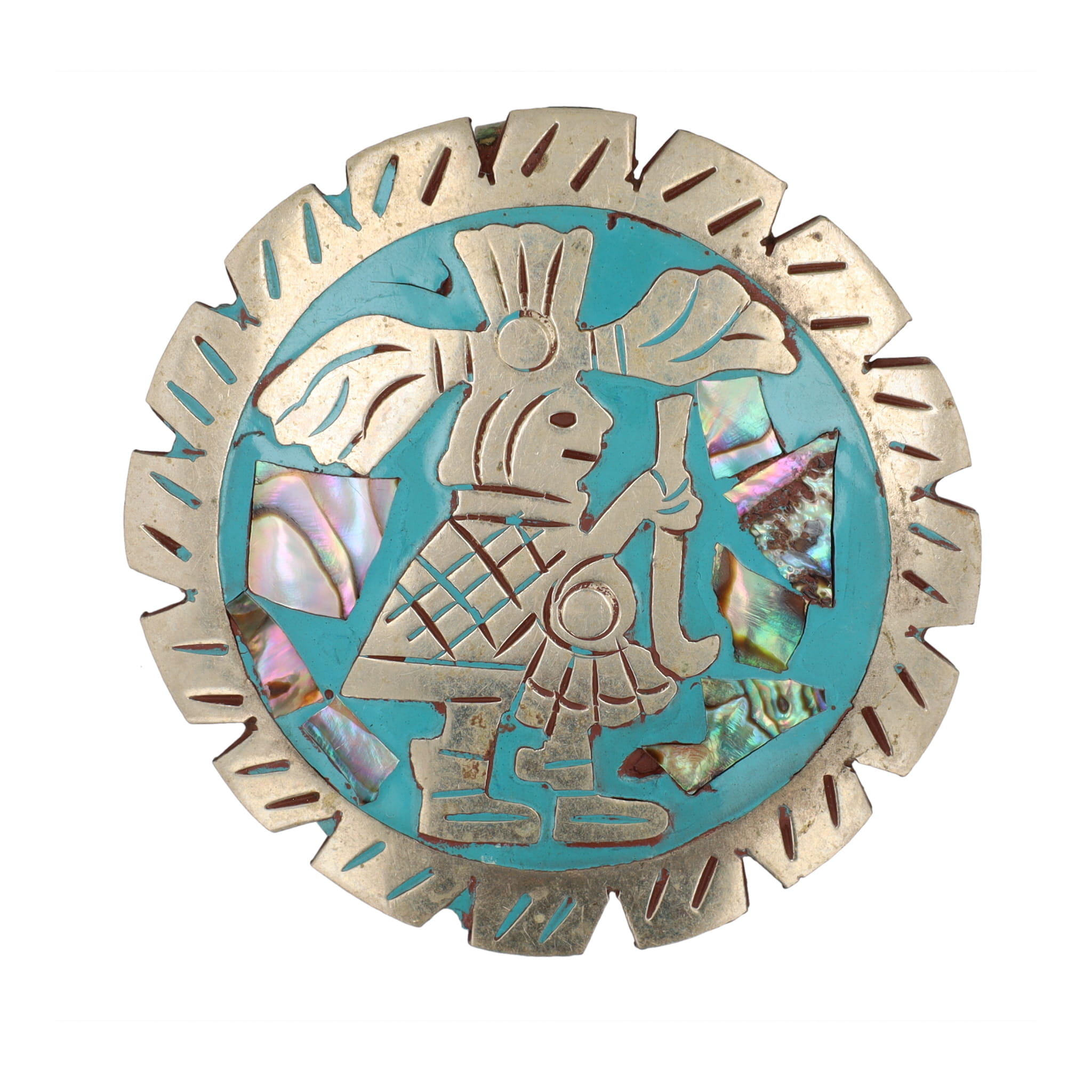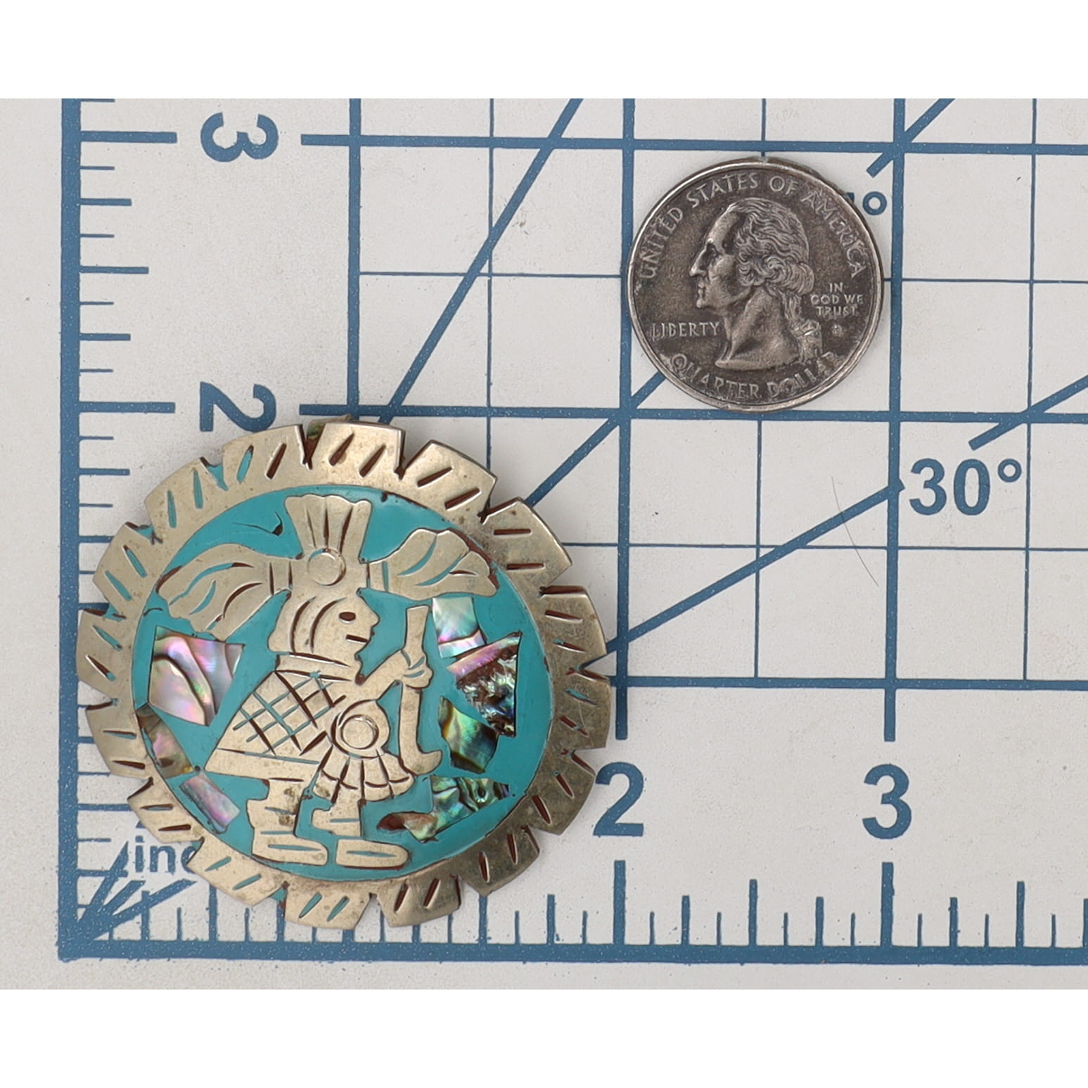 Mexico Alpaca Enamel Abalone Aztec/Mayan Style Pendant Brooch 16g