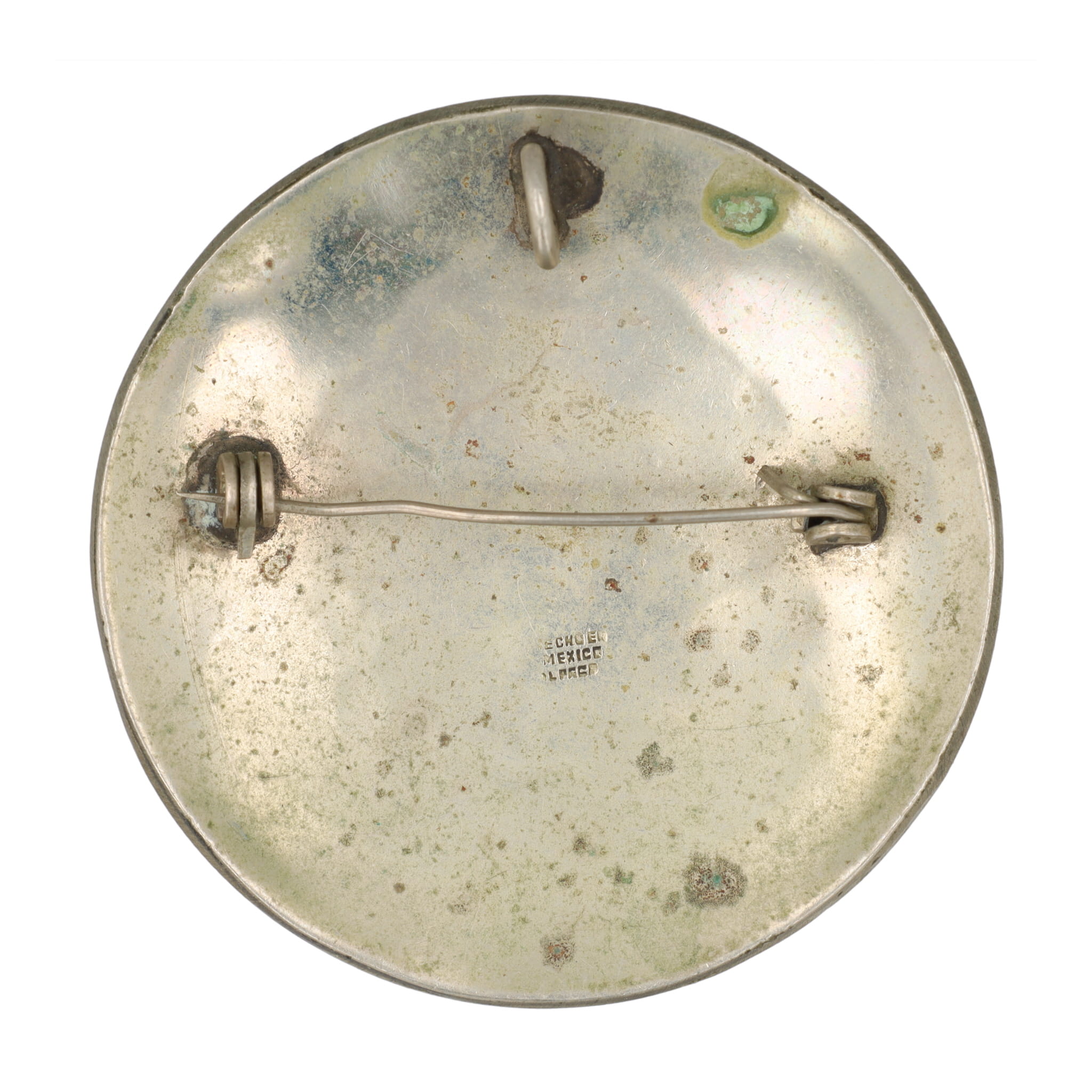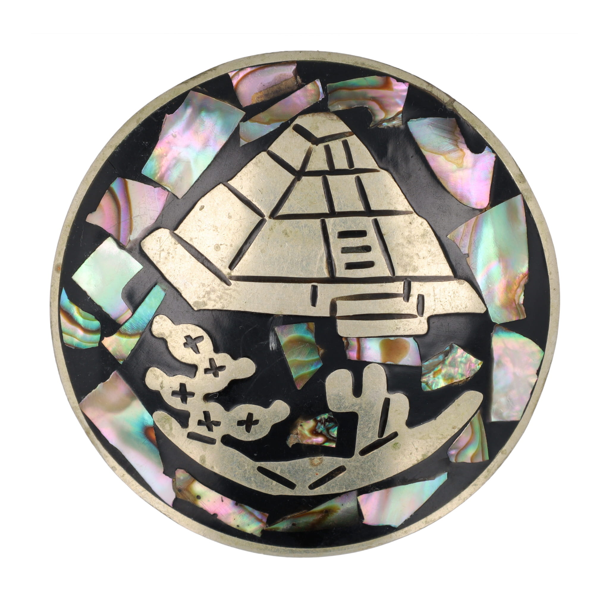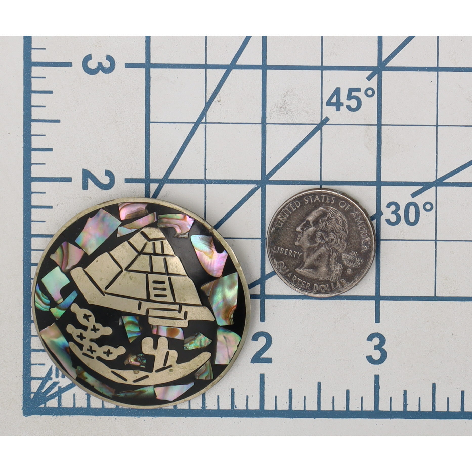 Mexico Alpaca Enamel Abalone Aztec/Mayan Style Brooch Pendant 12g