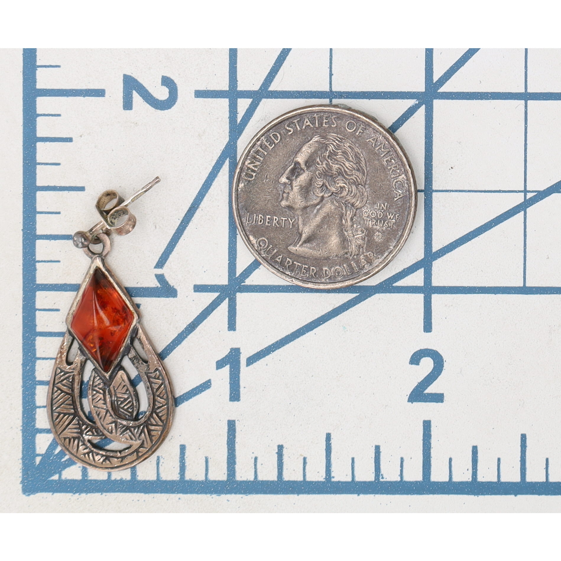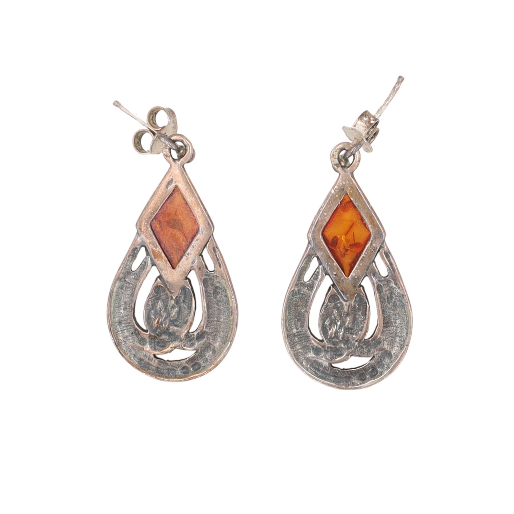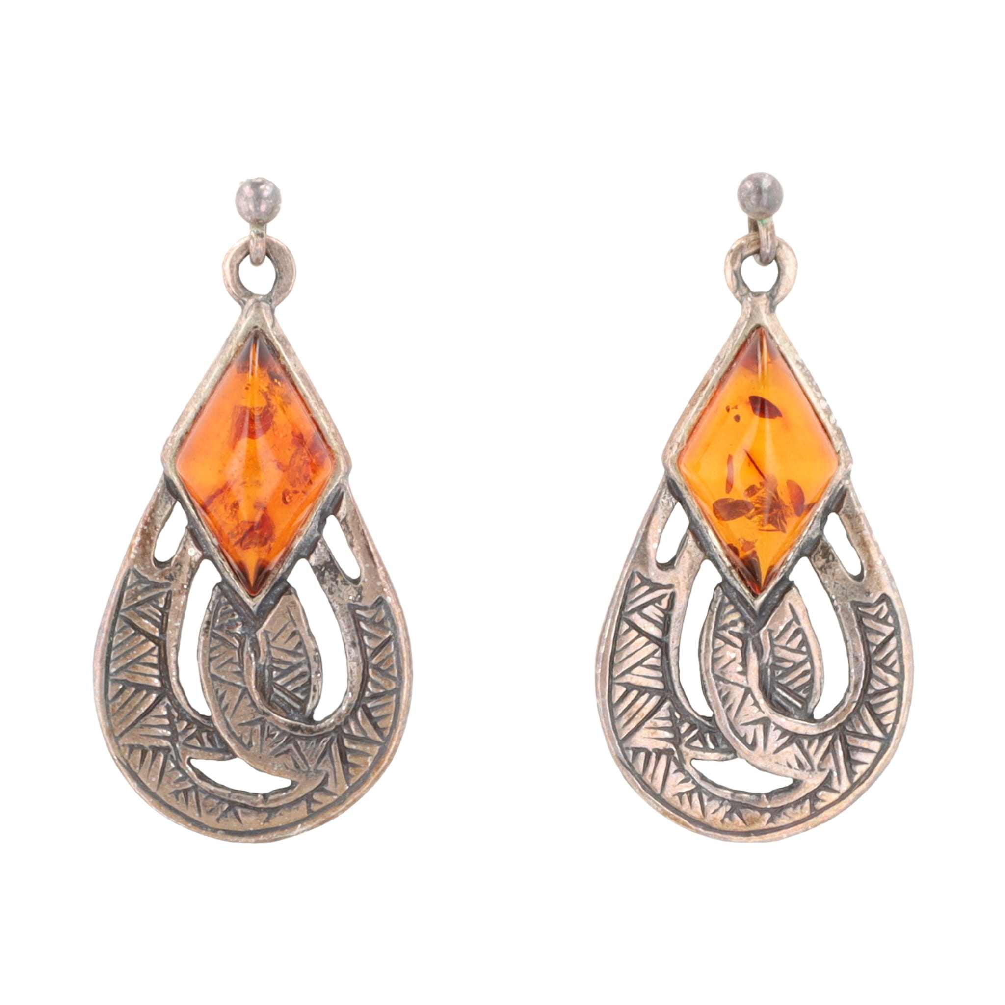 Amber Sterling Dangle Earrings 6g