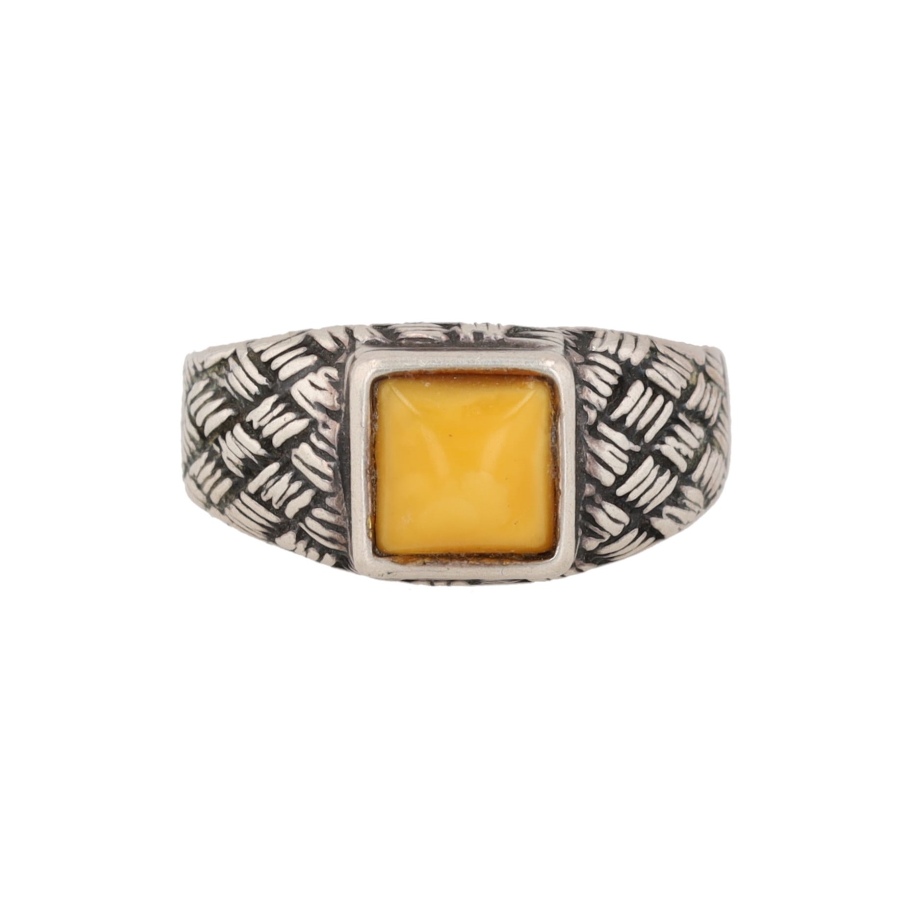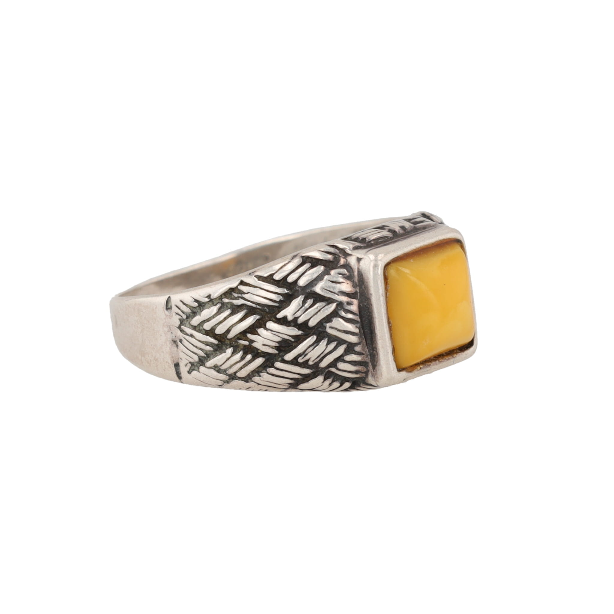 Signed V.8 Butterscotch Amber Sterling Ring Sz. 9, 3.5g