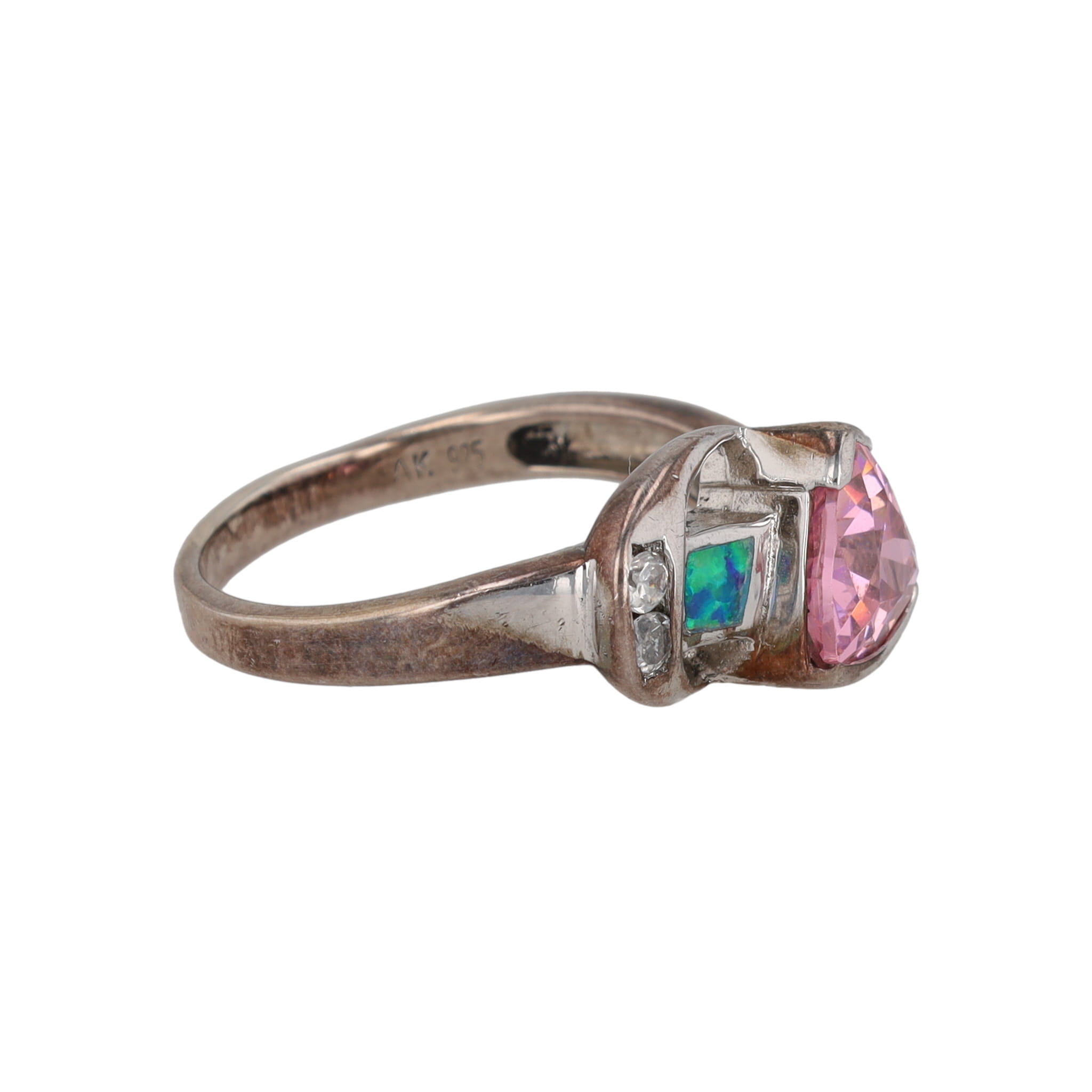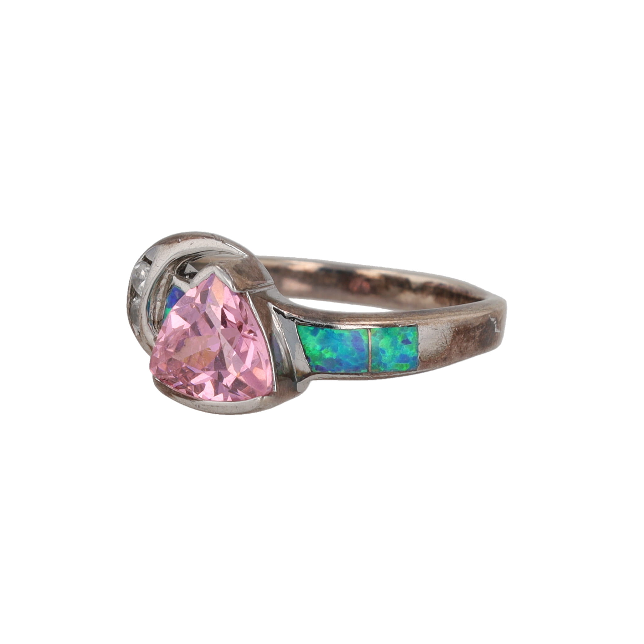 Signed AK Pink Tourmaline Opal Sterling Cocktail Ring Sz. 8.5, 5g