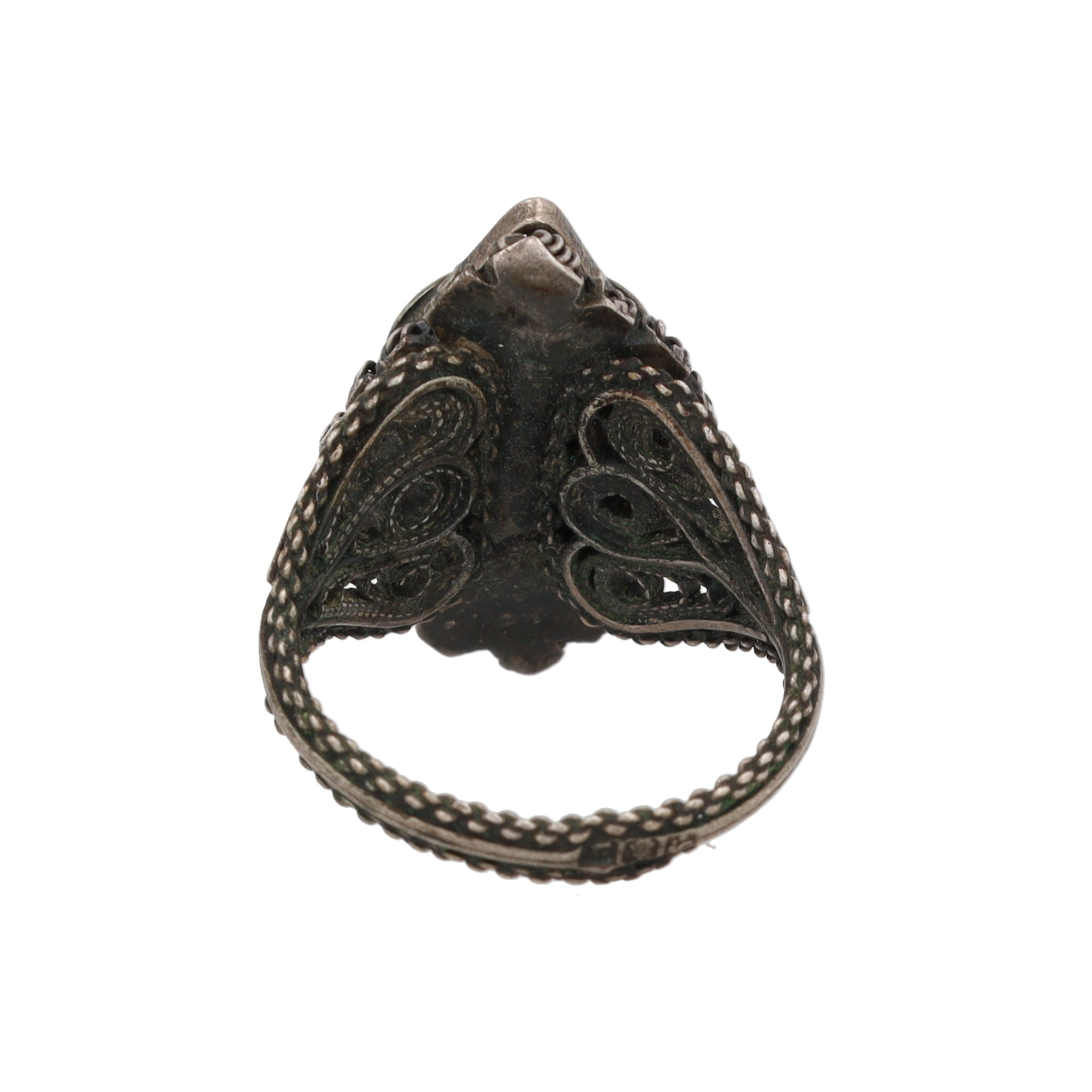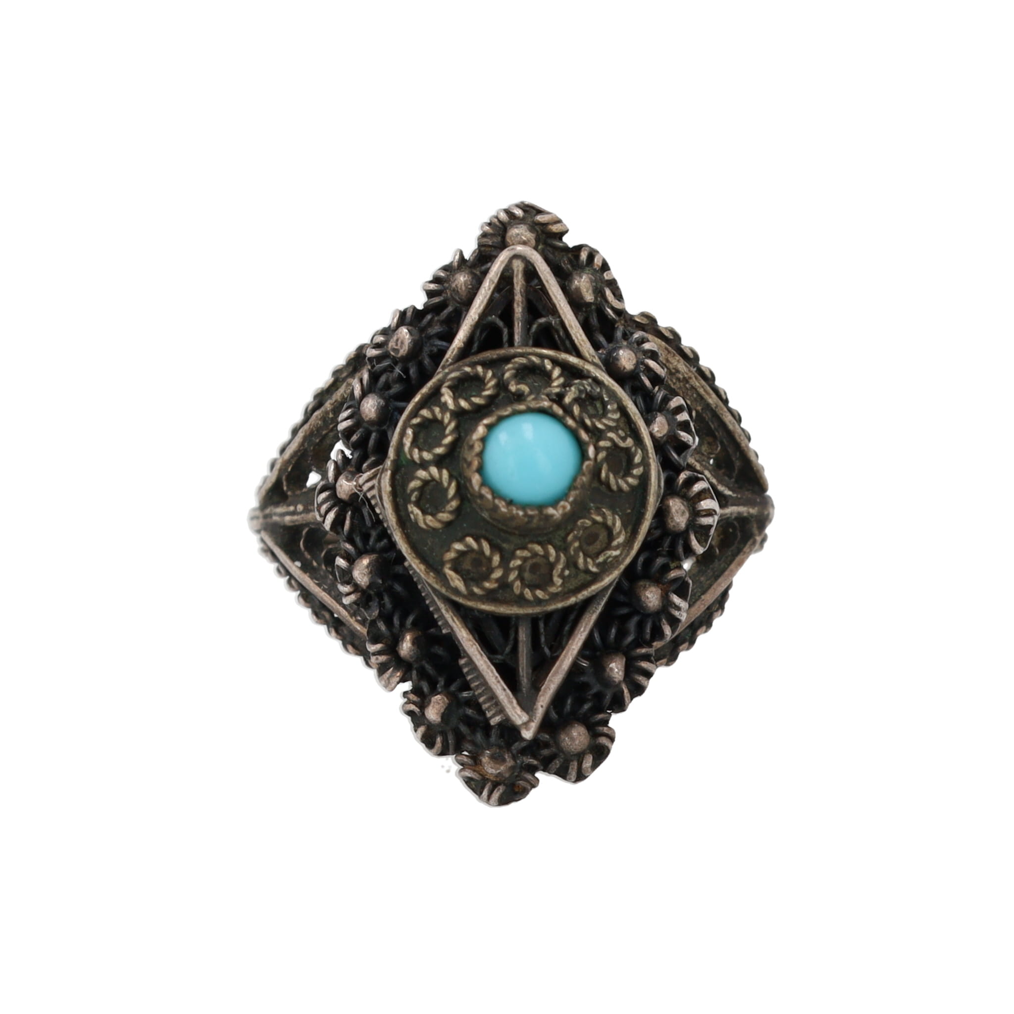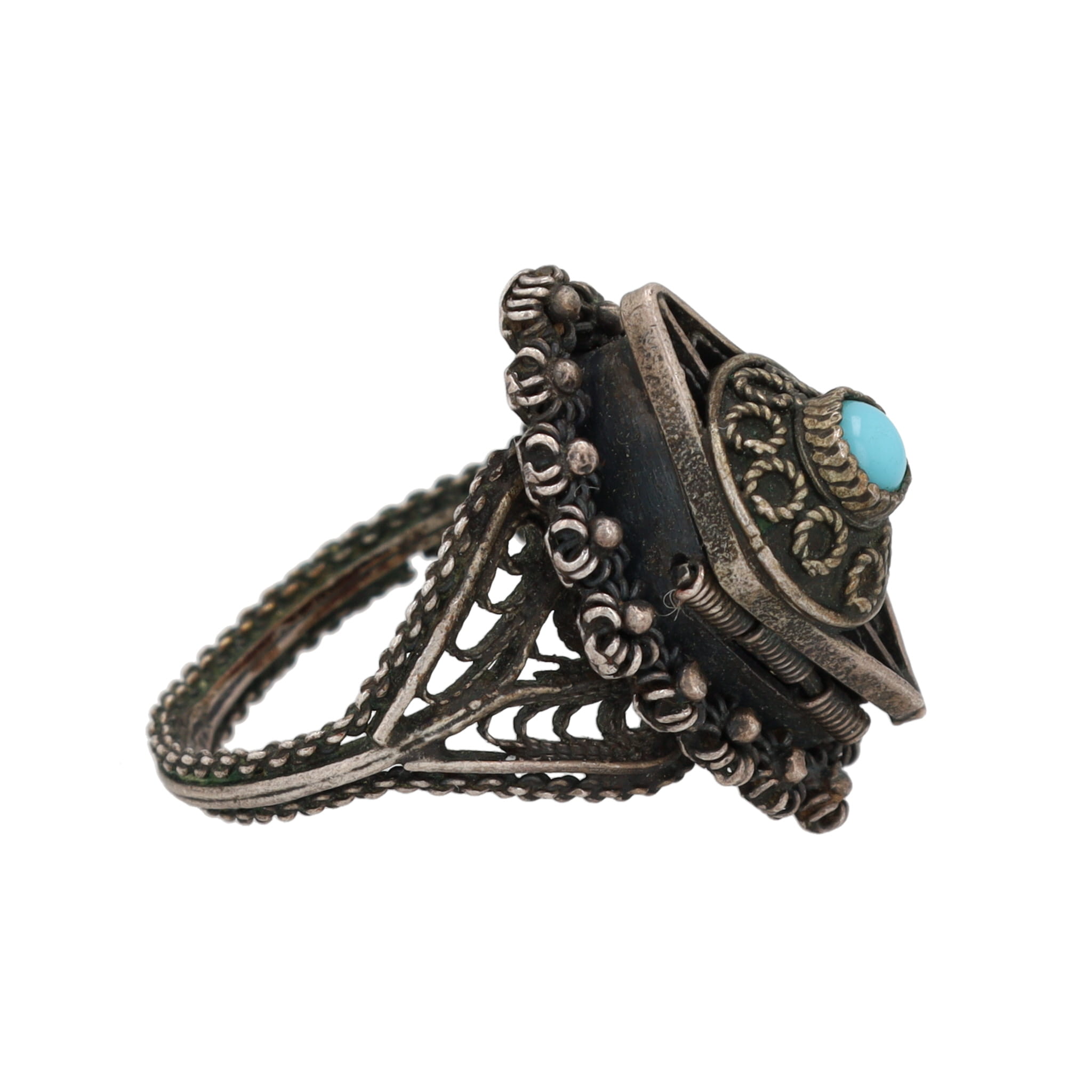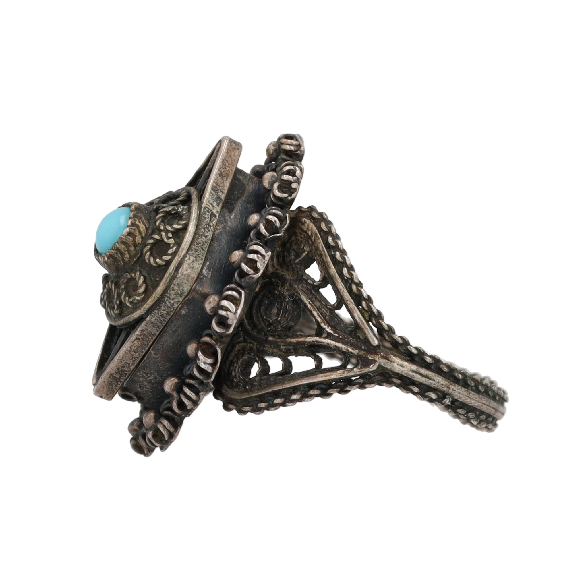 Tibetan Turquoise Sterling Filigree Poison Ring Sz. 5.75, 6g