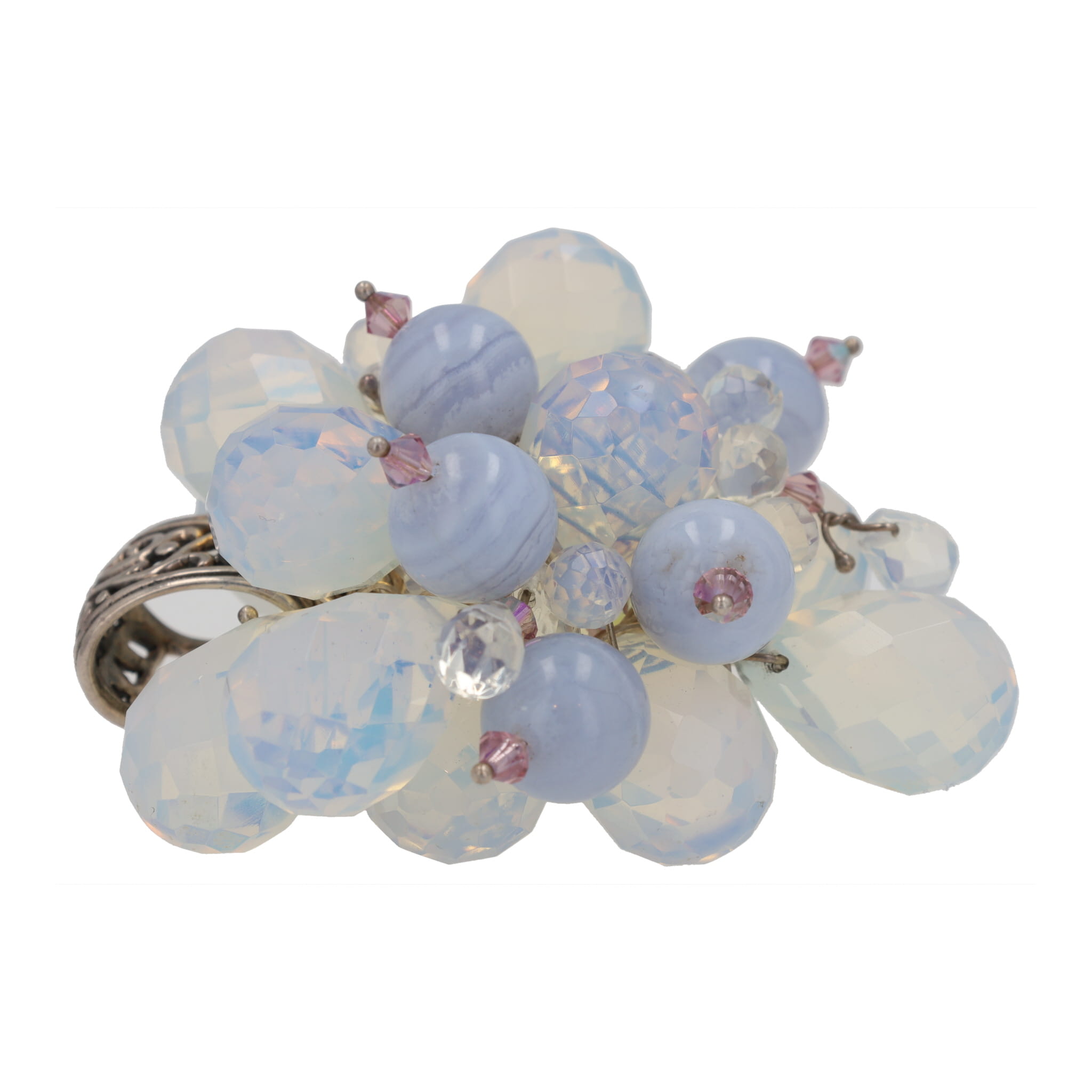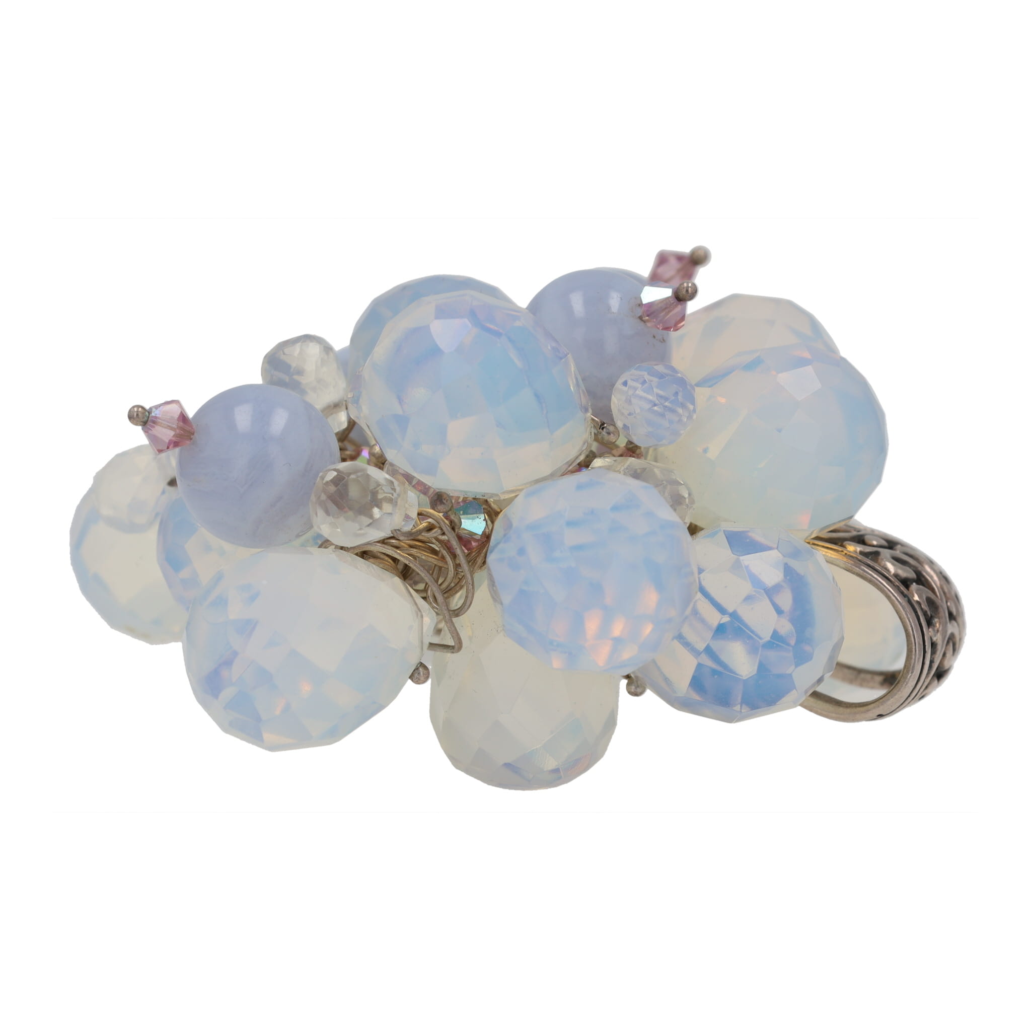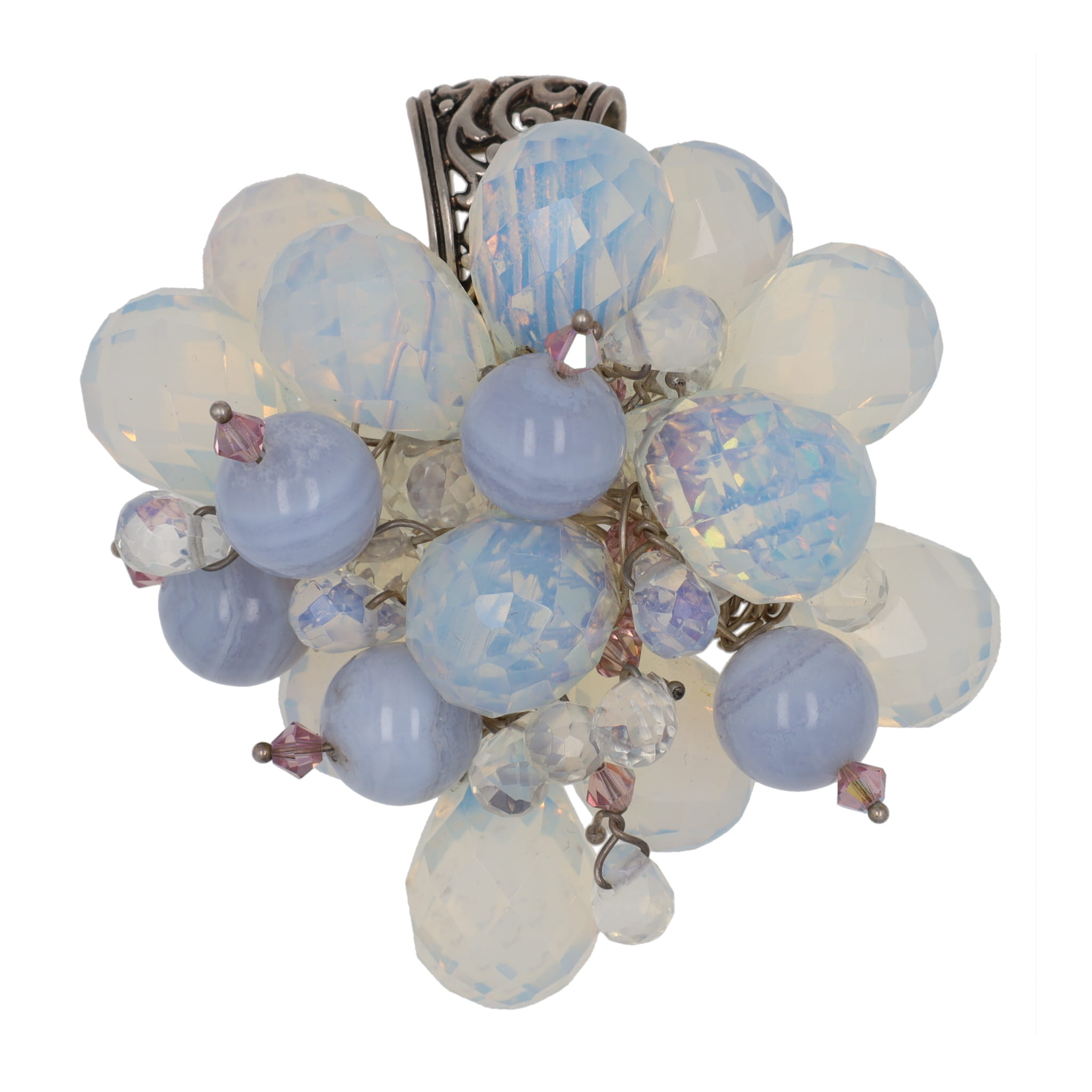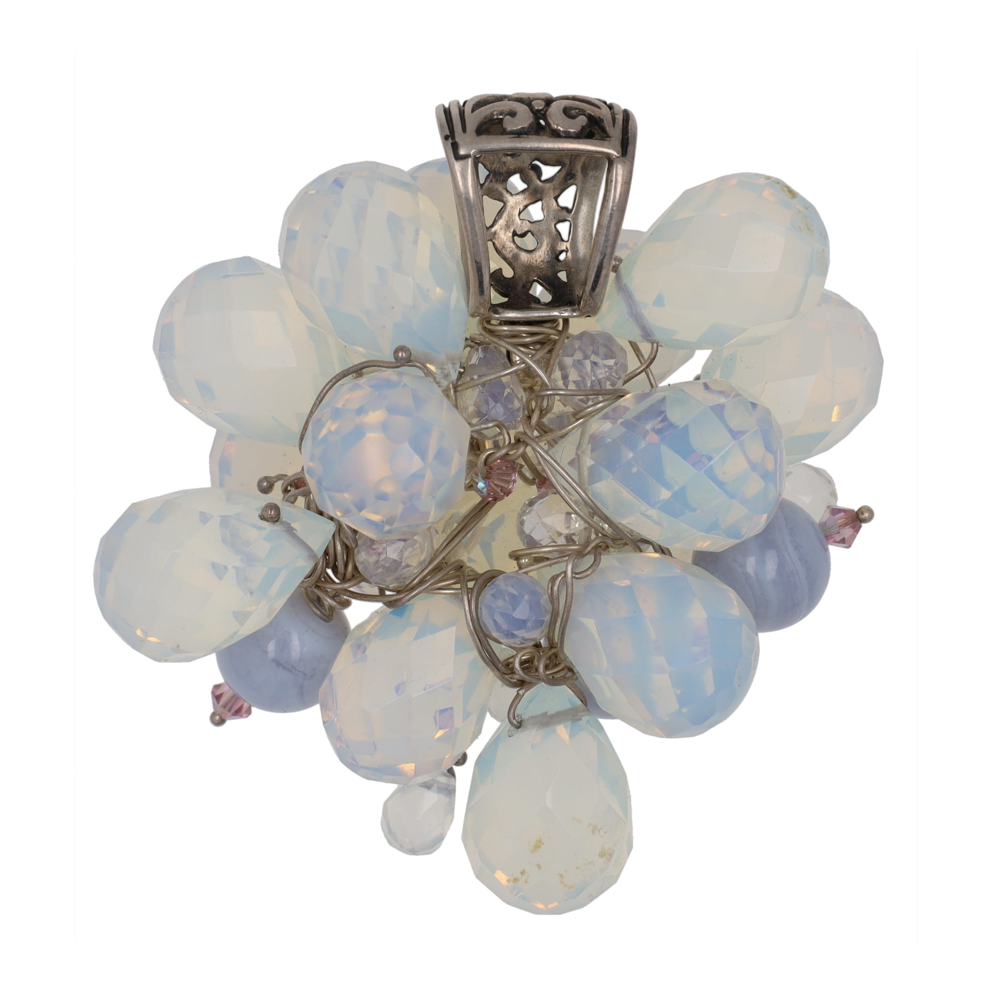 Radiant Moonstone Blue Lace Agate Sterling Cluster Pendant 93g