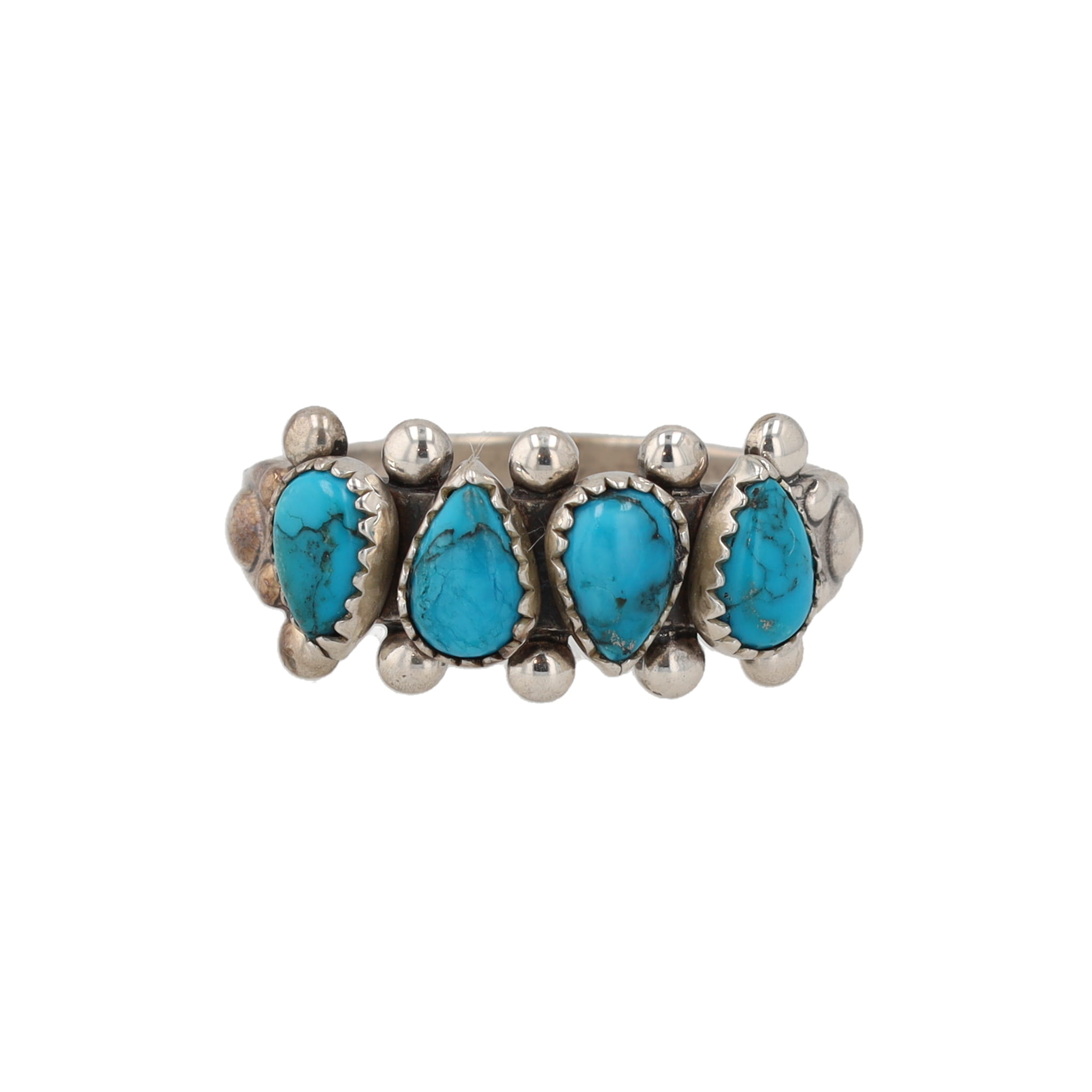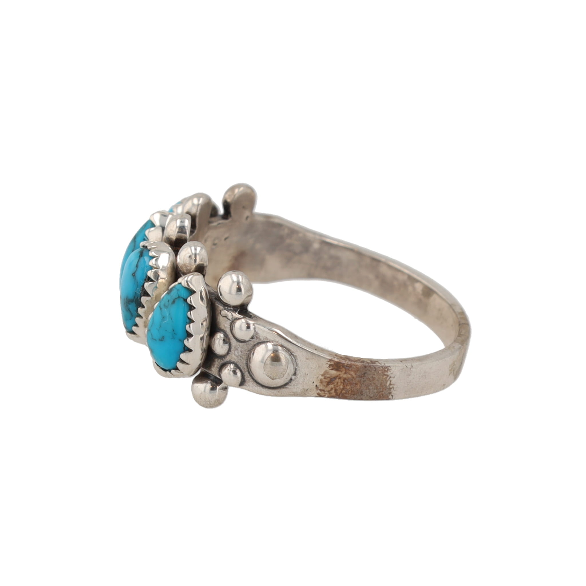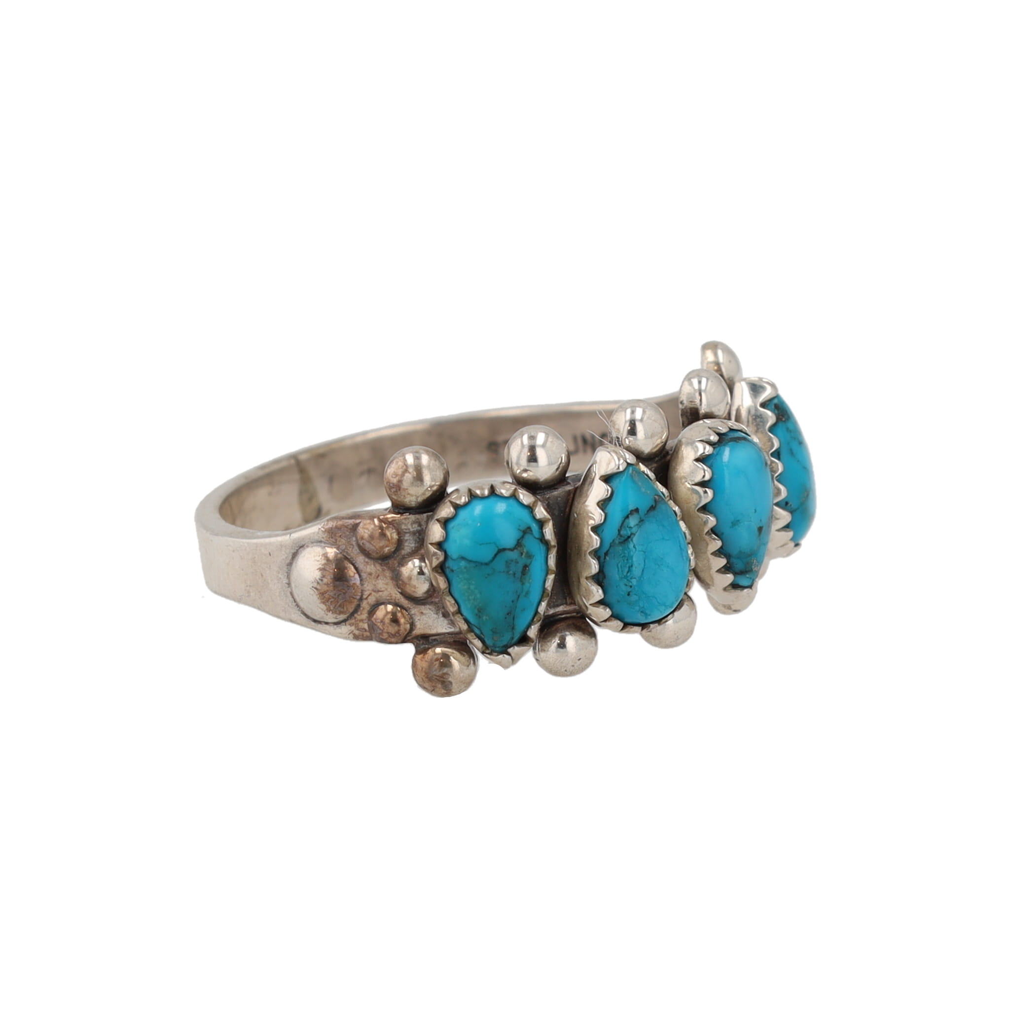 Wheeling Manufacturing Co. Petit Point Turquoise Sterling Ring Sz. 9, 5g