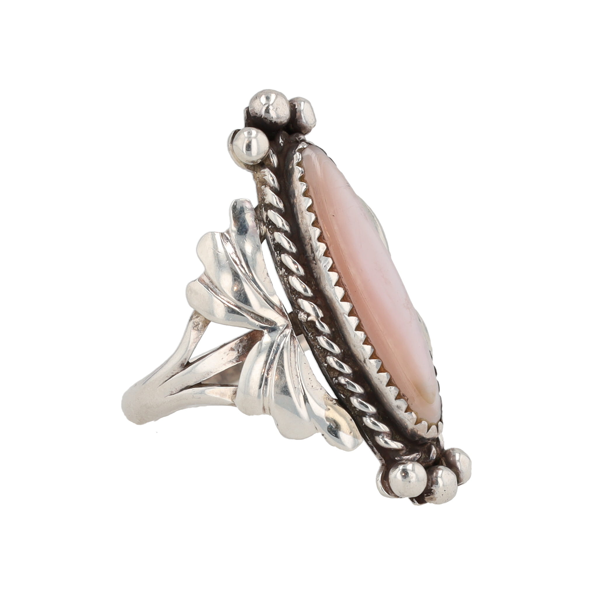 Benny M. Navajo Mother Of Pearl Sterling Overlay Ring Sz. 6.25, 5g