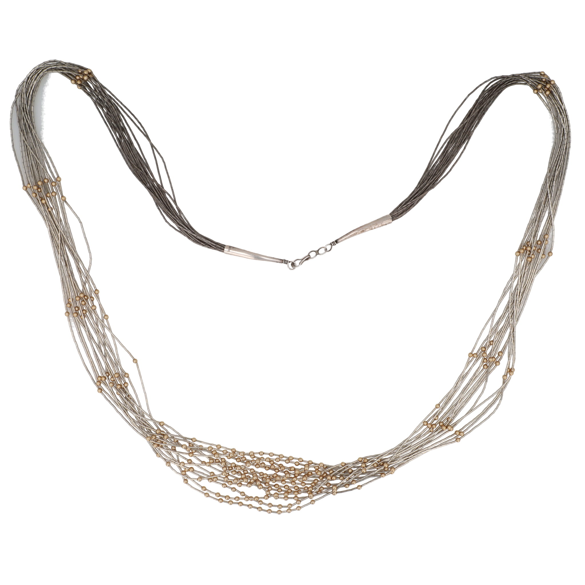 Native American Liquid Sterling Multi Strand Two-Tone Necklace 28g