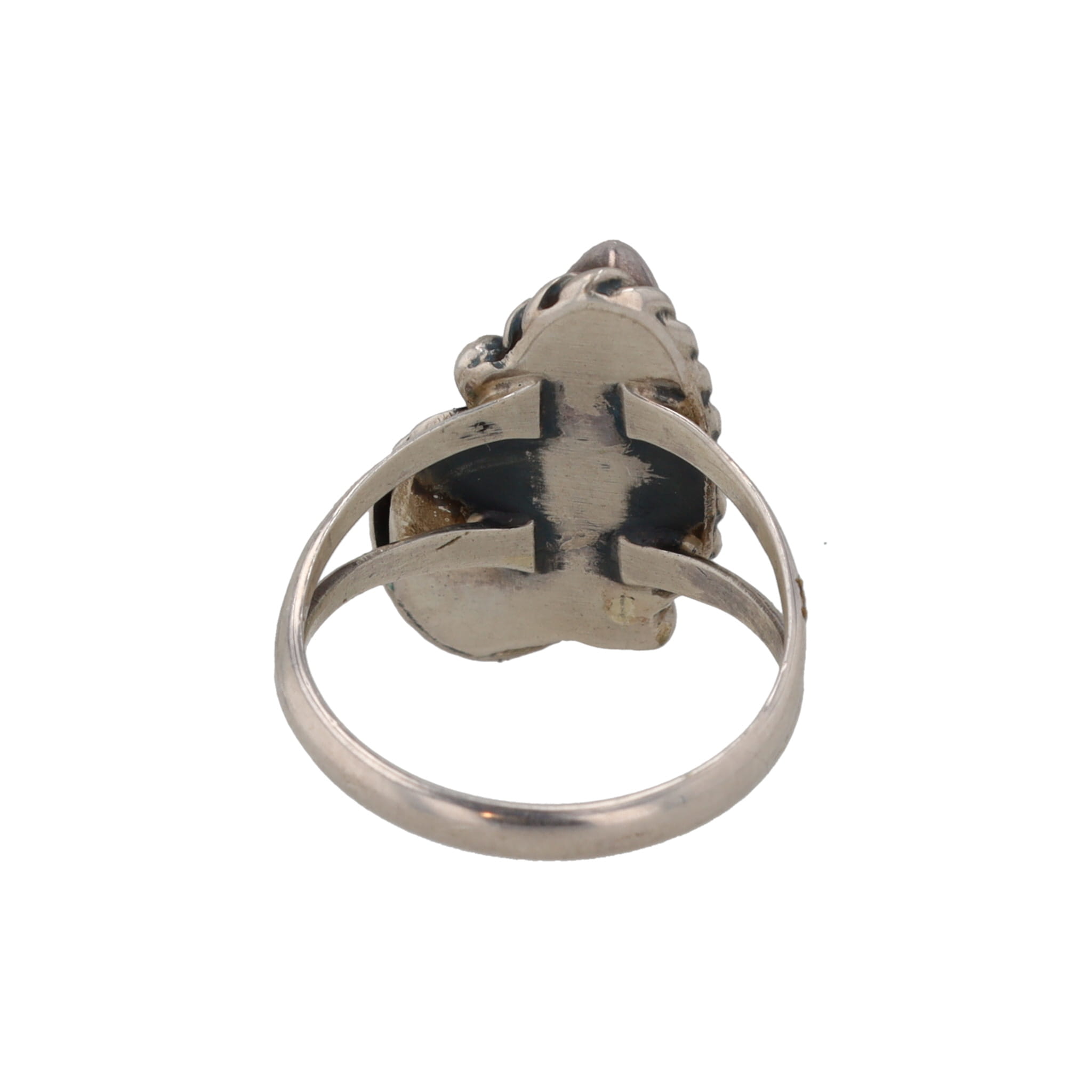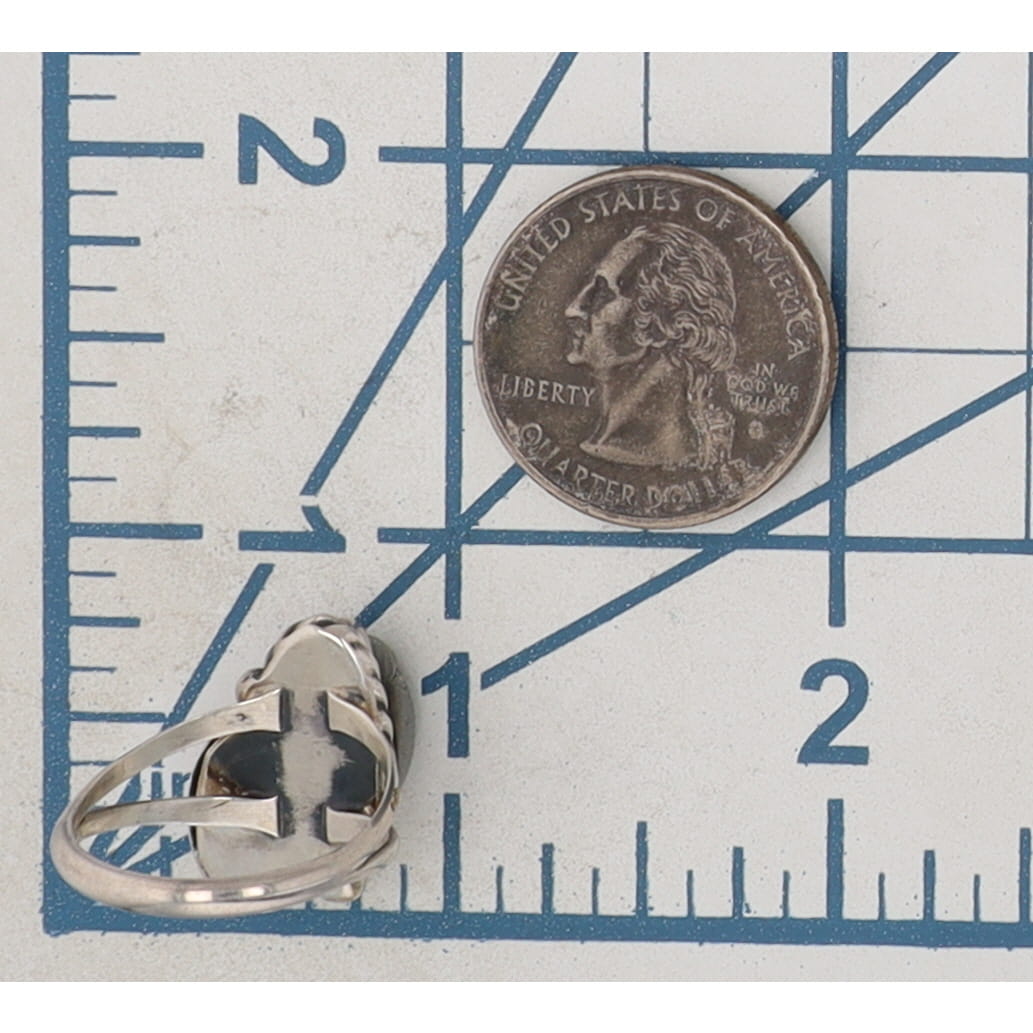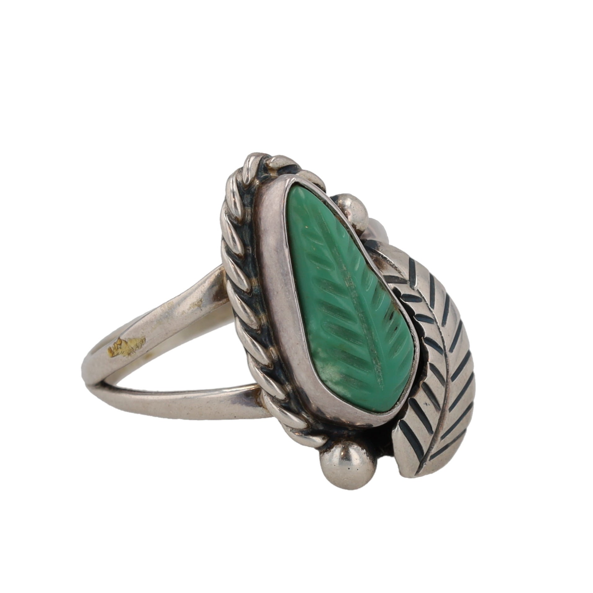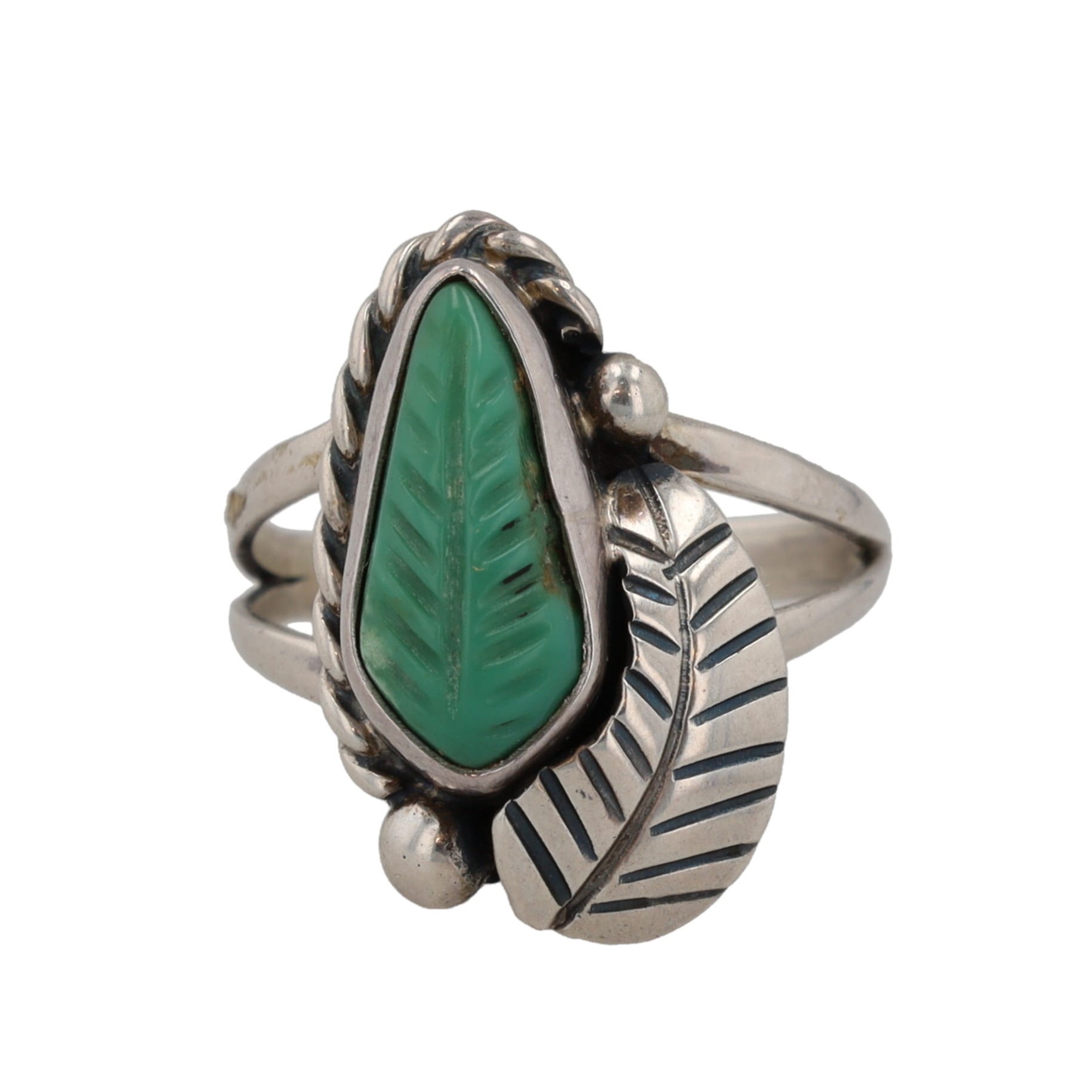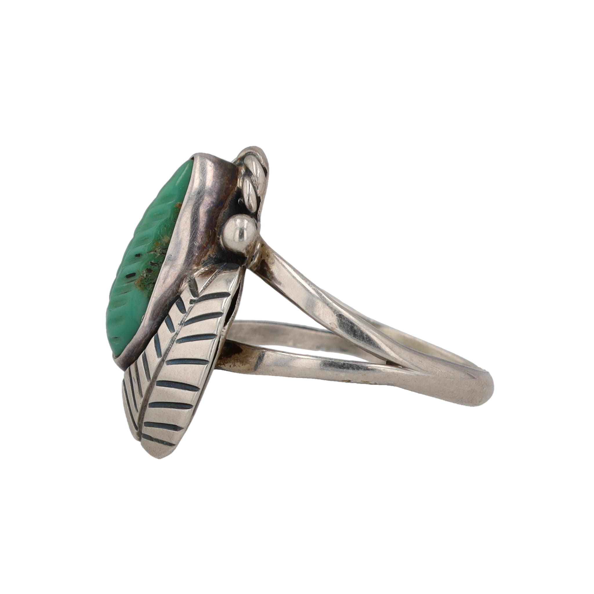 Navajo Carved Leaf Turquoise Sterling Shadow Box Ring Sz. 7.5, 4g