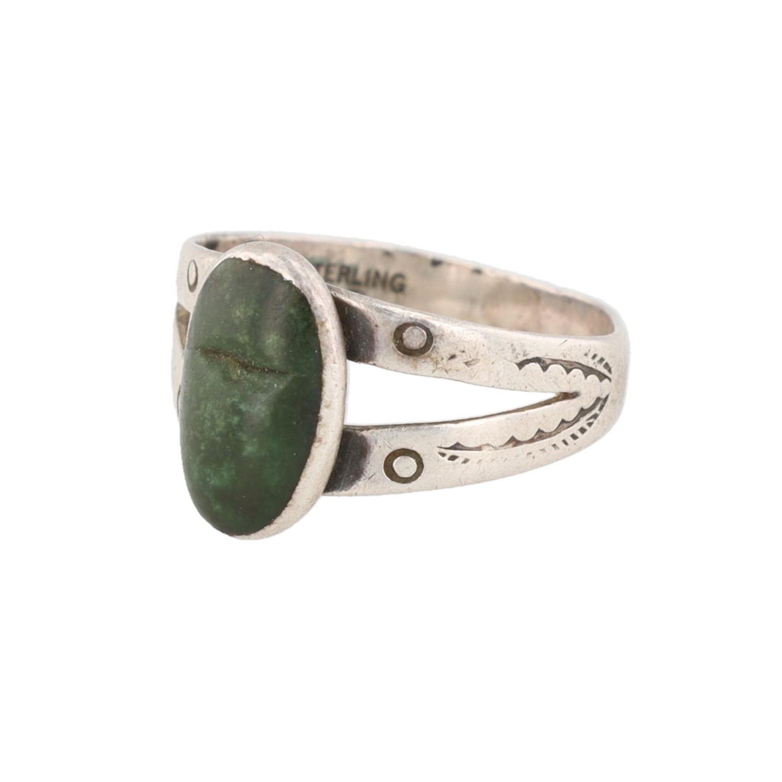 Navajo Green Turquoise Sterling Stamped Ring Sz. 4.75, 2g