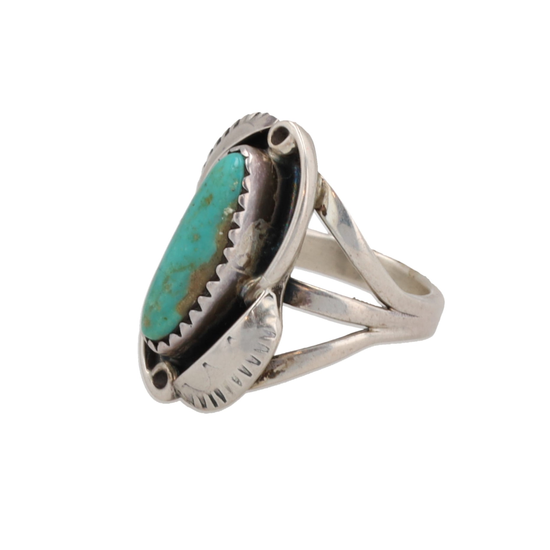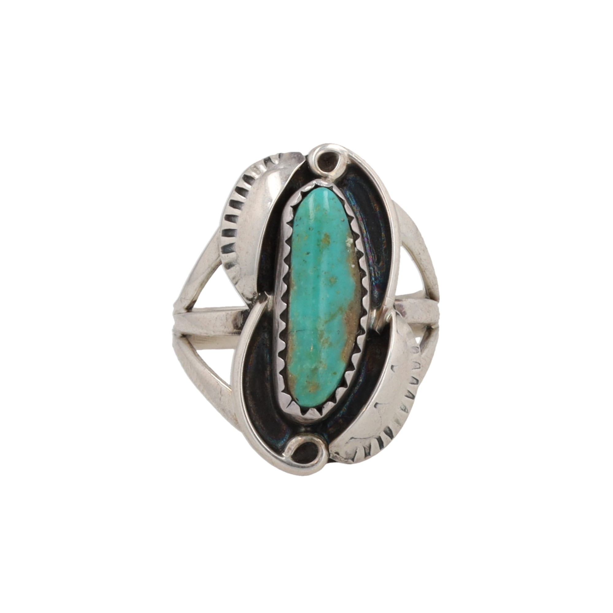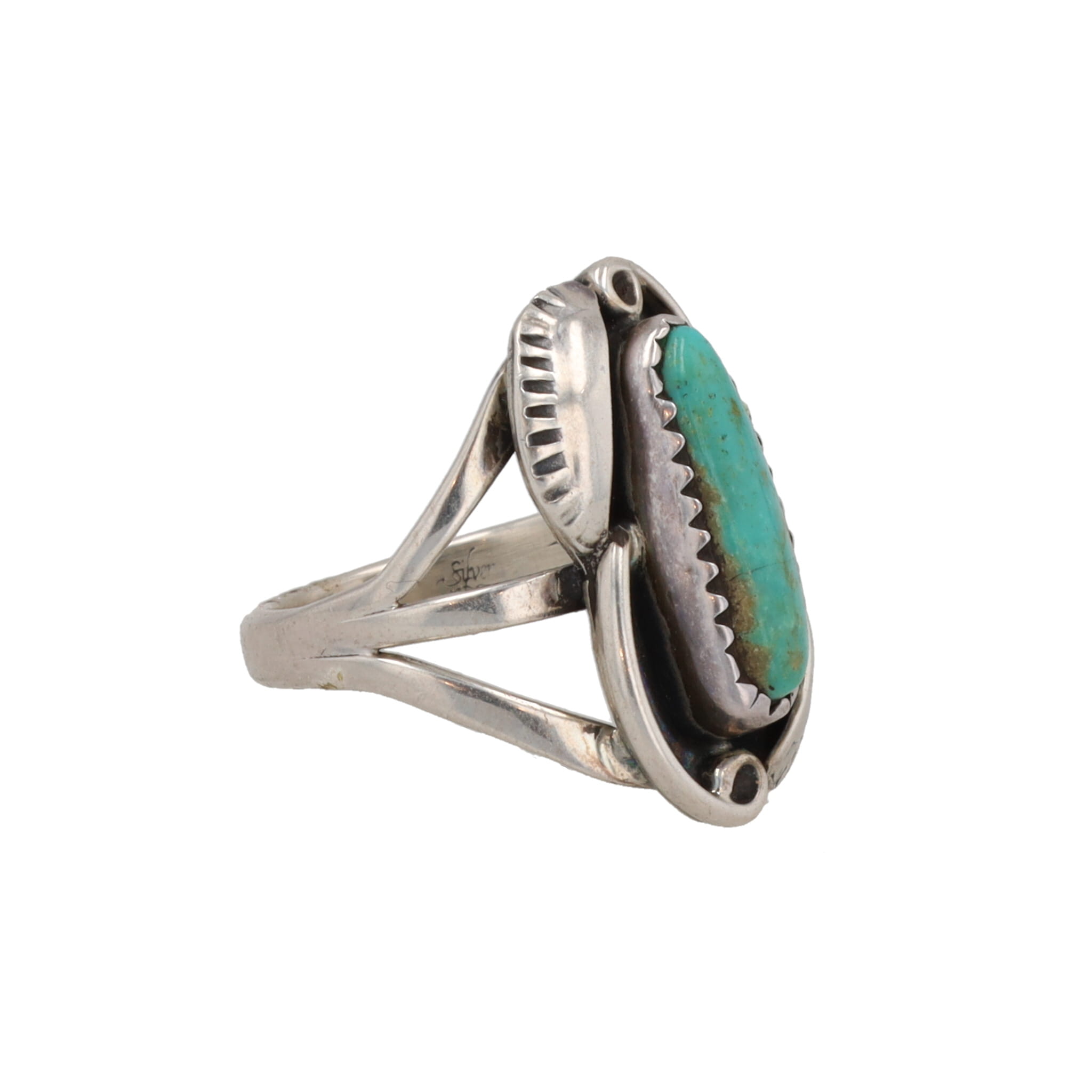 Silver Sea Shop Navajo Style Turquoise Sterling Shadow Box Ring Sz. 4.75, 5g