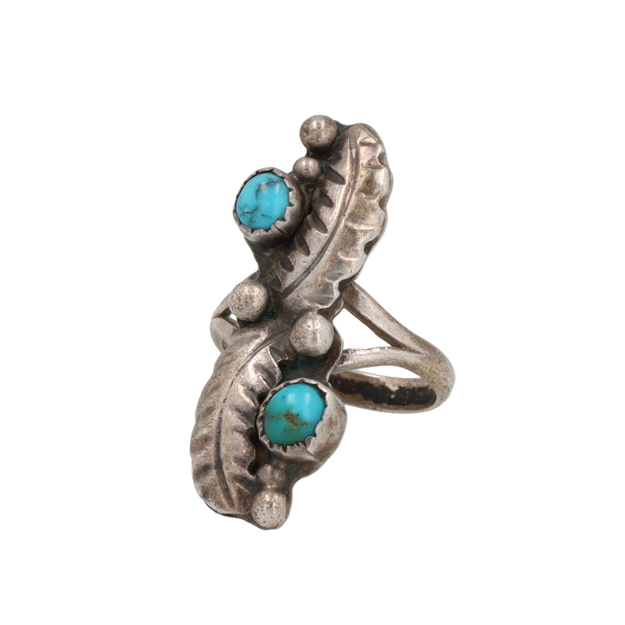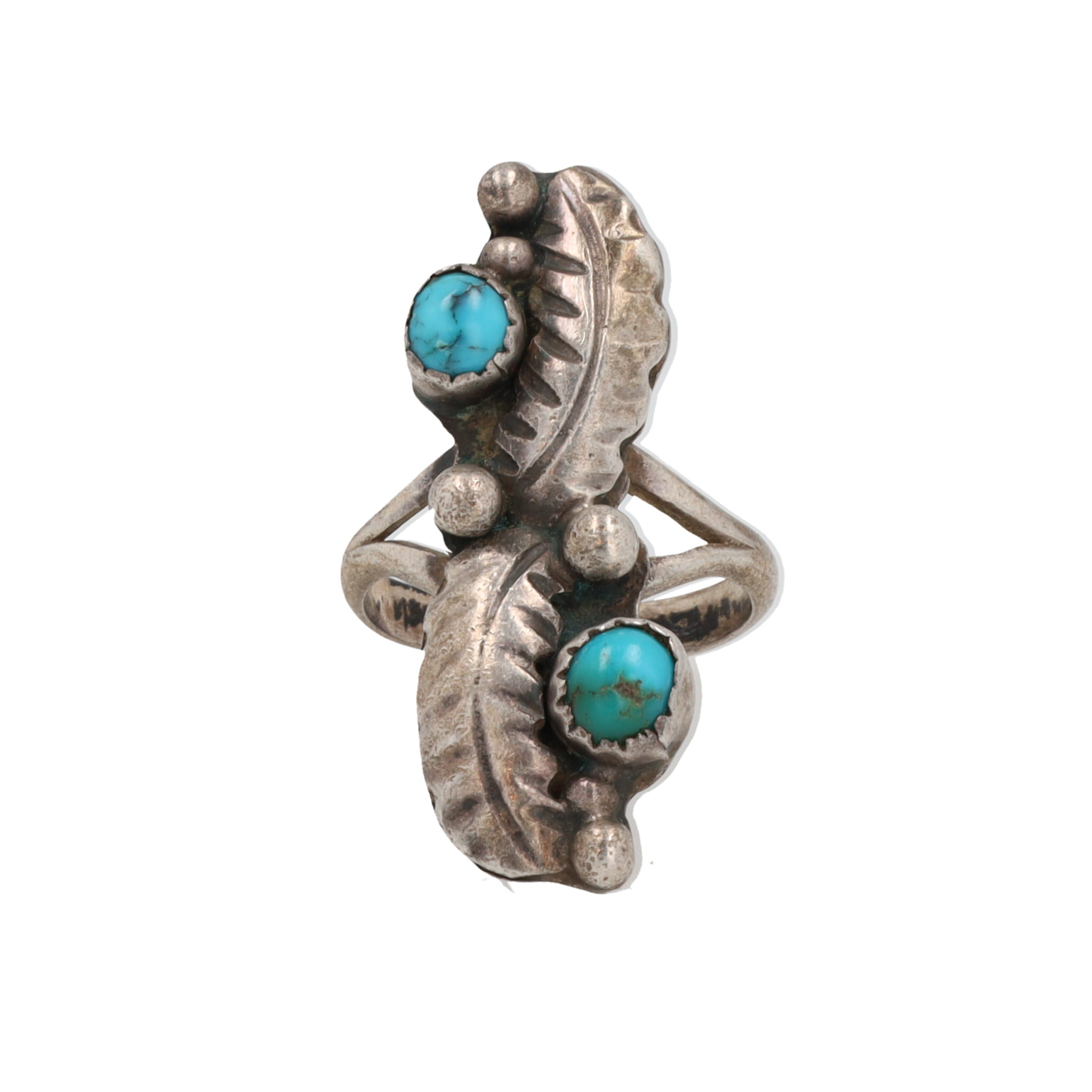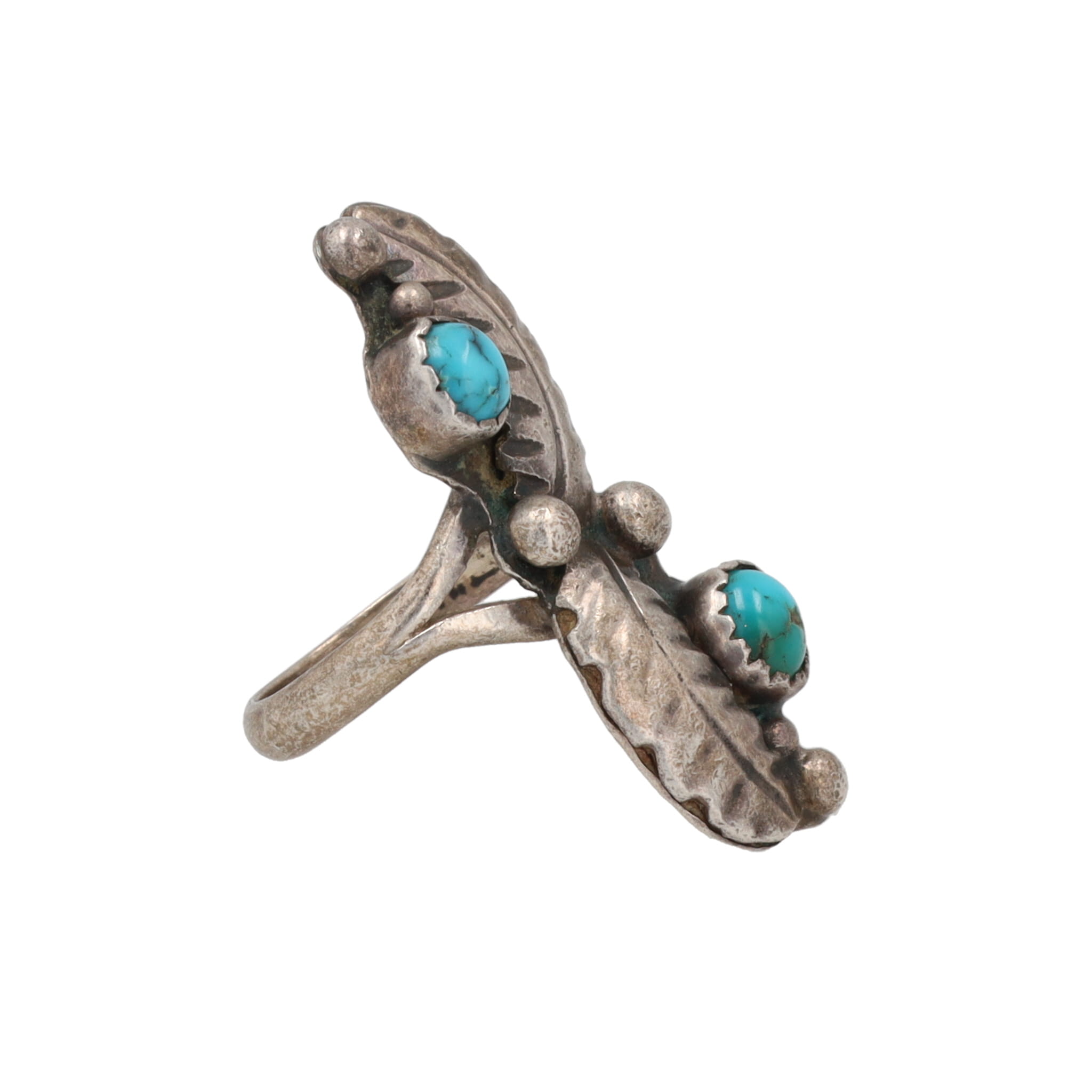 Navajo Turquoise Sterling Shadow Box Overlay Ring Sz. 3.75, 4g