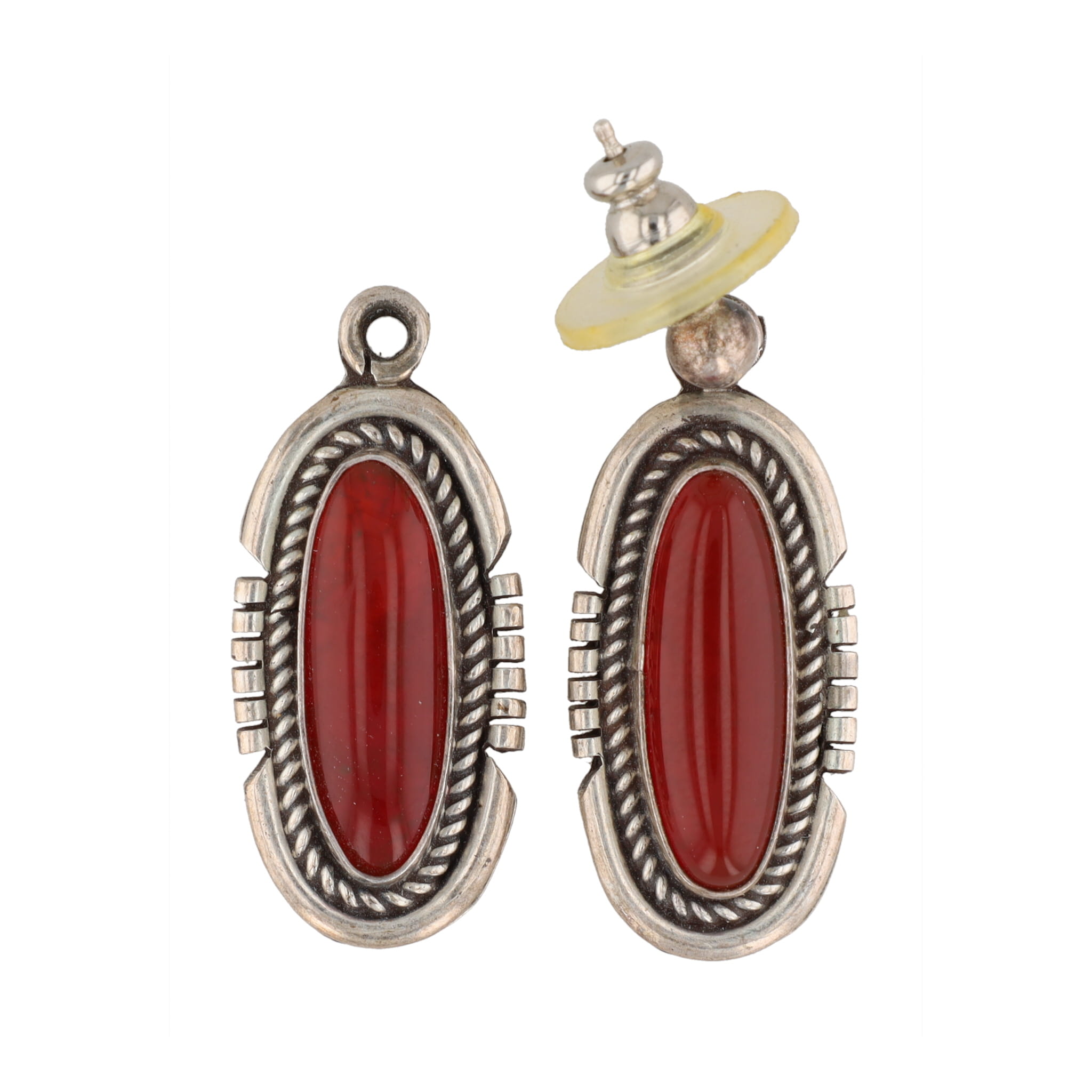 Navajo Carnelian Sterling Overlay Earrings As Is 7g