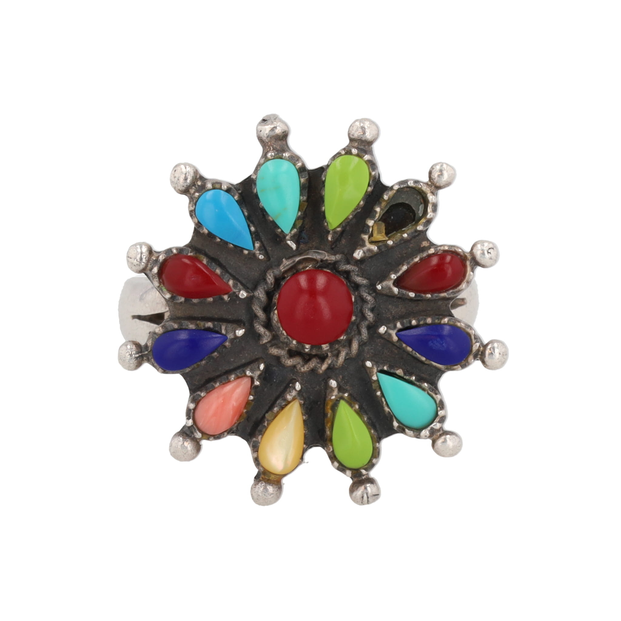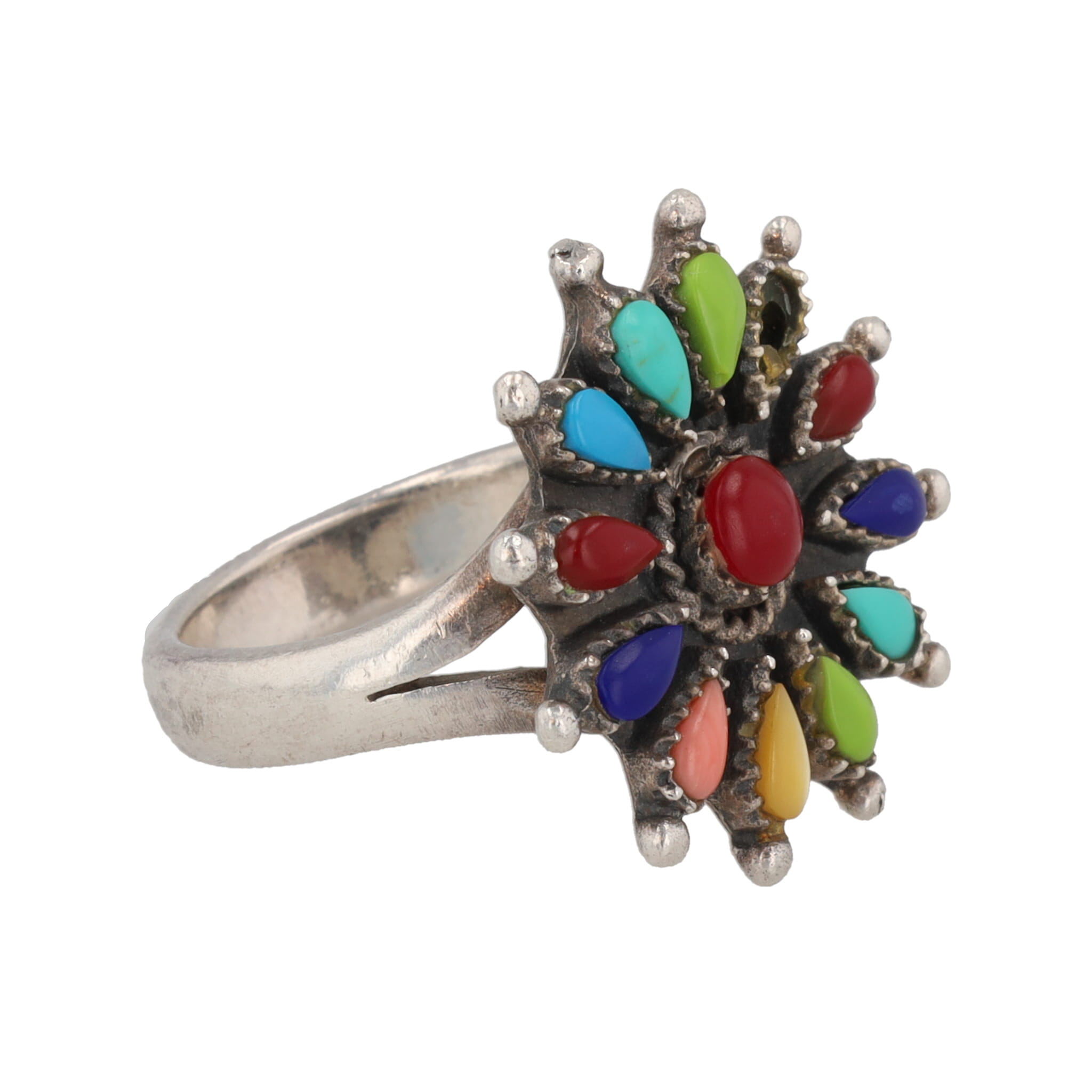 Zuni Multi Stone Petit Point Sterling Floral Ring Sz. 8.25, 9g As Is
