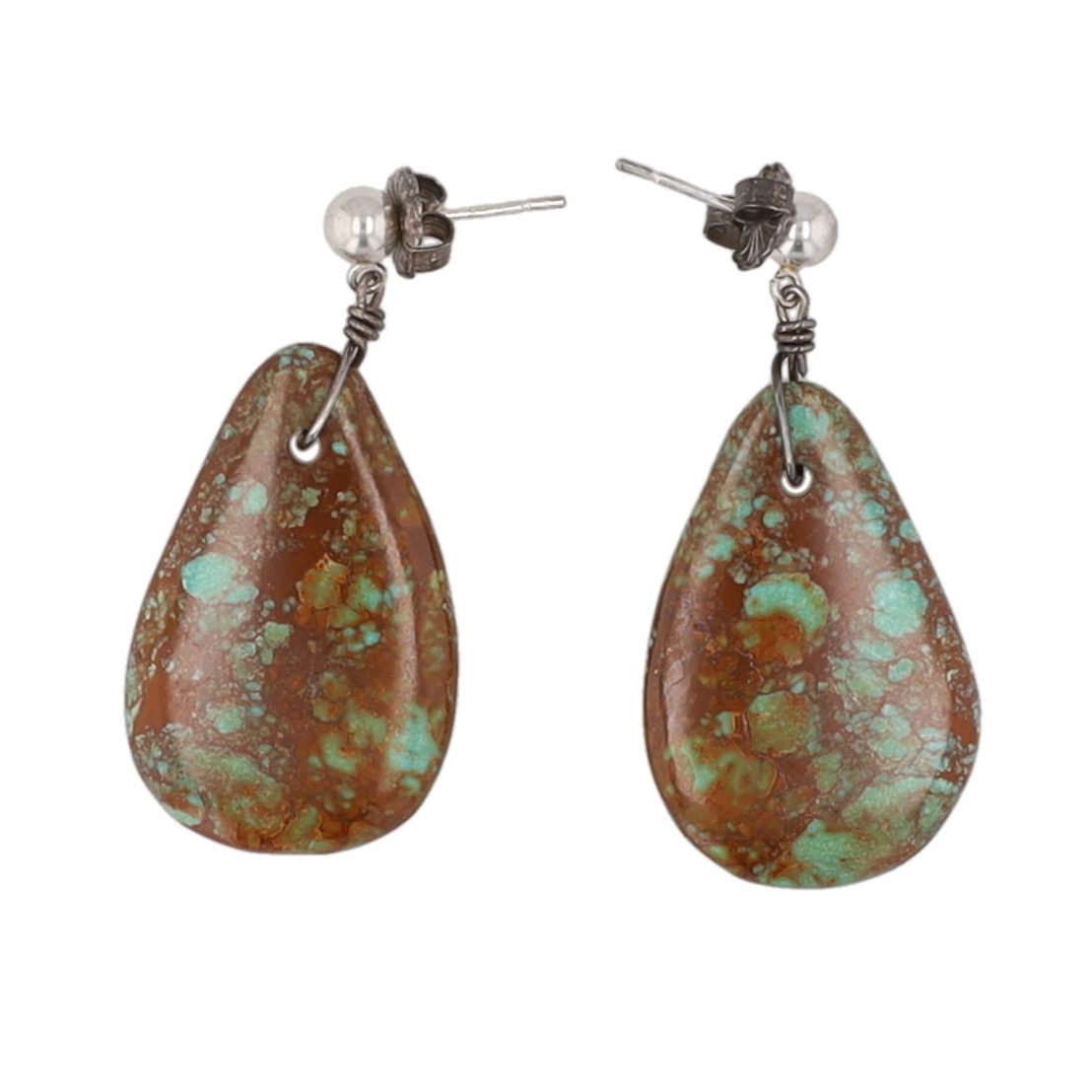 Southwest Tear Shaped Turquoise Sterling Dangle Earrings 10.5g